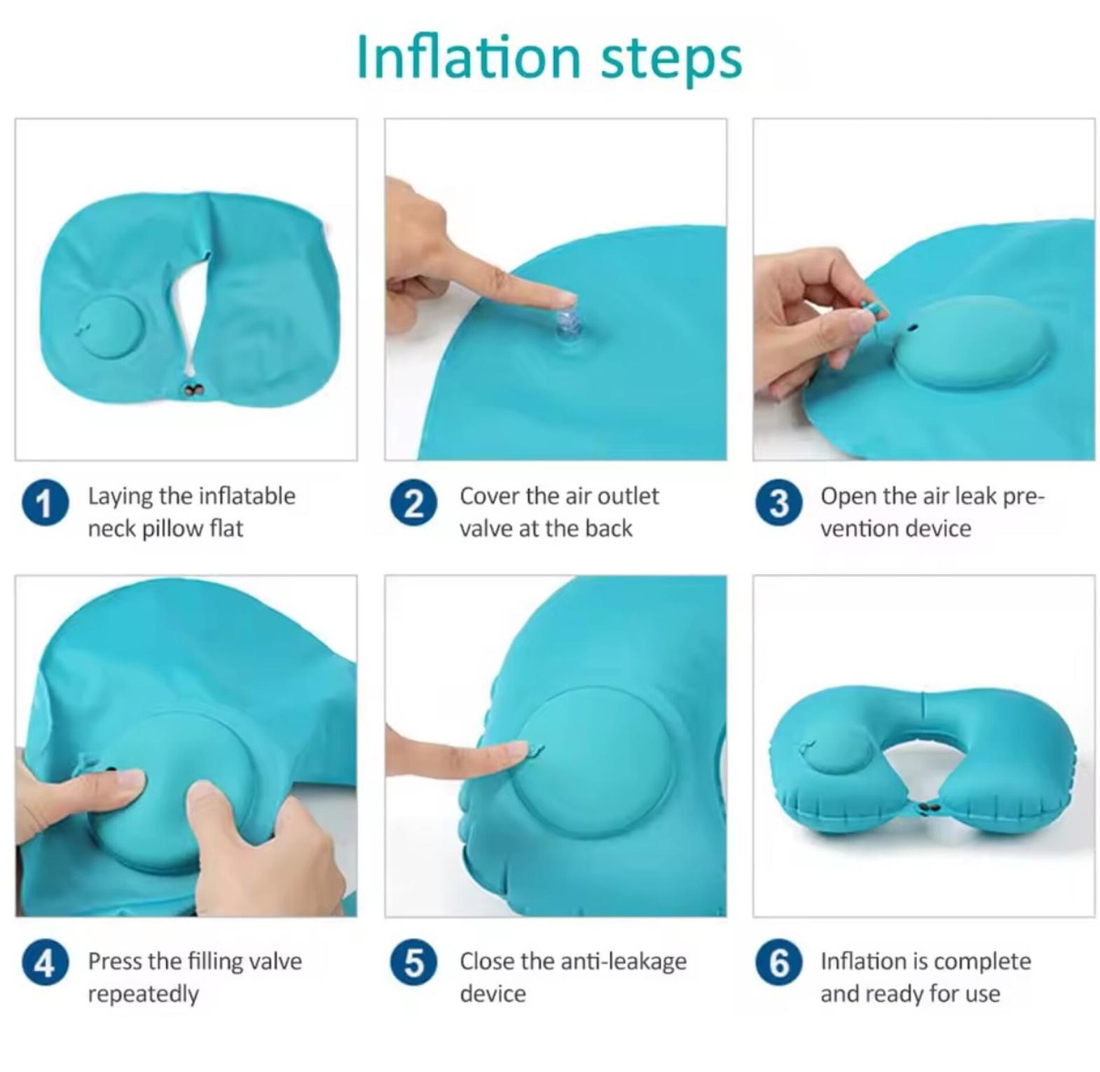 Inflatable travel neck pillow inbuilt pump inflate when in use deflate/release the air when not in use fold and keep in your purse very soft comfy fabric very convenient travel portable press inflatable neck cushion pillows, airplane or car rest neck pillow
