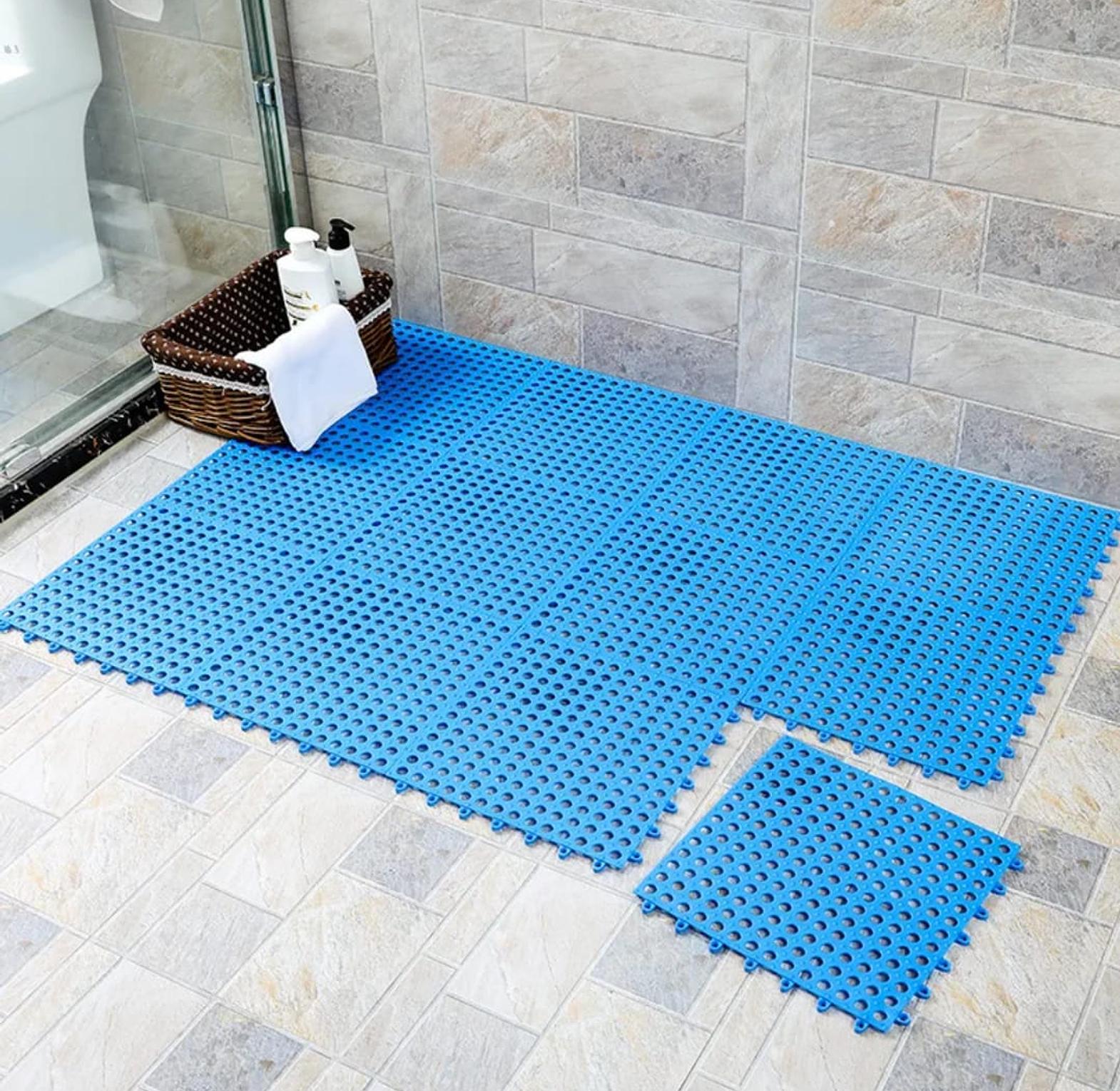 Nonslip bathroom floor mat, antislip shower floor mat inter locking anti-slip bathroom/balcony floor mats stay safe, stylish, and mess-free! quick-dry drainage design easy to interlock & install perfect for bathroom, kitchen & laundry step out with confidence no more slips. use our multifunctional bathroom floor mats to enhance the safety and style of the bathroom. these cushions are perfect for bathrooms or swimming pools of any size. prevent slipping and falling. the non-slip surface ensures a firm grip under your feet and peace of mind under wet conditions. these cushions are very suitable for use in the bathroom, dressing area or by the pool. they are both practical and beautiful. shower room floor mat, bathroom non-slip mat, hollow splicing water insulation bath feet mat, suit for swimming.