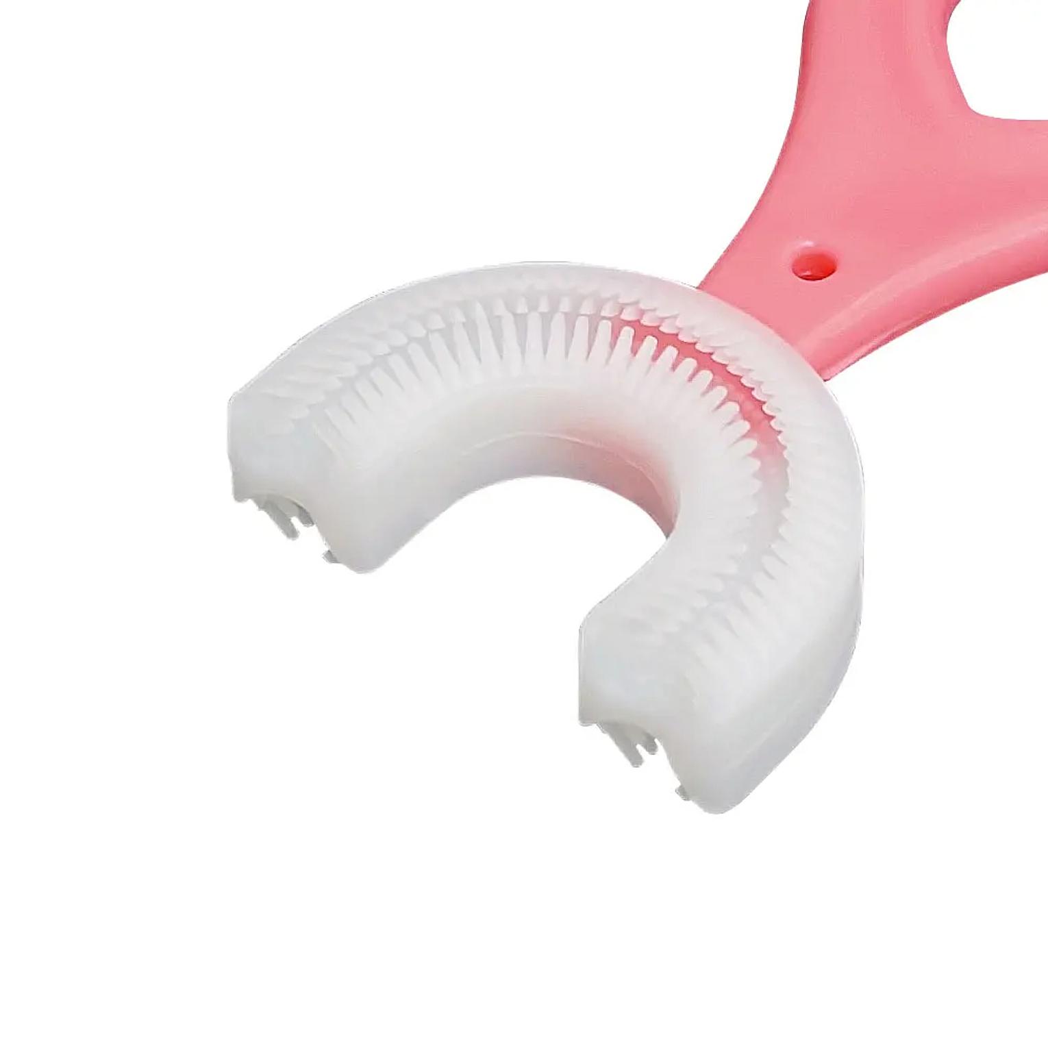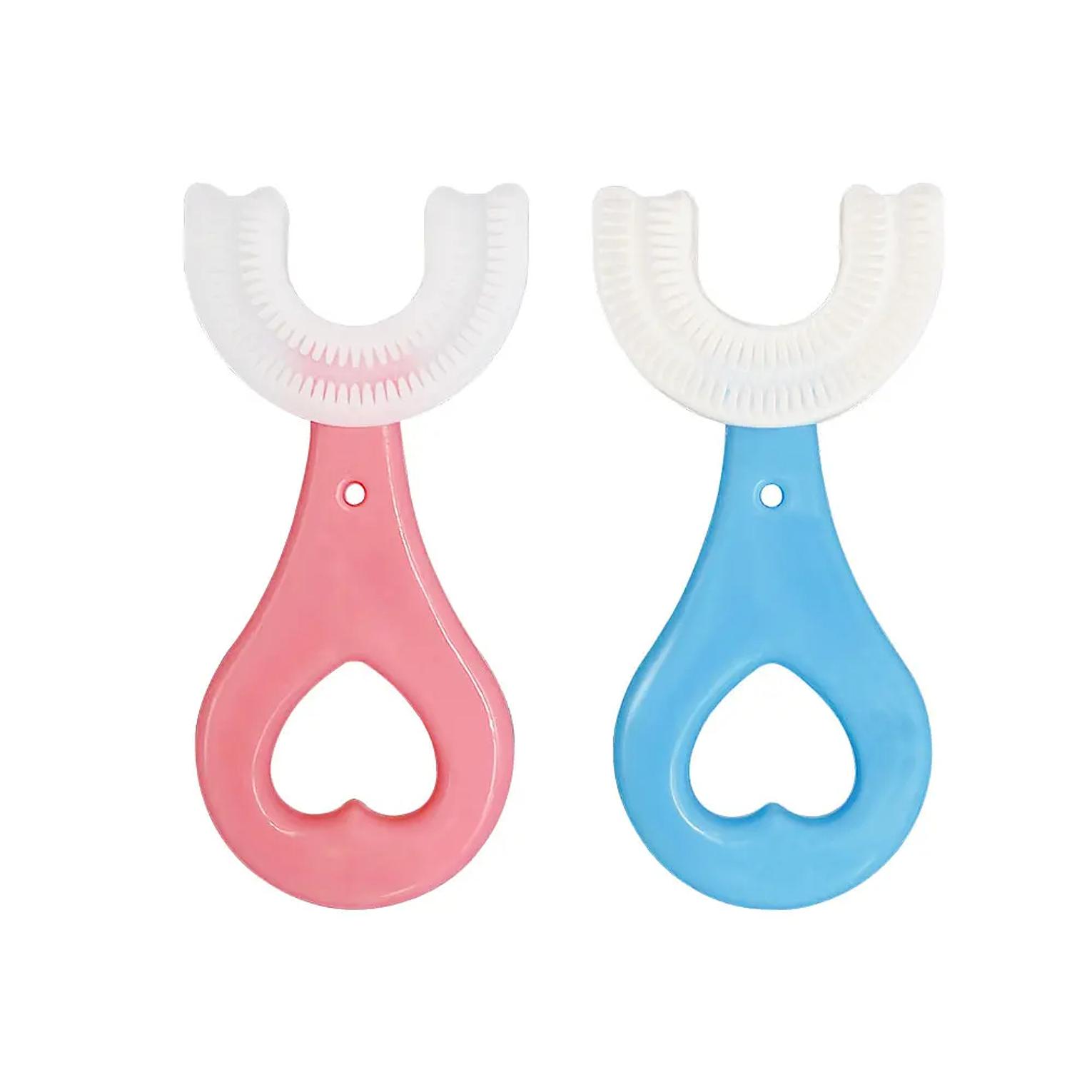 Kids u shaped toothbrush, soft silicone toothbrush training toothbrushes for kids 2-6y,silicone bristles massage gums, u-shaped children's toothbrush food-grade soft silicone material: select soft silicone material that is safe and odorless pasteur brushing method: the number and length of bristles are just right, handy with taper brushing dust-proof wall mounting bracket: protect your baby's health pacifier-grade brush head: soft and does not hurt the gums high temperature disinfection is clean and safe baby toothbrush children 360 degree u-shaped children's teeth oral care cleaning brush soft silicone tooth brush baby items.