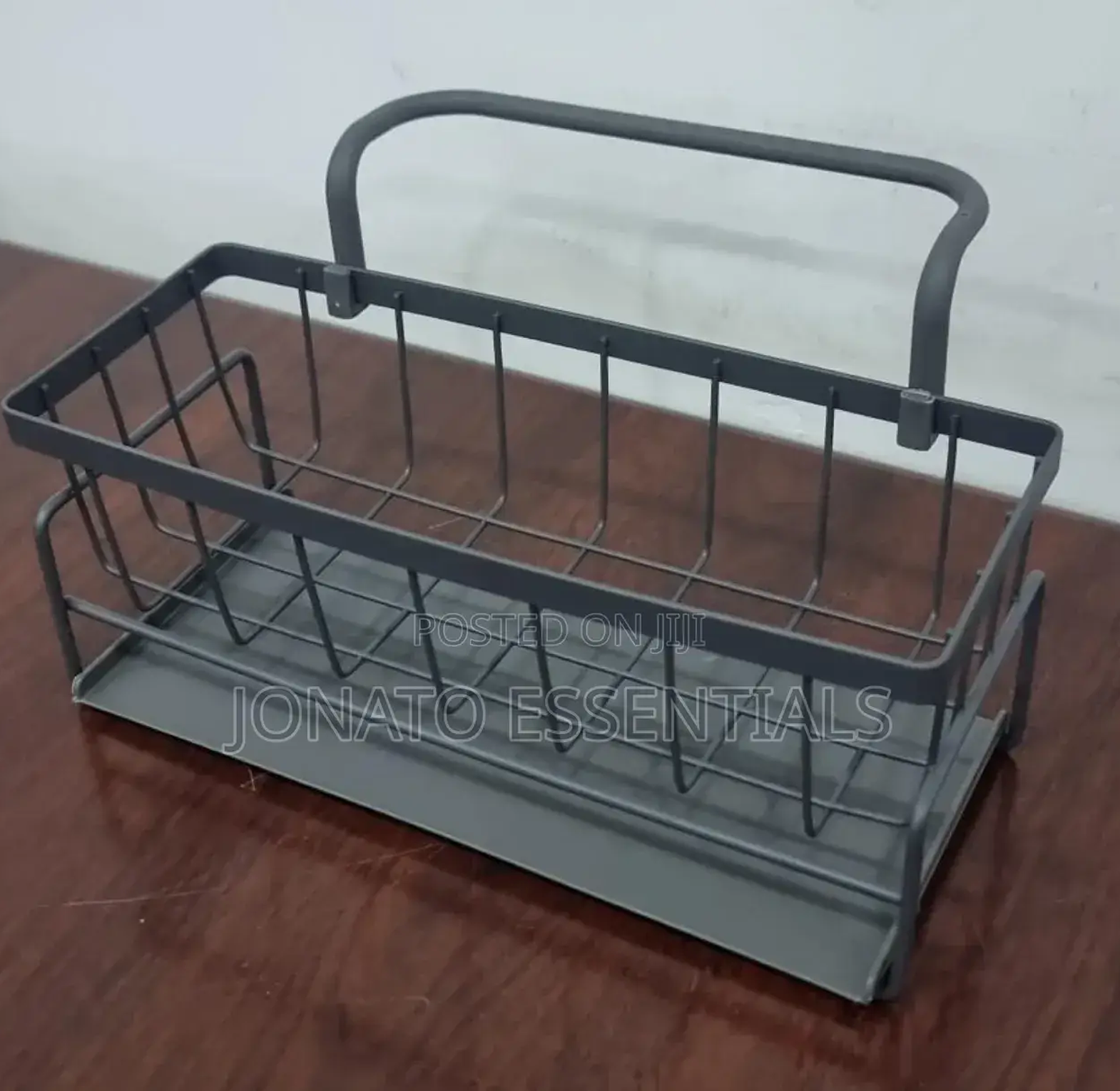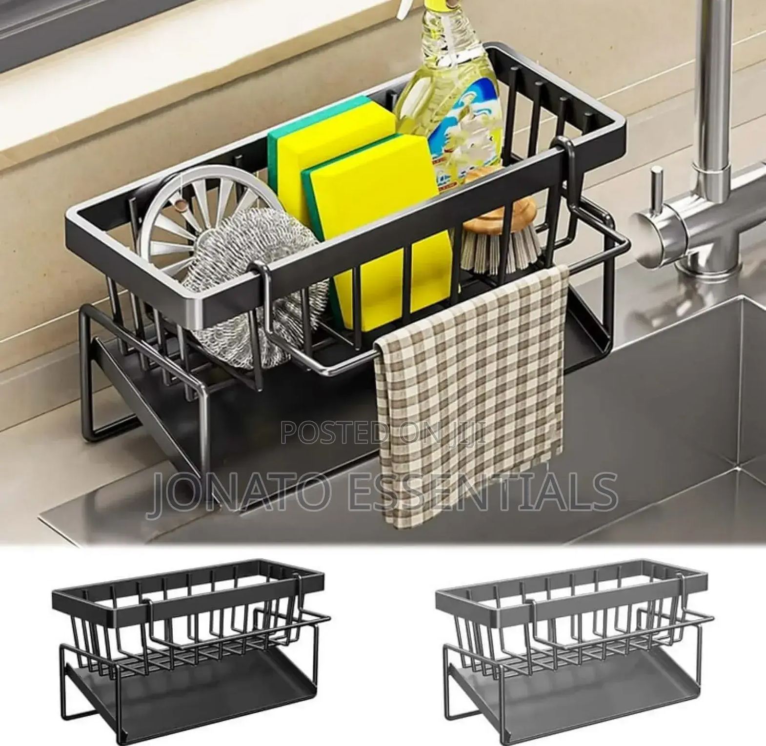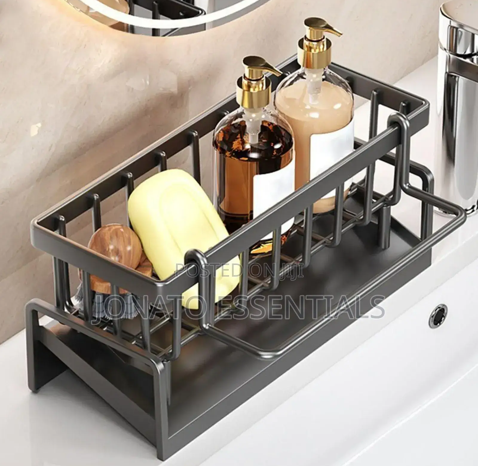 the sponge holder is made of stainless steel, ensuring durability and long-term use. it is resistant to rust, providing a reliable solution for storing sponges and dish brushes.