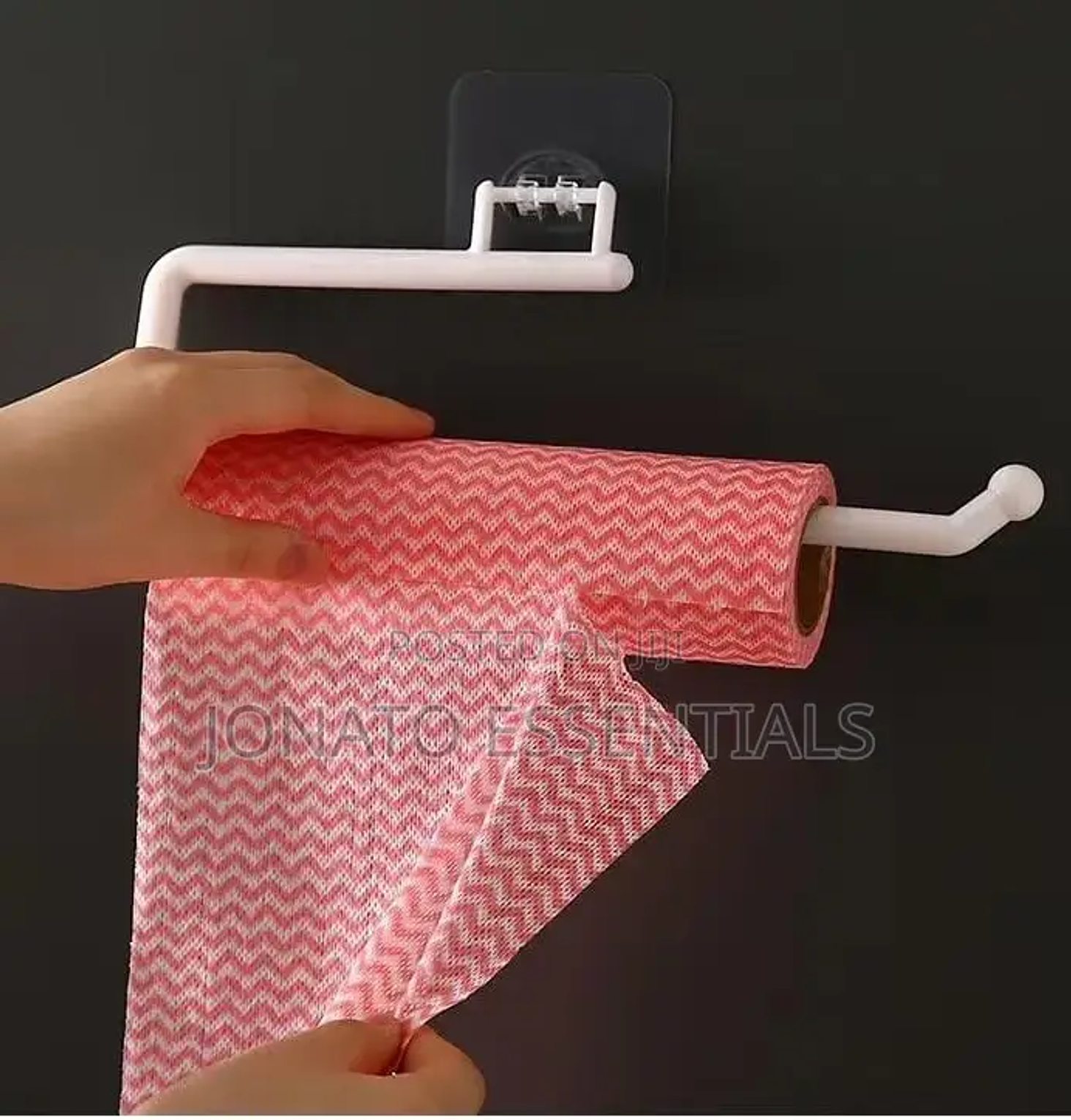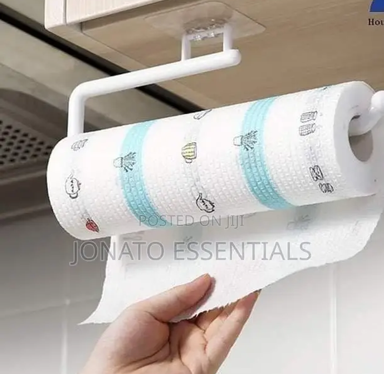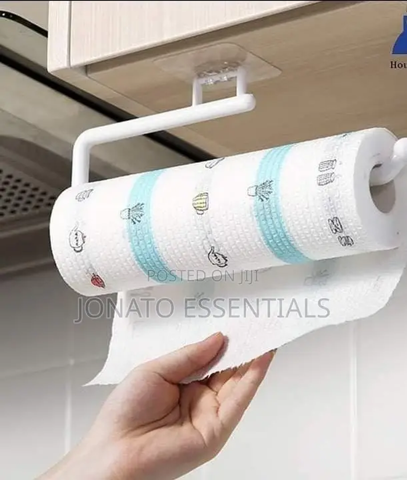 Kitchen tissue and towel roll holder or hanger. strong but simple tissue holders size: 14cm also available in 27.5cm comes with adhesive sticker can store kitchen roll paper, towels, gloves, etc. kitchen paper roll holder towel hanger rack bar cabinet rag hanging holder shelf toilet paper holders