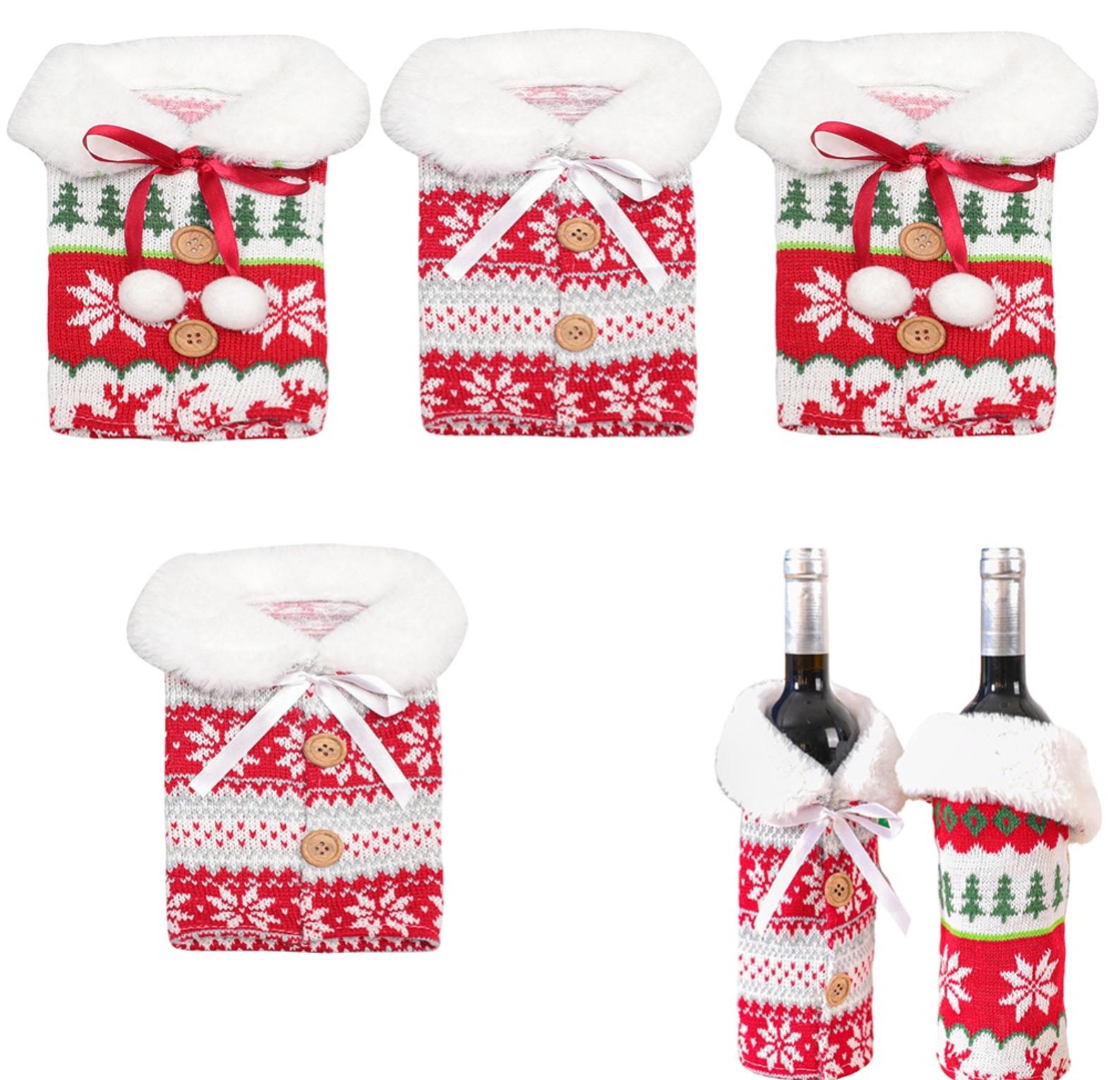 Knitted Christmas Wine Bottle Cover Decor Sweater Gift
