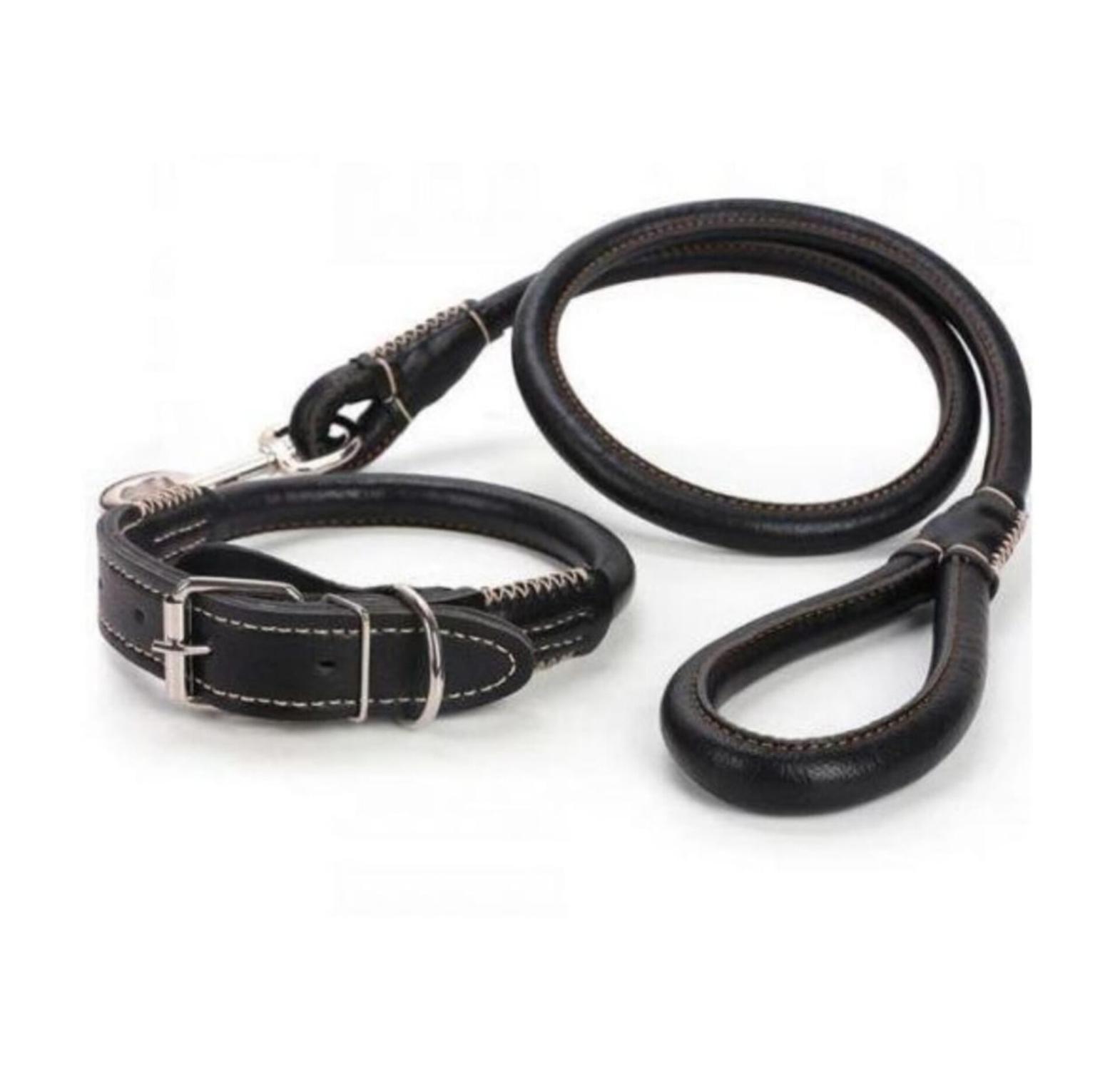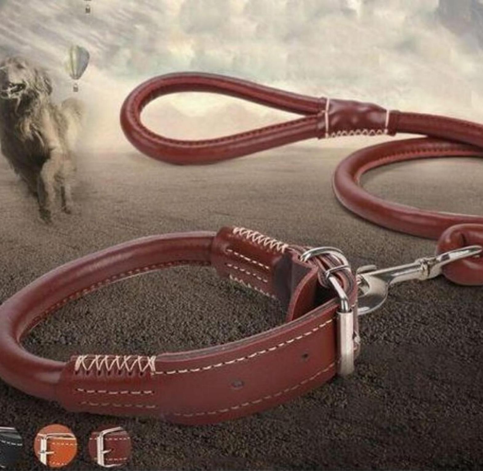 Leather dog collar and leash easy grip rolled up leather dog collar and leash made of pu leather adjustable collar prevents tangling of hair under collar pu leather dog leash dogs long leashes adjustable pet walking training leads brown black colors for medium large pet.
