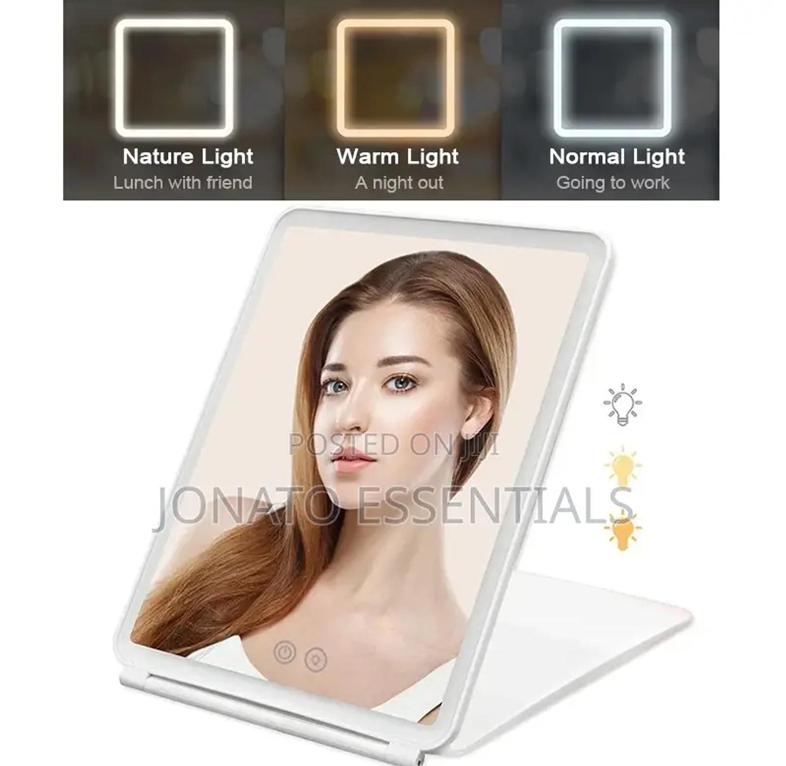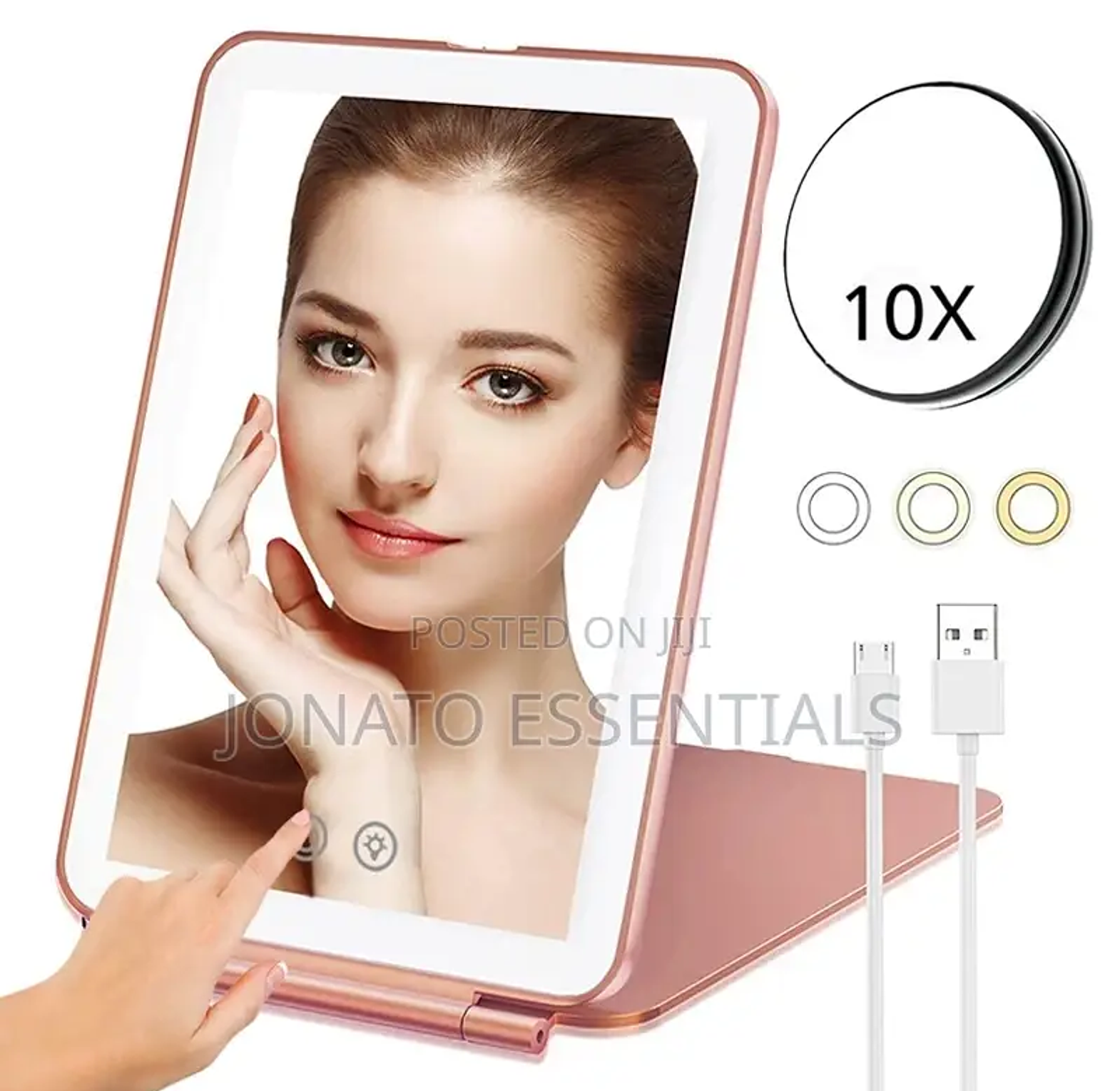Led travel makeup mirror rechargeable led travel tablet vanity mirror lighted makeup mirror is large enough for your hair and makeup,but with foldable, super light, single sided design that can be easily put into your backpack, suitcase, or locker,and more, perfect for travel, office, outdoor and even at home. portable foldable travel makeup mirror with led light infinity bedroom tocador vanity mirrors cute make up tools accessories.