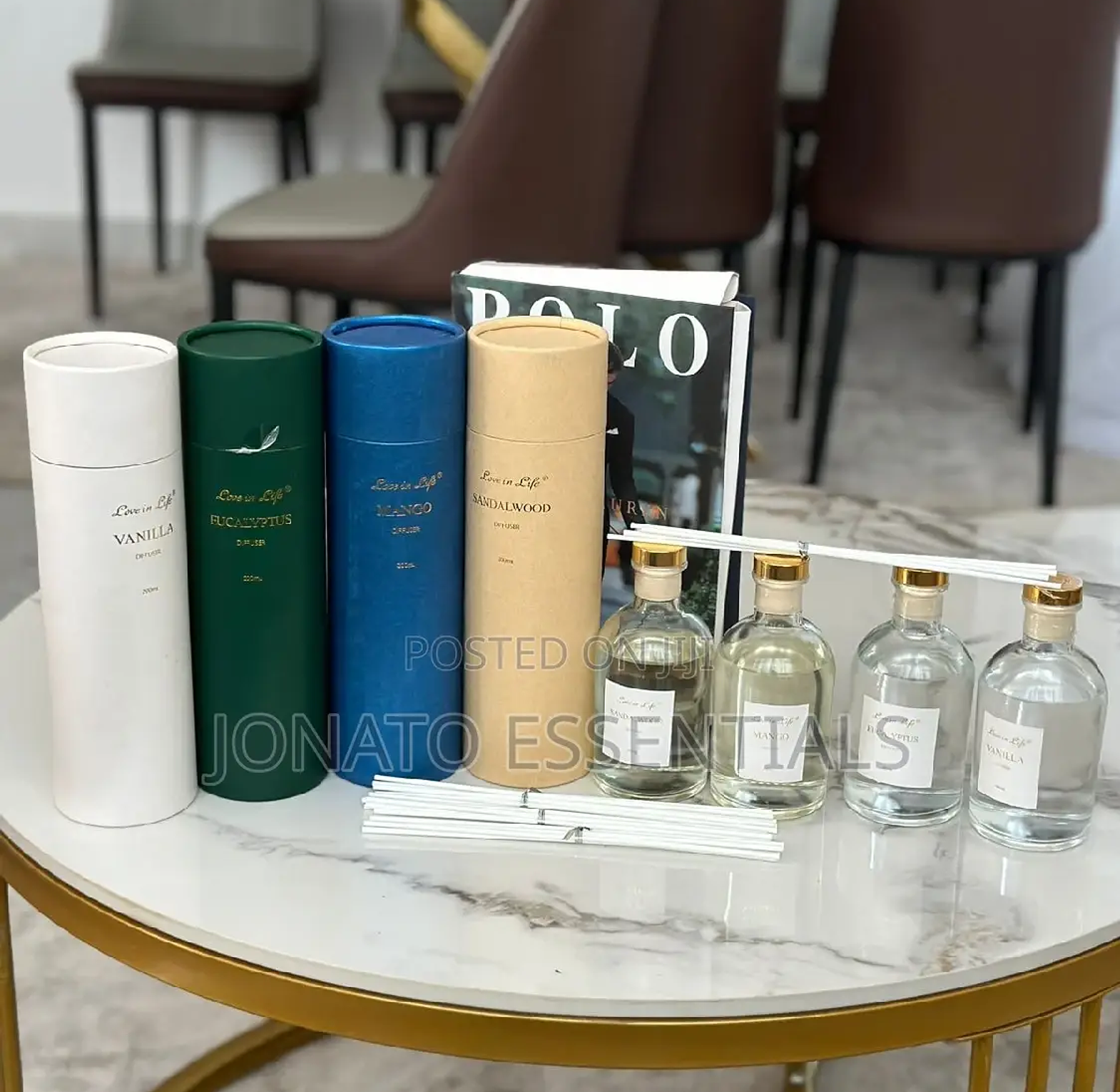 Luxury diffusers has canvas packaging available in sandalwood , vanilla , mango and eucalyptus. capacity 200mls perfect gift since it has a very nice packaging.