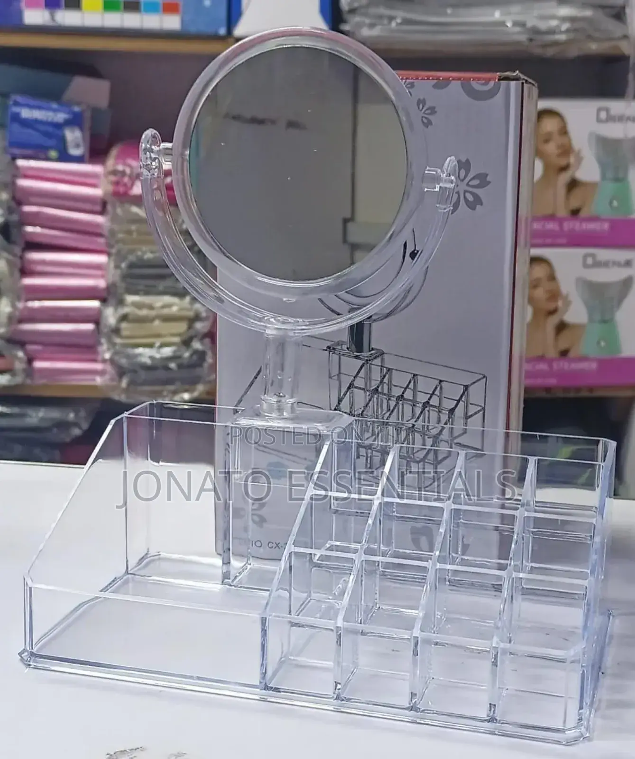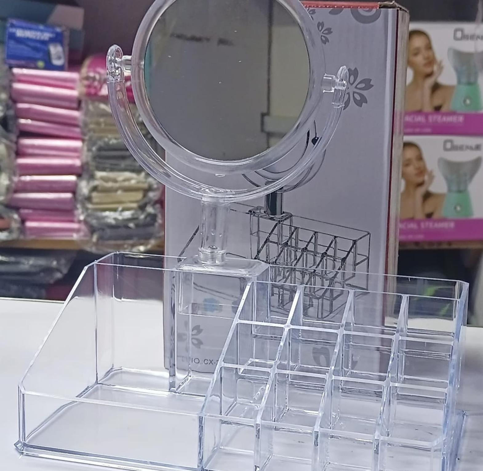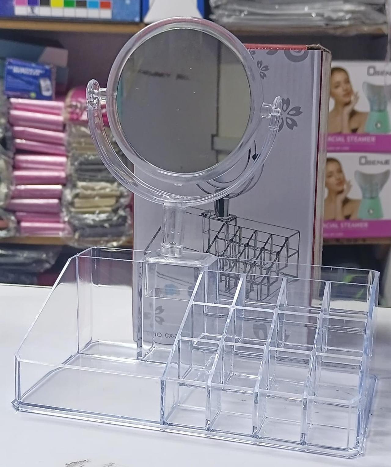 Make up and cosmetics organizer acrylic cosmetic organiser has a detachable mirror,space saver for all jewelleries. jewellery jewelry organizer this professional makeup brush holder organizer is composed of a very strong acrylic material with excellent weather resistant and much stronger than glass, which ensures its durability and security from injury and breakage