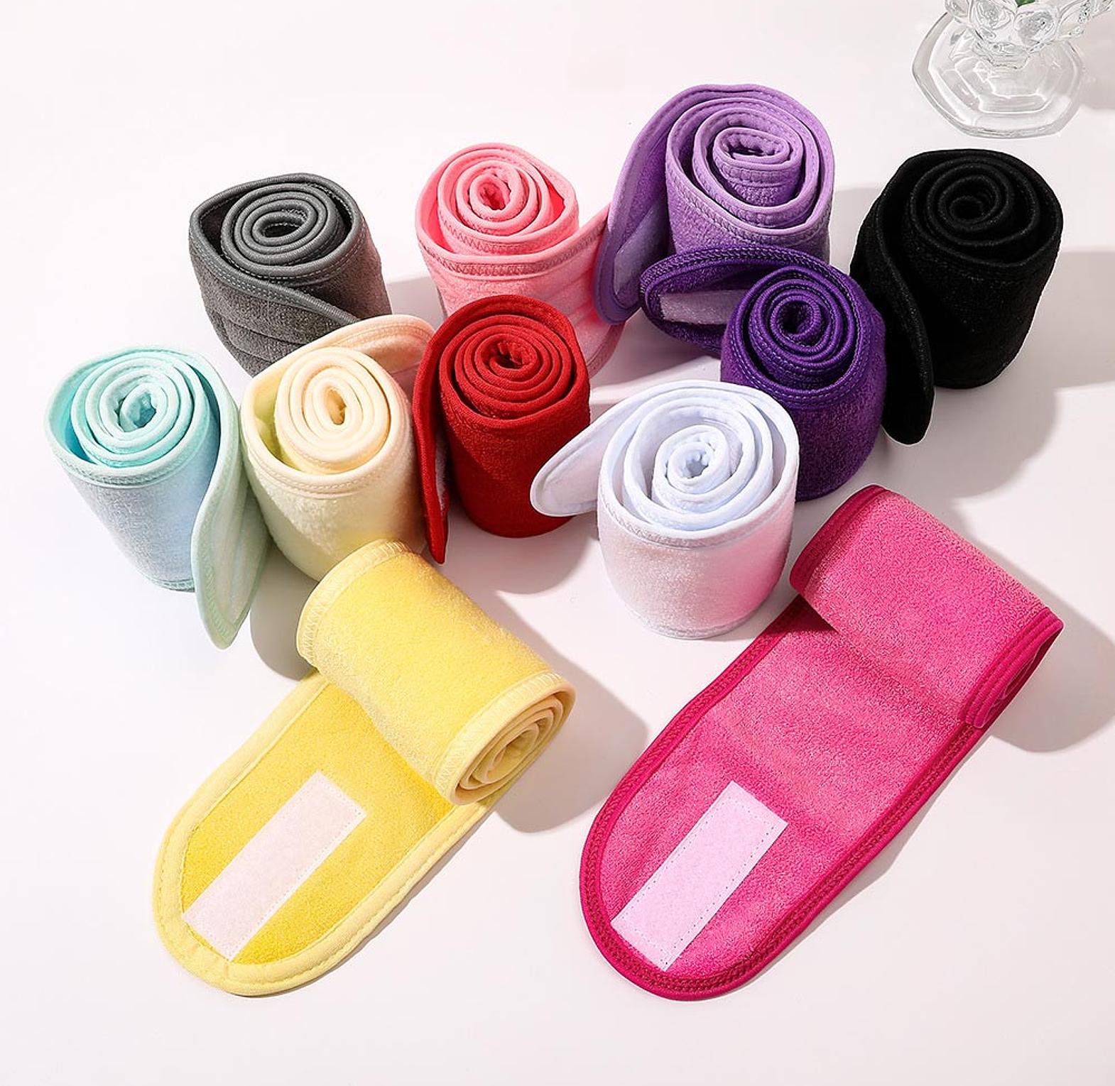 Microfibre spa/jogging headband yellow,purple,blue,pink,white,black available material: 80% polyester/20% polyamide. makeup headband total size: 9cm x 66 cm. super cute headband made with soft microfiber material, flexible. it provides you a comfortable feeling and better water absorbent. for its design, it will be more convenience while washing face, applying mask, doing spa facials, playing yoya, running, exercising or any time you want to hold your hair