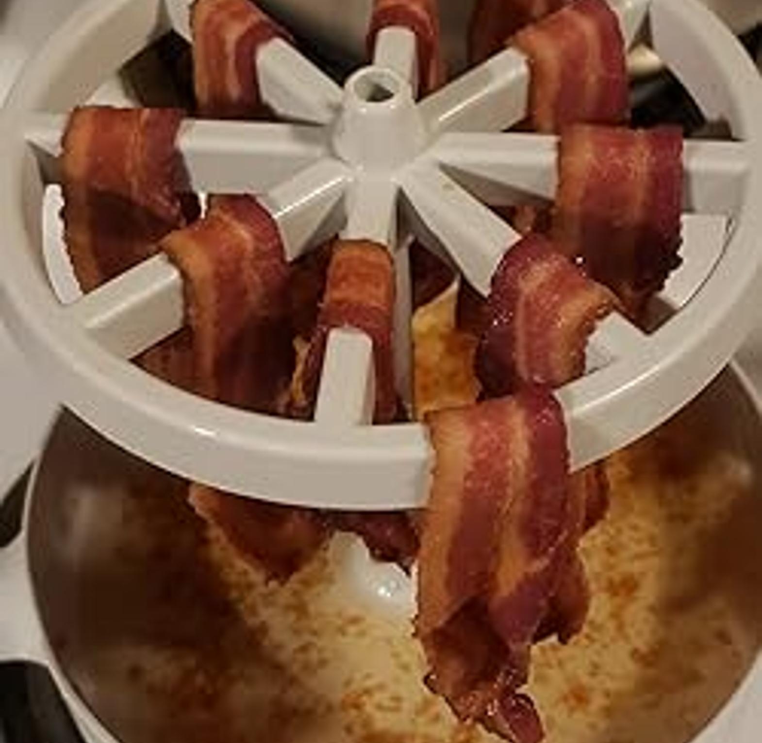 Microwave bacon cooker, barbecue rack microwave bacon maker (bacon wizard) quick and efficient cooking: utilize microwave technology to achieve crispy bacon perfections in record time, far surpassing traditional stovetop methods. delightful-crunch: the design allows excess grease to drain away, resulting in deliciously crispy bacon slices while promoting a healthier meal option. minimal mess: the enclosed design effectively contains splatters, keeping your microwave clean and mess-free. reusable: made from quality, non bpa materials, this bacon maker is built to withstand repeated use and is dishwasher safe for easy cleaning. versatile cooking companion: beyond bacon, it can be used to cook sausages, deli-meats, or even vegetables, enhancing its utility in your kitchen. microwave bacon cooker fast crispy microwave bacon making tool.