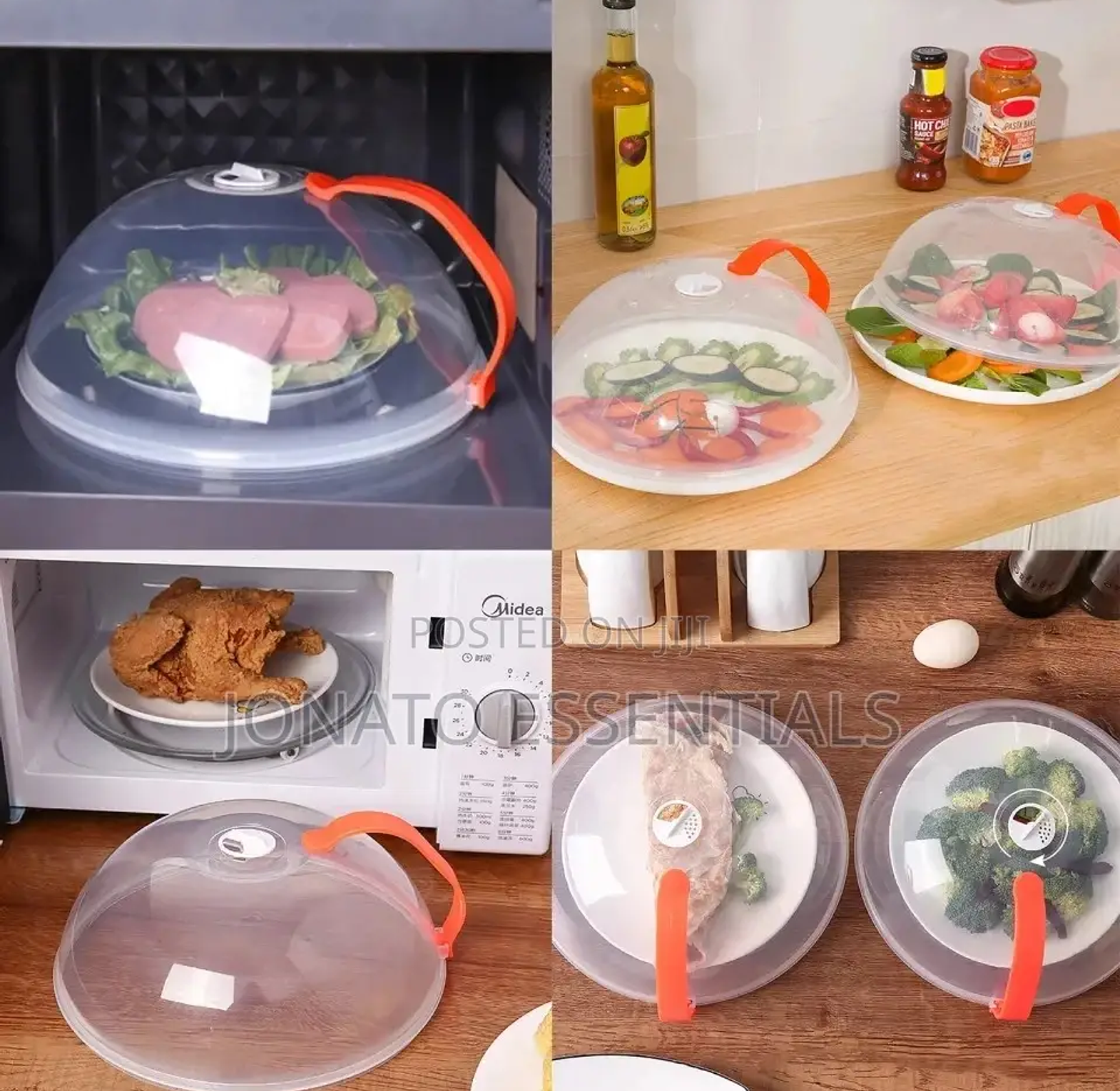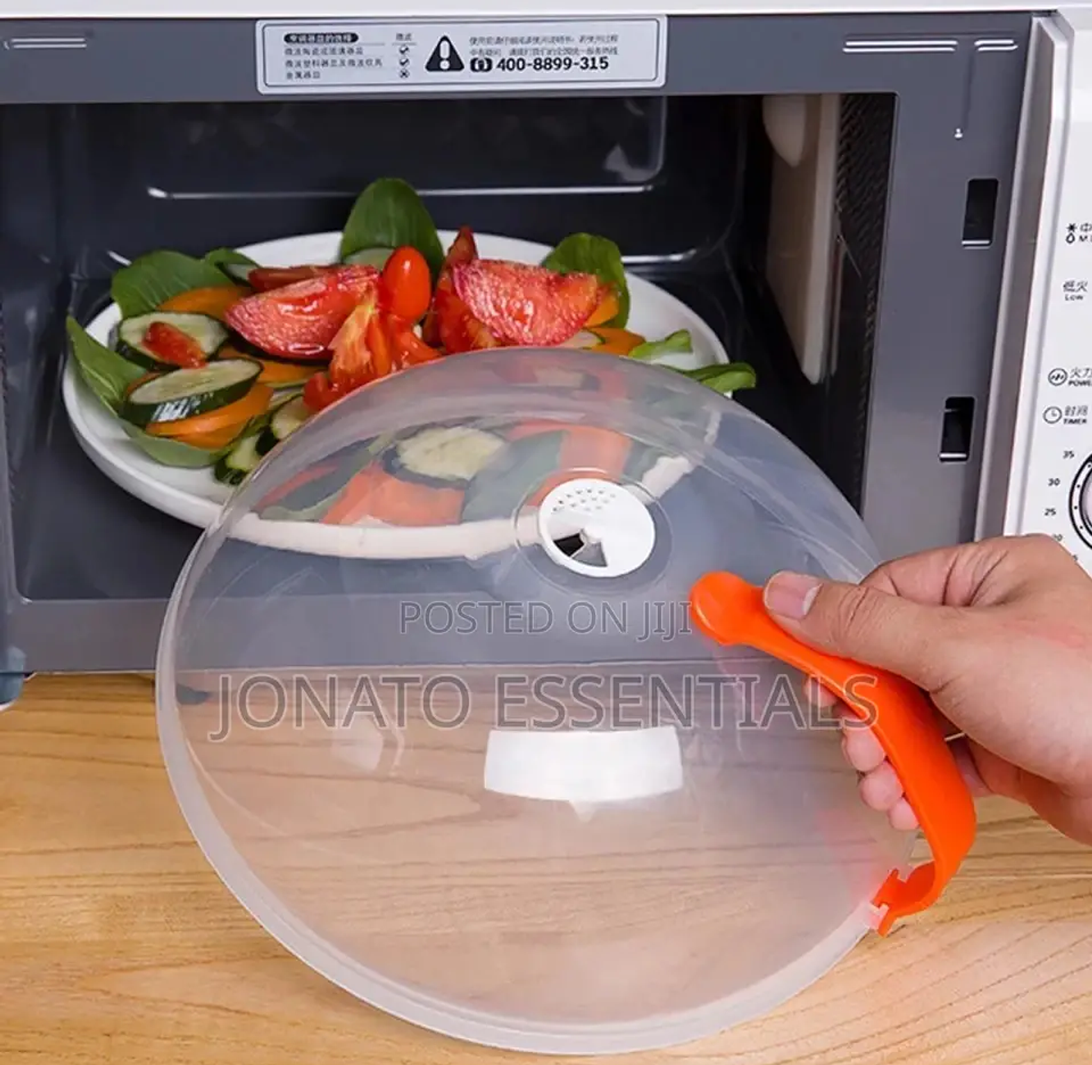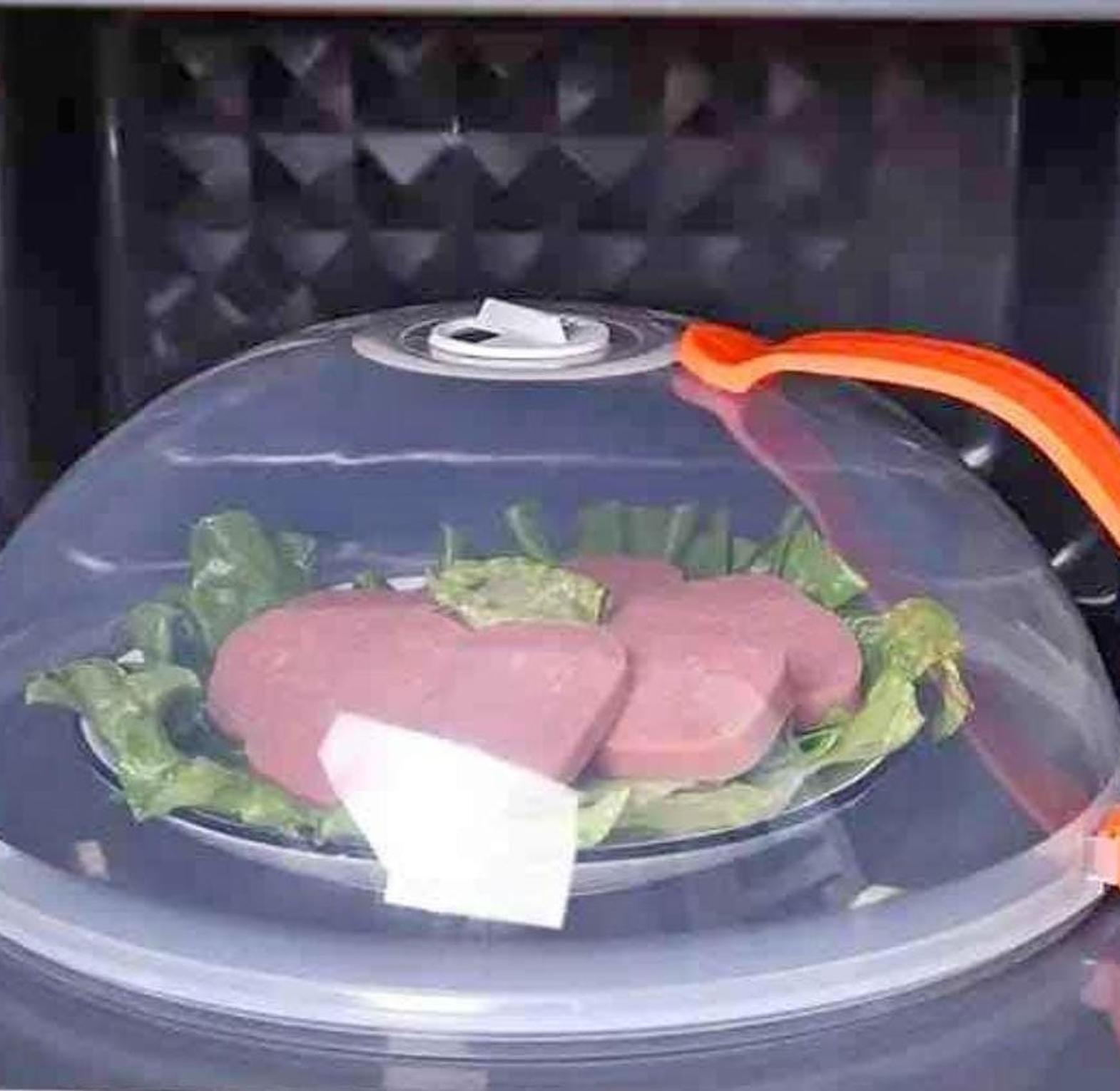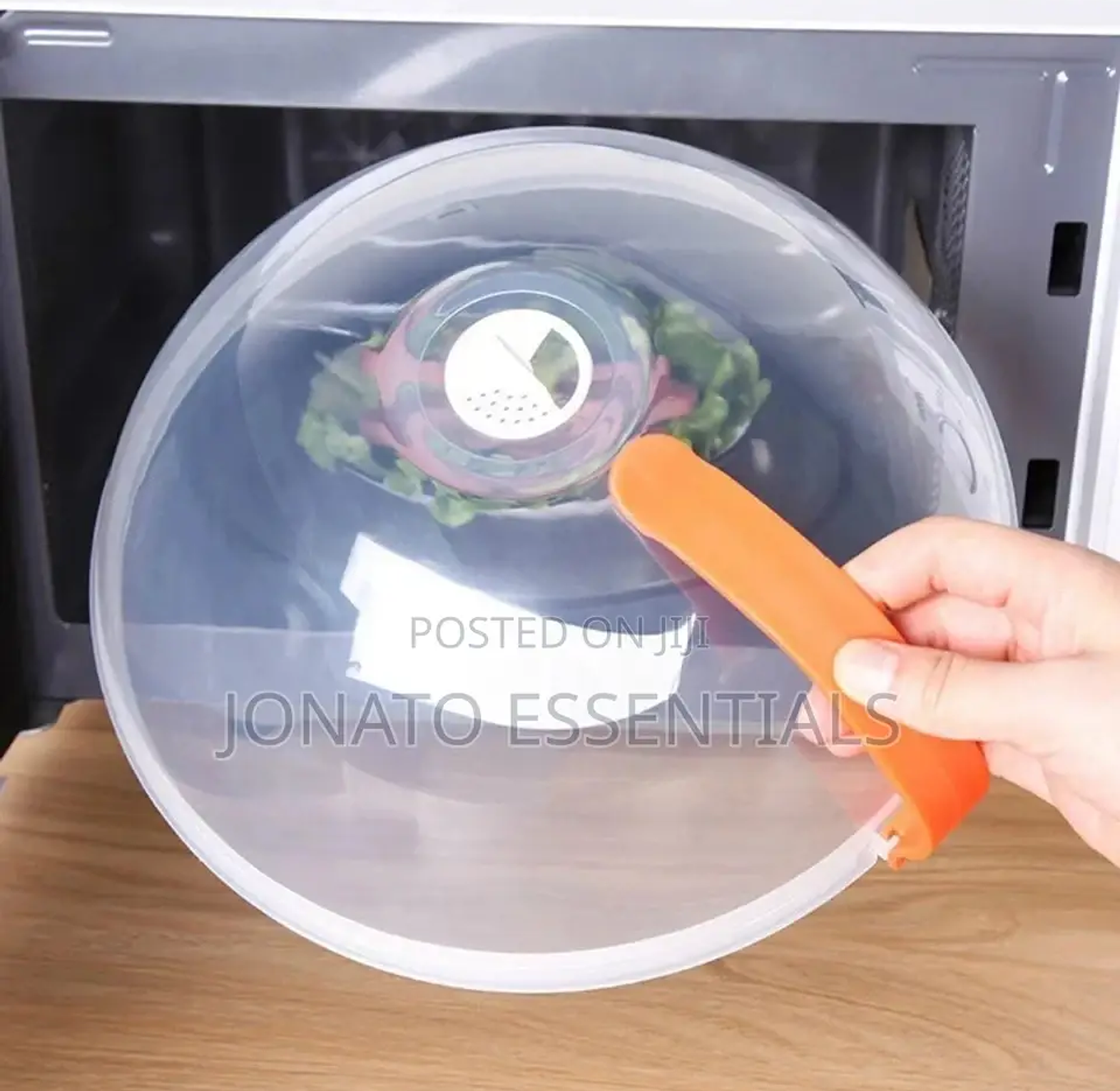 Microwave food cover this cover prevents splashing of food in the microwave inner surface causing dirt. diameter 26cm transparent microwave cover with rotatable vent and anti-scalding handle high temperature resistance kitchen tool