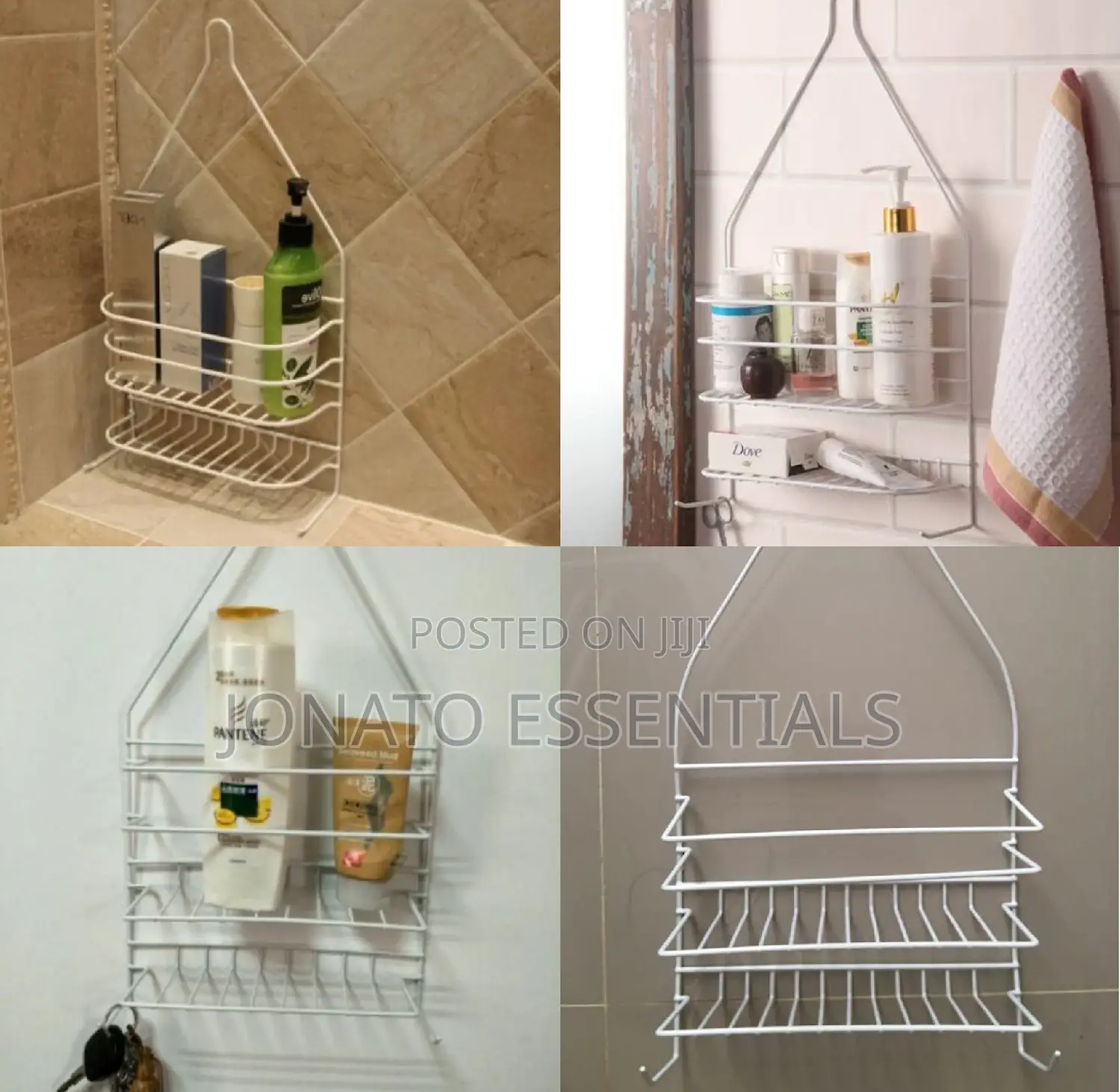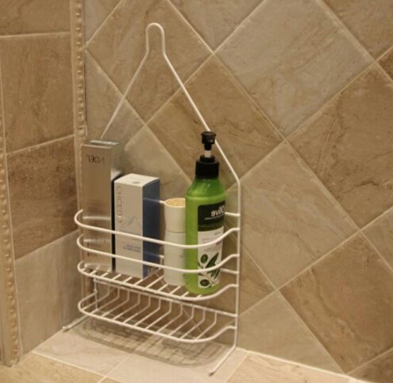 Mini shower caddy, double layer storage shelf. material: painted steel can be used in bathroom and kitchen. use water to clean and dry it with soft cotton cloth. easy to clean. do not rub with the metal and edge tool. shower organizer bathroom shower shelves hanging hook for shampoo, soap, scourers, organizer