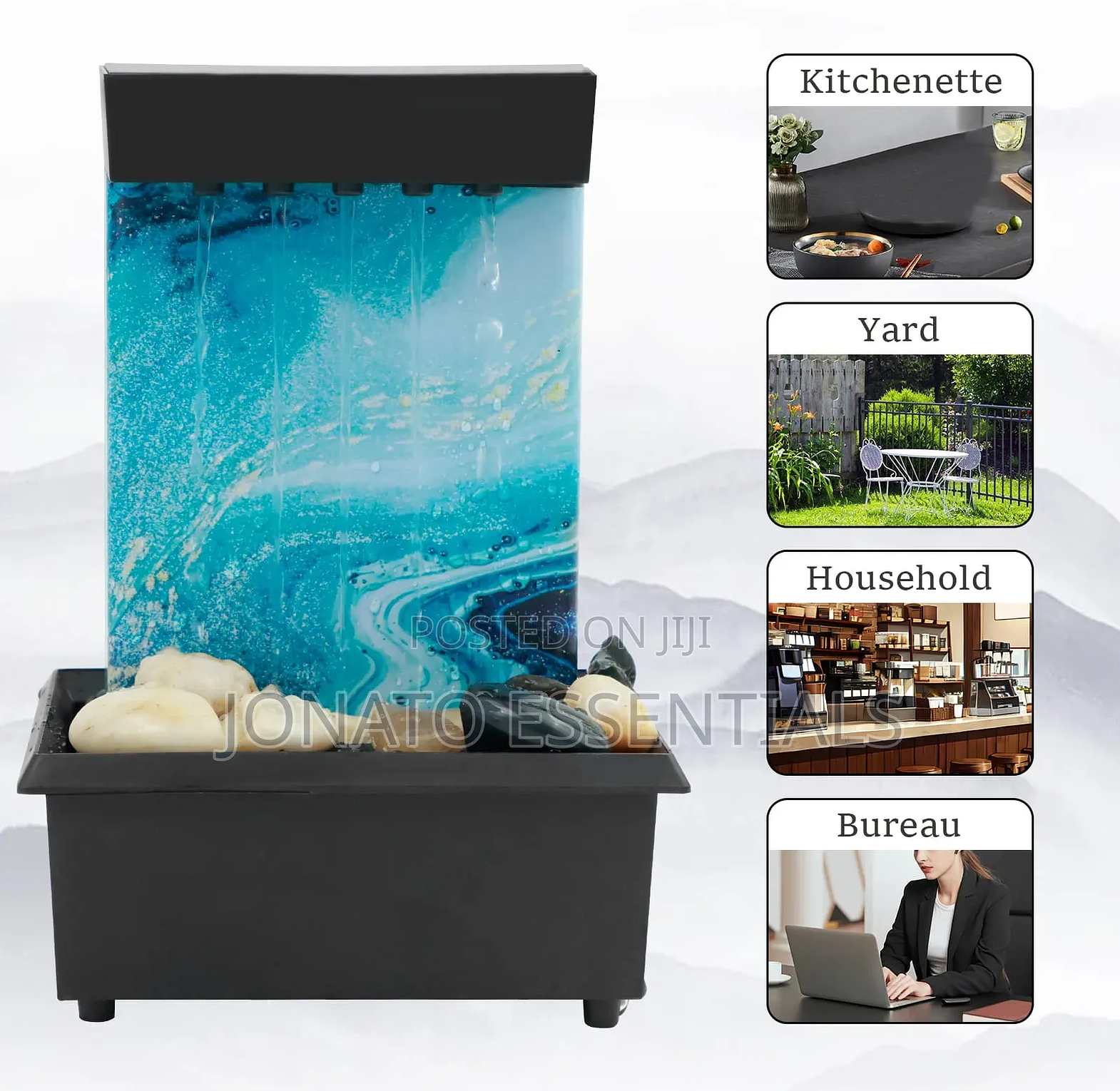 bring peace and serenity to your kenyan space with this stunning indoor water fountain. perfect for your home office, living room, bureau, or small apartment balcony, its soothing trickle creates a relaxing ambiance to relieve stress. the beautiful blue marble-effect panel with led lighting enhances any modern home décor or business reception area. this durable, electric, table fountain is easy to set up, requires minimal maintenance, and is an ideal housewarming or corporate gift.