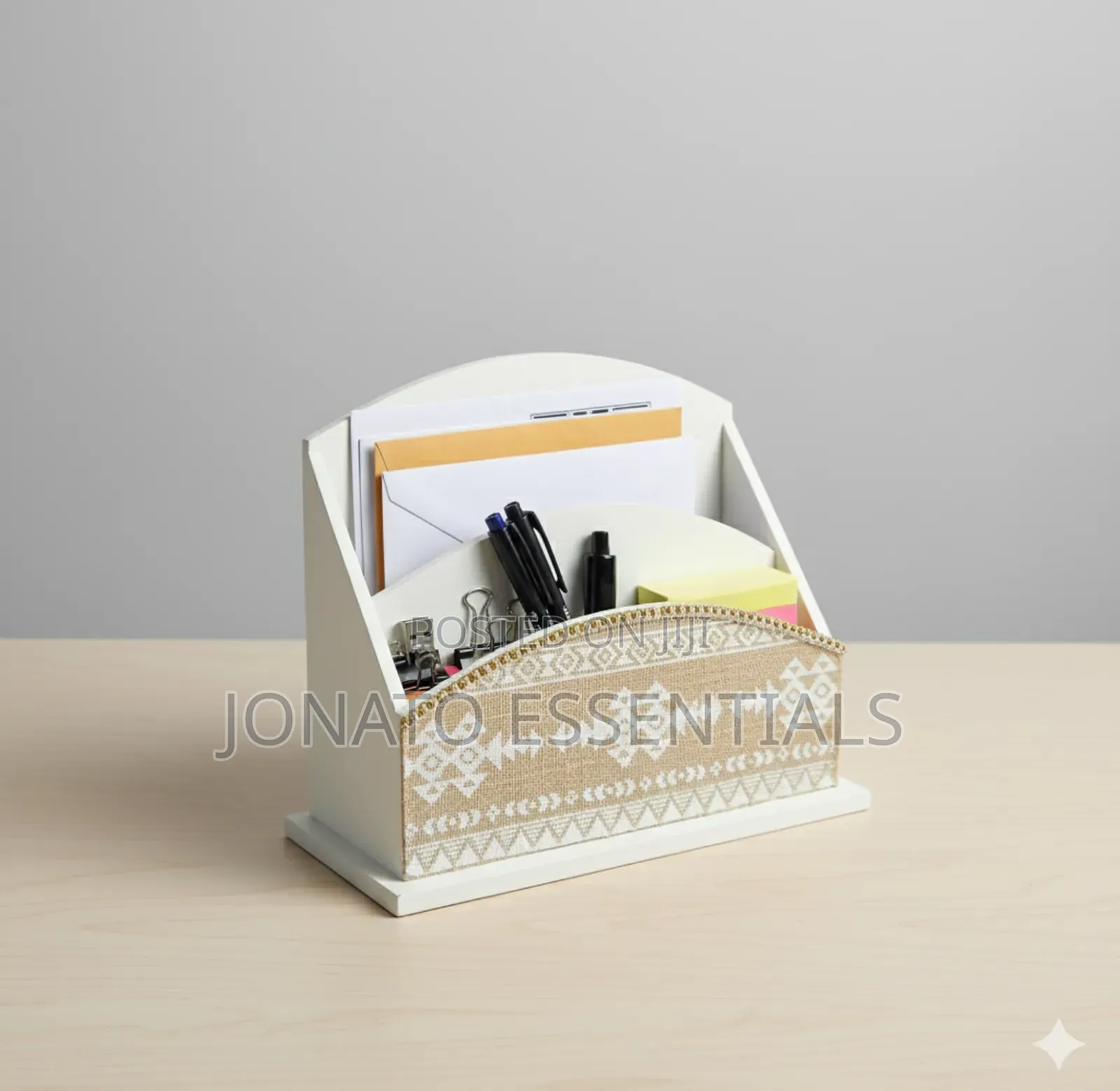transform your workspace with this chic and functional wooden desk organizer, perfect for home offices and studies in kenya. it features multiple compartments to neatly store your pens, mail, notepads, and stationery, helping you work smarter and stay productive. the unique woven design adds a modern, rustic elegance that instantly elevates your decor, unlike common plastic trays. made with quality, durable materials for lasting use, this versatile organizer is a must-have for professionals seeking style and organization.