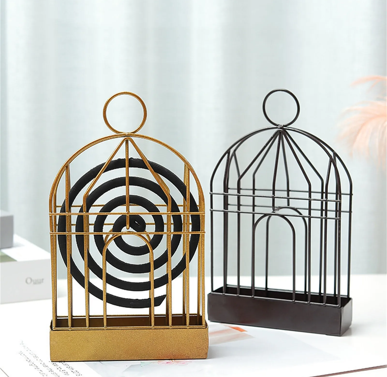 Mosquito coil holder handle design, easy to move. the shape is elegant, the lines are smooth and round, and the atmosphere is beautiful. the bottom non-slip pad design is not easy to slip. mosquito coil holder bird cage shape hand-made european style mosquito repellent incenses rack plate home decoration.
