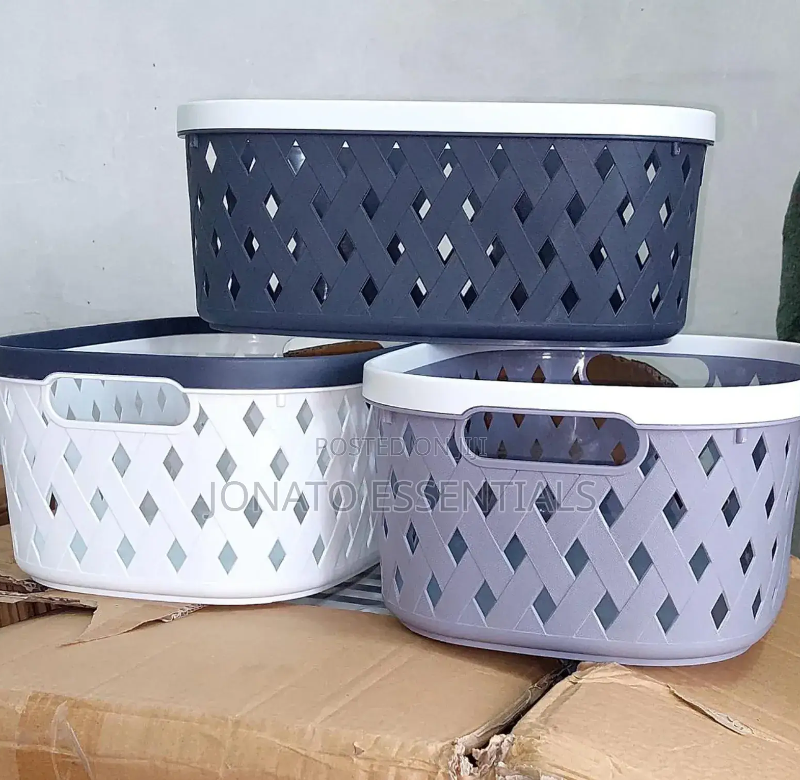 storage basket, plastic basket with lid, laundry basket, home organizer, toy storage bin, closet organizer, office storage box, multipurpose basket, storage solution, woven plastic basket, durable storage container, home essentials kenya.