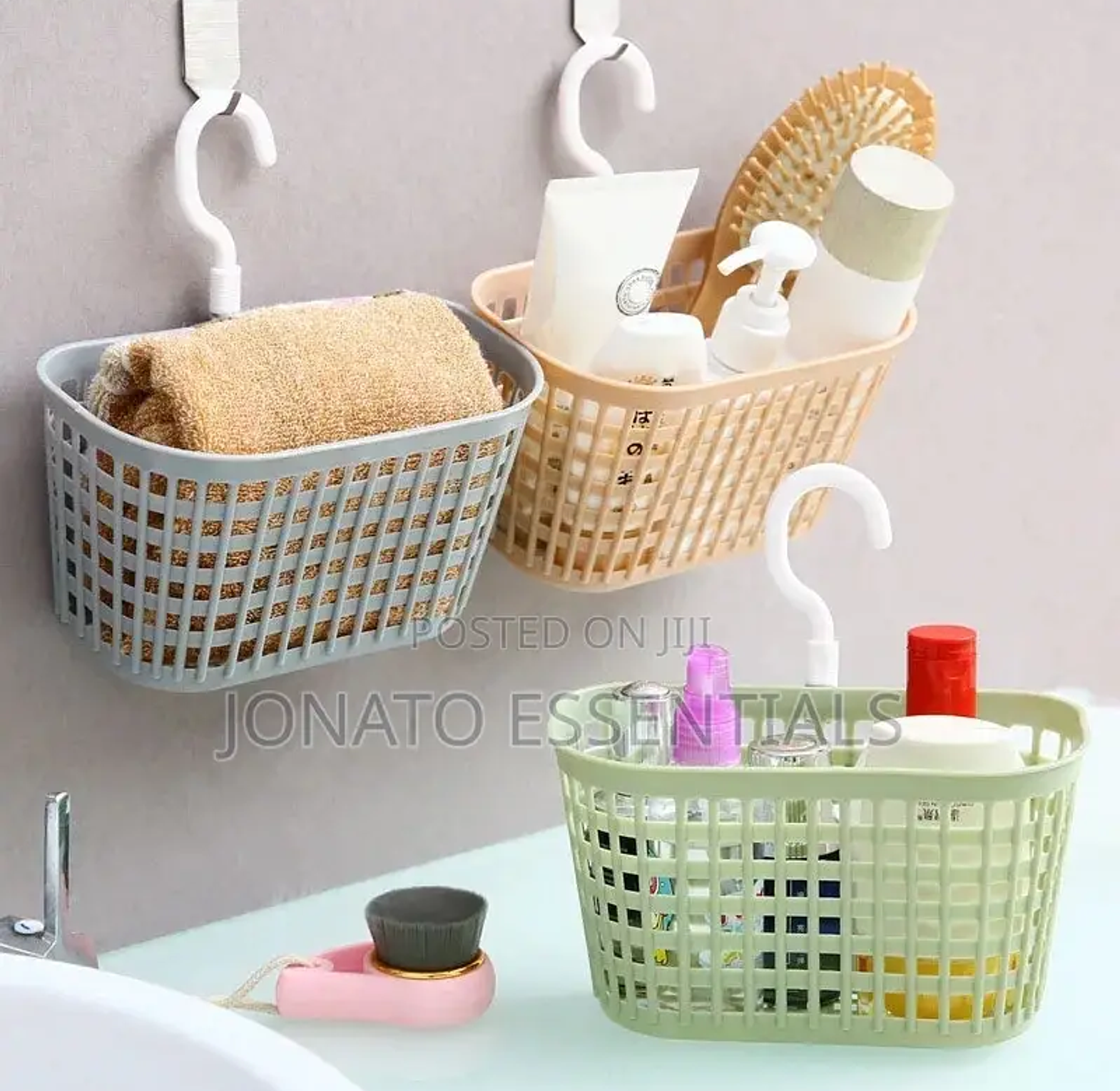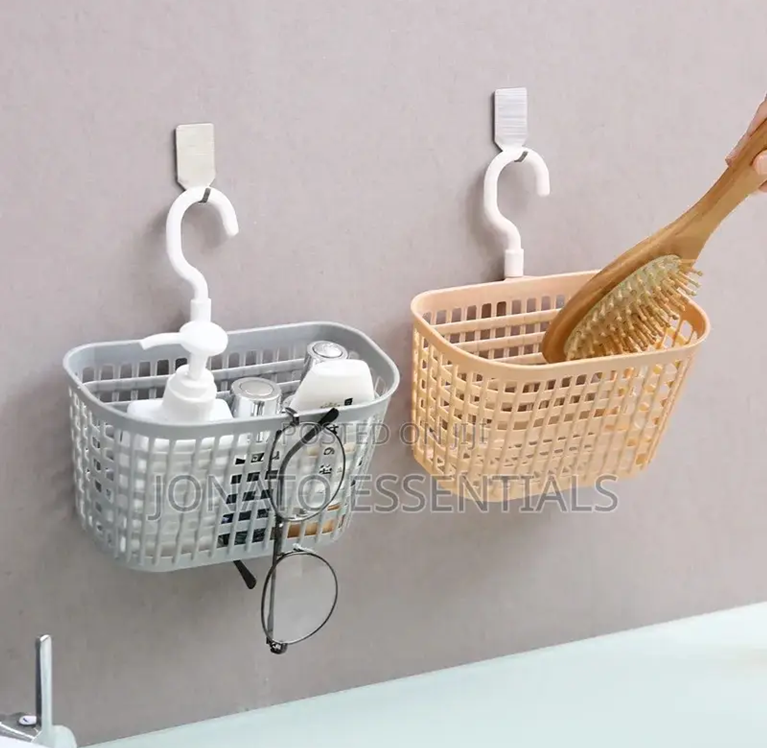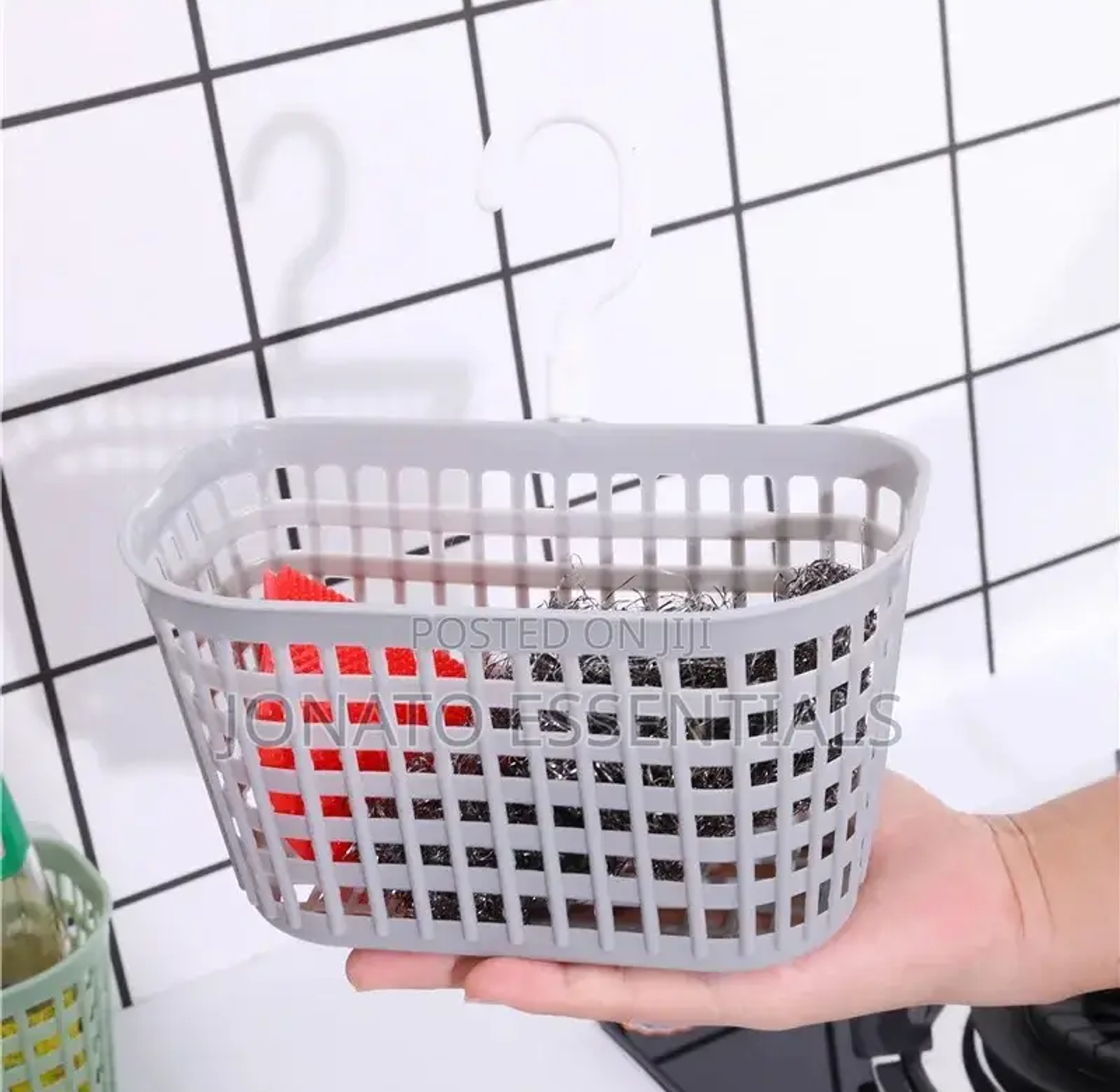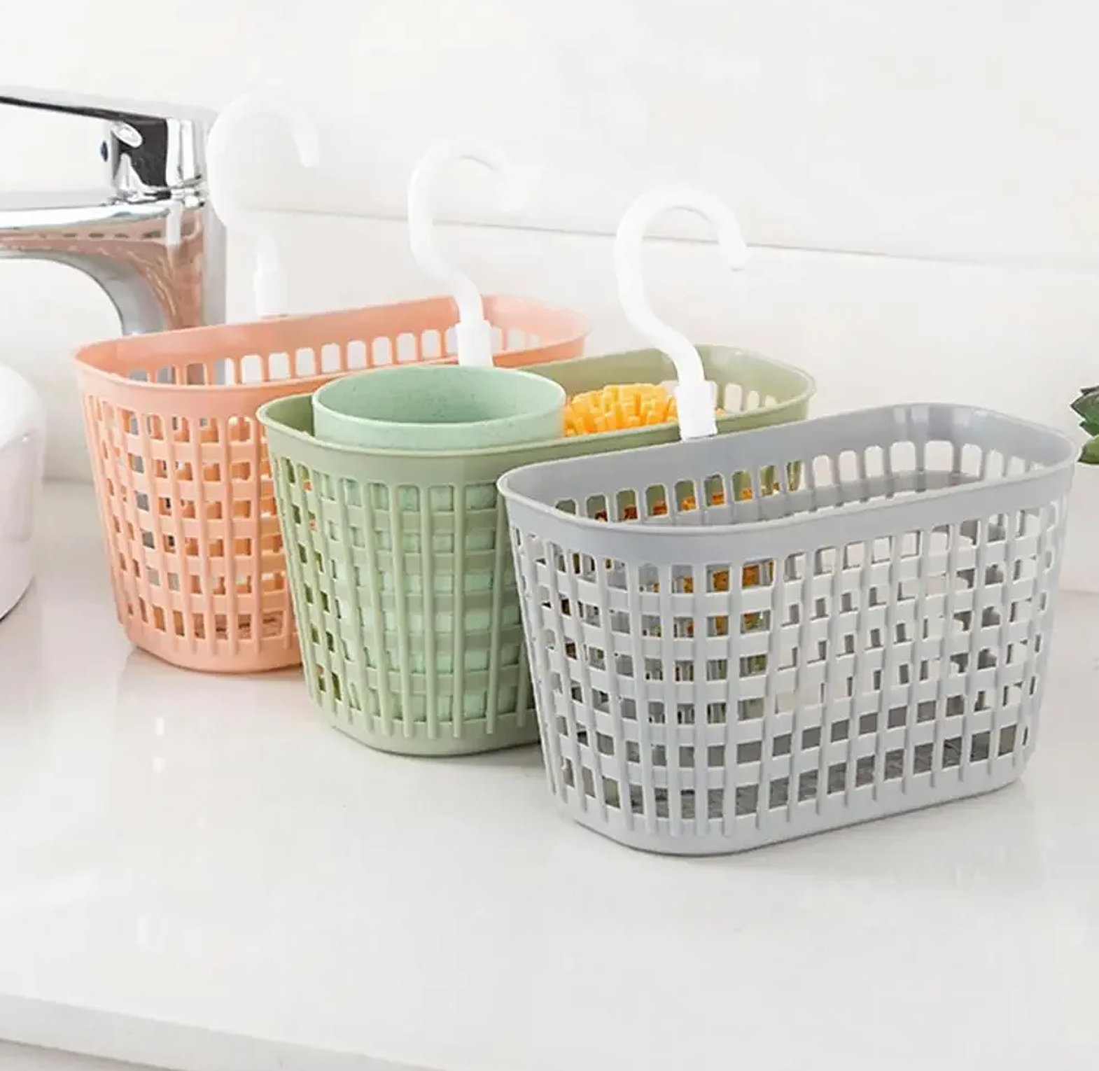 Multipurpose hanging storage basket slay baskets draining hanging basket, sturdy and durable, the hook can be rotated 360 degrees high-quality abs, hygienic and environmentally friendly the hollow design keeps items dry and is not easy to breed bacteria sundries hanging basket storage drain bag bath storage basket sink holder soap holder kitchen bathroom storage organizer.