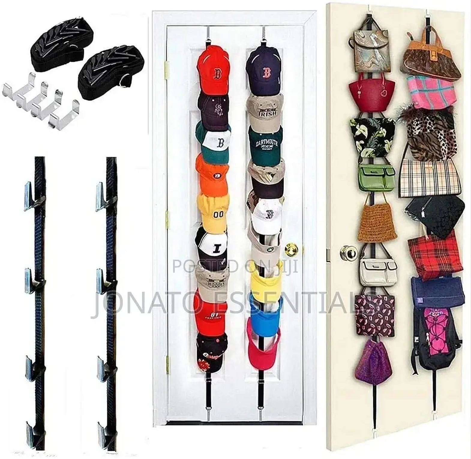 Multipurpose over the door hanging rope rack 8 clip hats. caps storage organizer size 72.5cm 7 flex hooks on each rack hold a wide range of items a single mounted adjustable door seamless multi-purpose stored-back coat hook rope lanyard. an over-the-door storage rack that helps keep your bedroom, bathroom, kitchen, or any other space neat and organized. 16 hooks adjustable seamless over door hook rope hanging hat cap rack holder organizer new clothing convenient accessories hanger.
