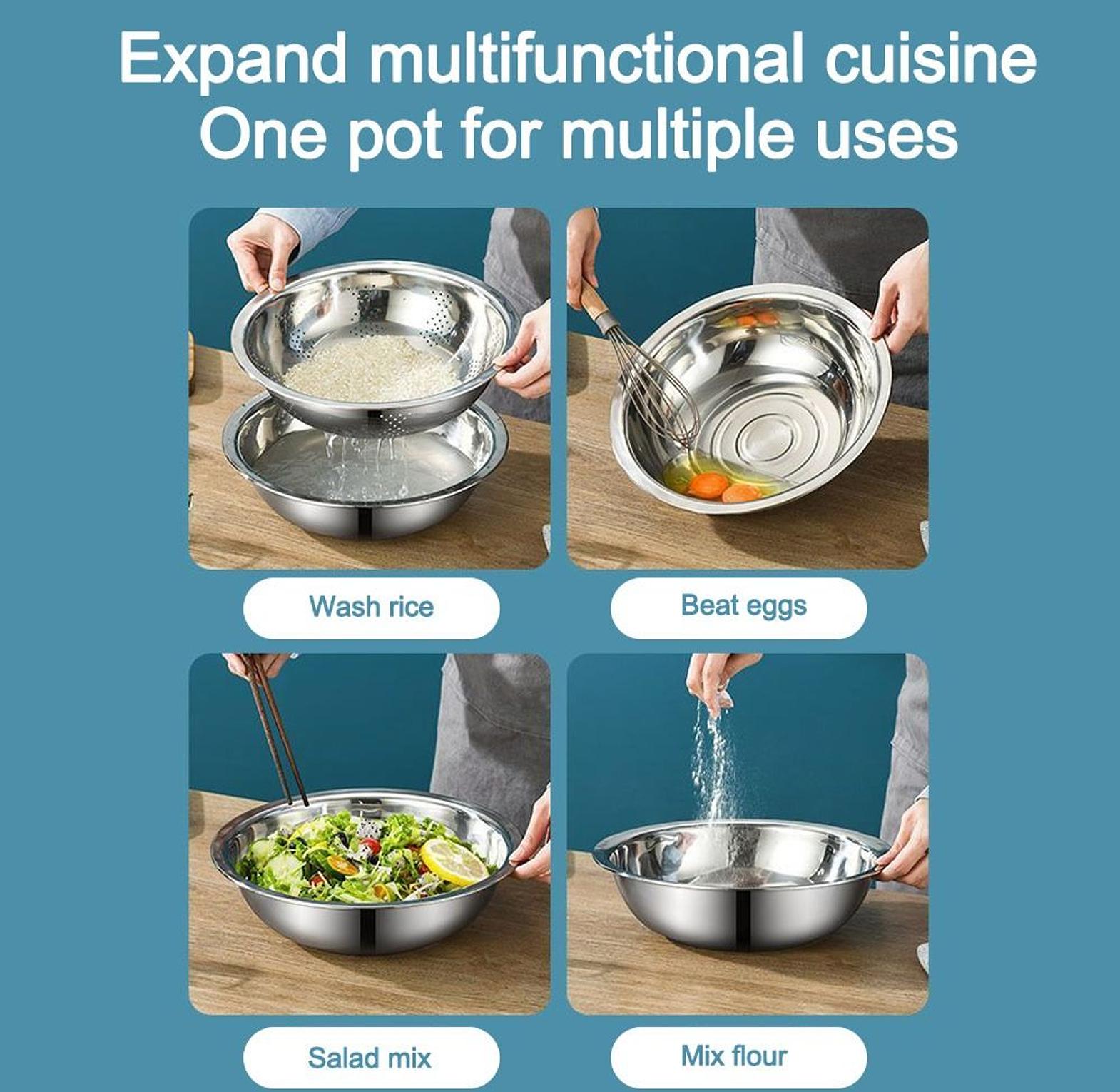Upgrade your kitchen with this multi-functional 3 in 1 stainless steel set designed for the modern Kenyan home. This versatile tool includes a high-quality slicer, a drainage basket, and a solid mixing basin for all your food prep needs. Whether you are shredding cabbage for coleslaw, slicing potatoes for homemade crisps, or washing vegetables, this durable set handles it all with ease. The rust-proof material ensures long-lasting use, making it a smart investment for your daily cooking. Simplify your meal preparation and keep your kitchen organized with this essential all-in-one kitchen gadget.
