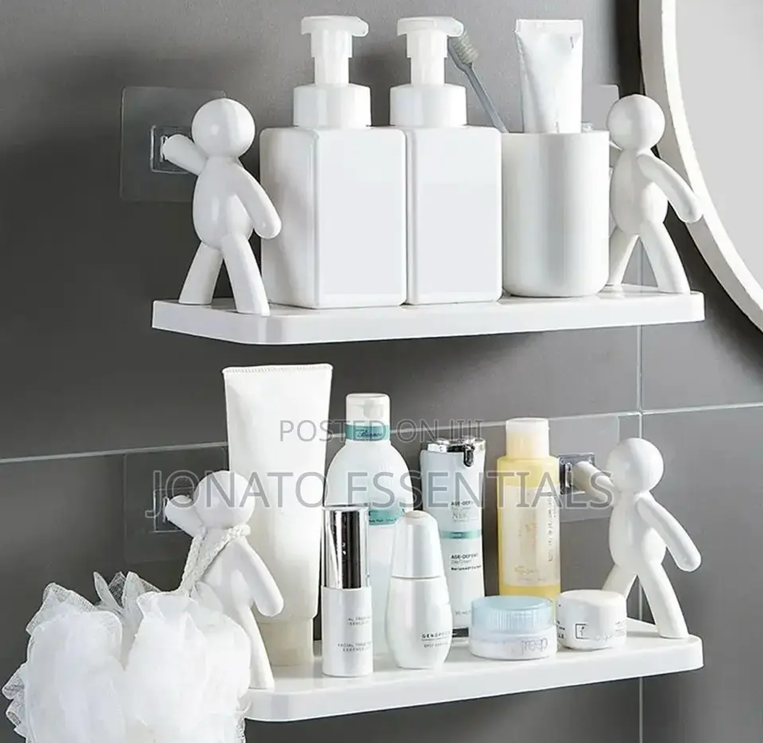 Multipurpose storage shelf or rack villian shelf bathroom villain shelf organizer strong load-bearing, nail free installation, round edges and corners, strong waterproof, large space, material the space for placing condiment bottles in the widening and lengthening storage area is clean and fresh large capacity for easy access to daily washing and care supplies easy storage toilet adhesive shampoo gel storage body decor bathroom corner shower shelves rack accessories.