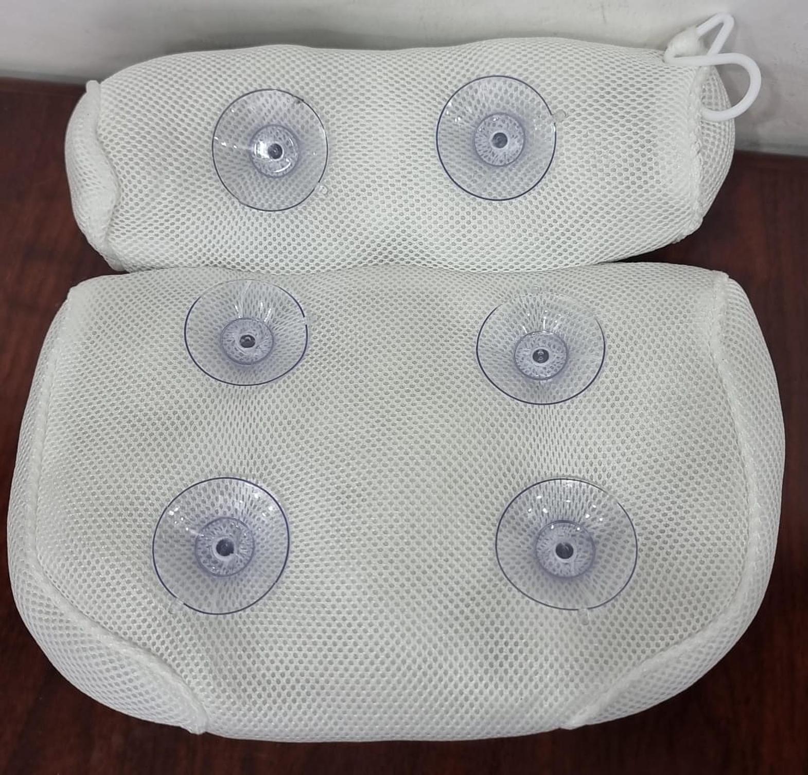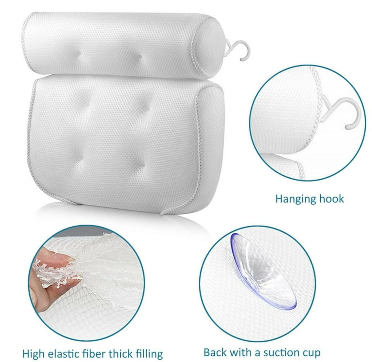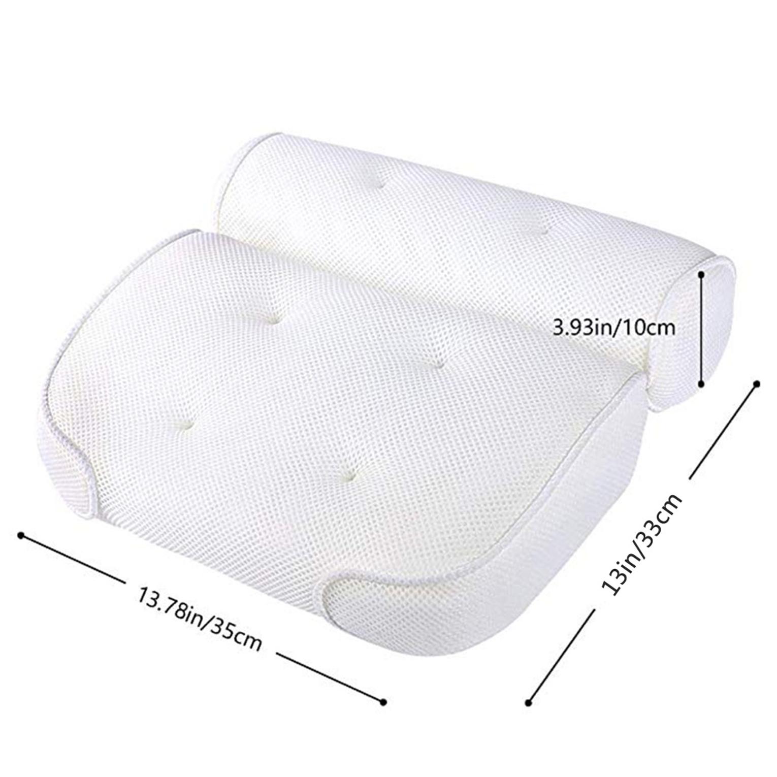 Neck and back bathtub pillow with suction cups bath tub bath pillow size 37x35x10cm 6 silicone suction cups it is light, soft and supportive with an anatomical shape that accommodates the head, neck and back no matter what type of tub you have. our special anti-bacterial mesh fabric allows water and air to flow through the bath cushion for quick drying. to prevent mold growth, it is recommended to clean the pillow once every 2 weeks. bath pillow bathtub pillow with suction cups neck back support thickened bath pillow for home spa tub bathroom accessories.