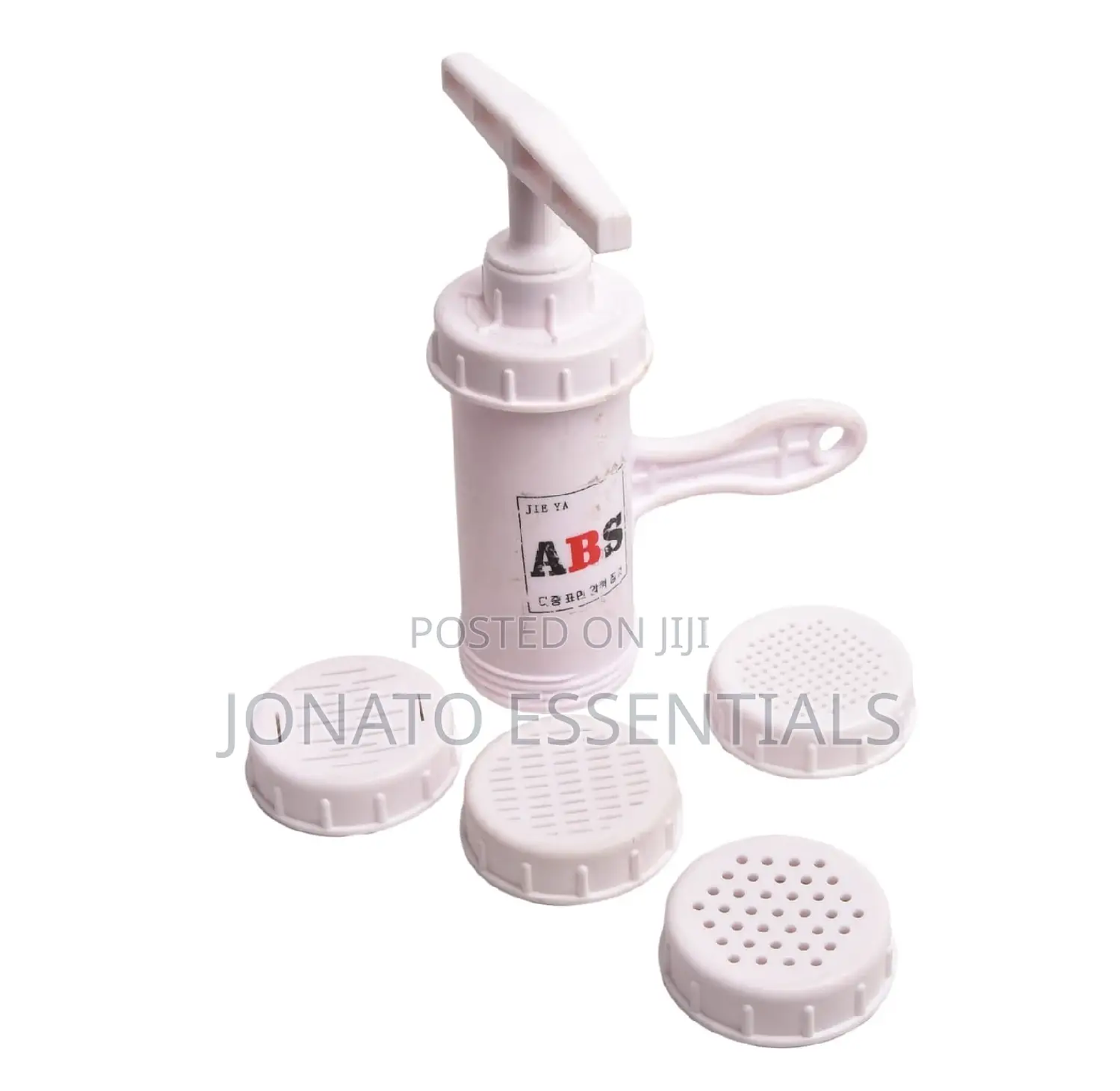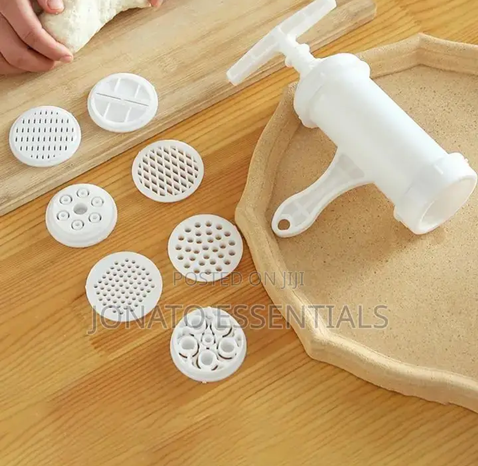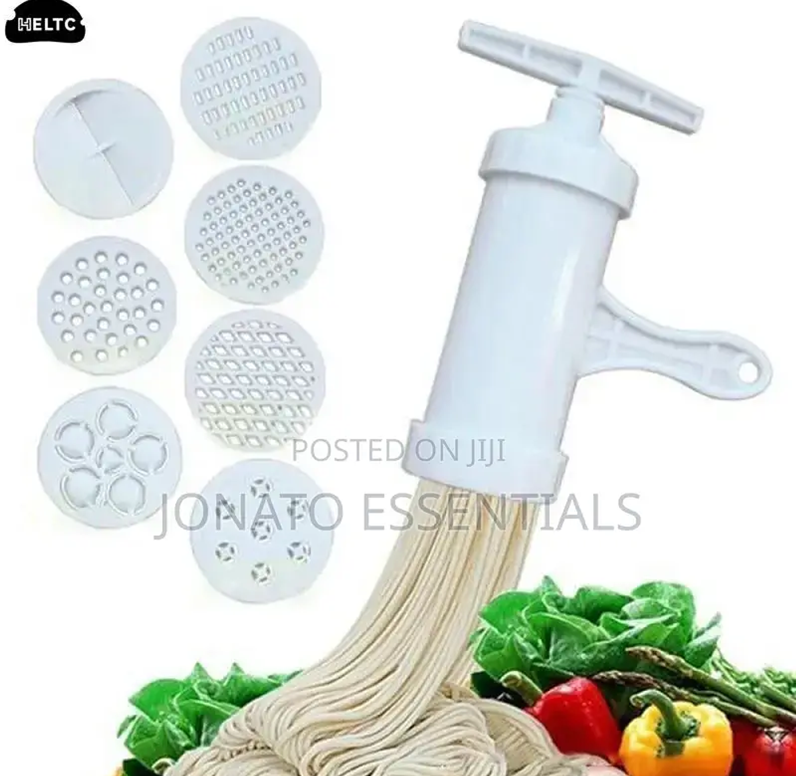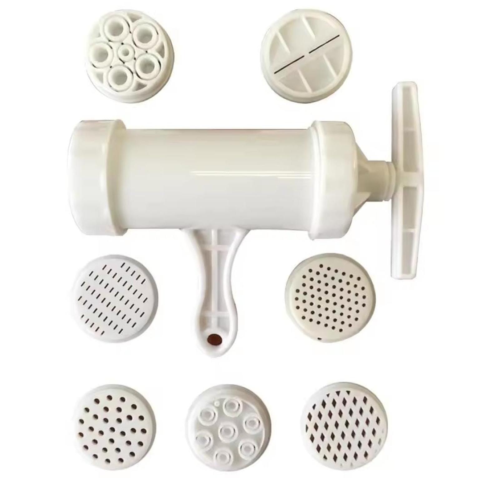 Noodle maker material-plastic easy operation has different templates to change you can make your own noodles of various shapes by simply unscrewing and changing the mold tray. helps make noodles, pasta and also can be used as small sausage maker machine. the simple and convenient hand crank design makes it easy to operate, and it is a pleasure to do your own delicious egg noodles. unique design of extrusion hole to ensure best results manual noodle press pasta machine crank machine kitchen utensils with 5different pressing molds make spaghetti kitchen tool.