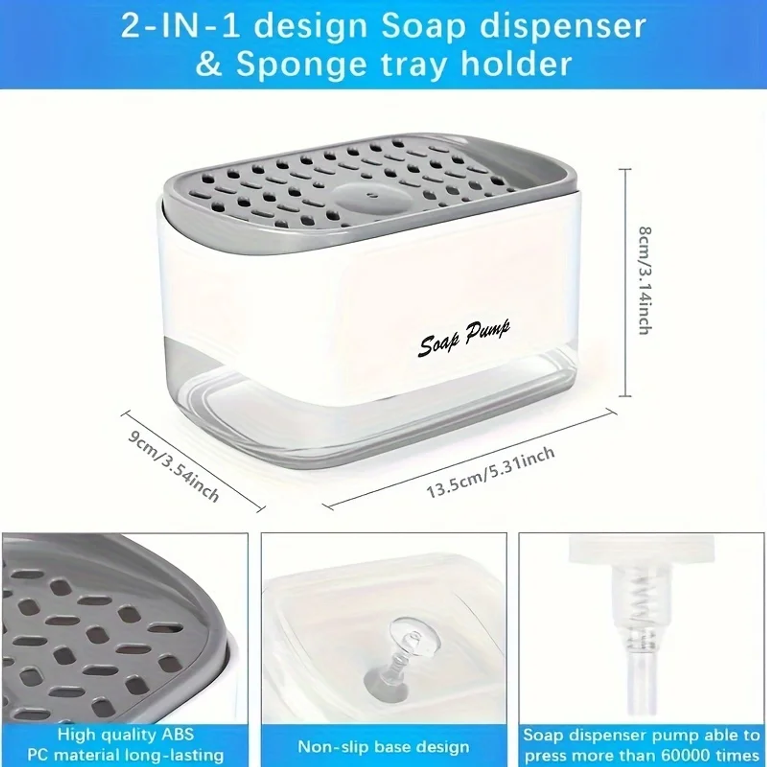 Nordic classy soap holder and dispenser soap pump and sponge caddy sponge soap dispenser only needs to gently press down with one hand to dispense an appropriate amount of soap onto the sponge, extremely easy to use and helps reduce soap wasted. the dish soap dispenser has a capacity of 10.15 ounces so that you don't need to refill it frequently, and suitable for all kinds of liquid soap. kitchen dish soap dispenser with sponge holder 2 in 1 countertop soap pump dispenser for kitchen sink soap liquid dispenser.