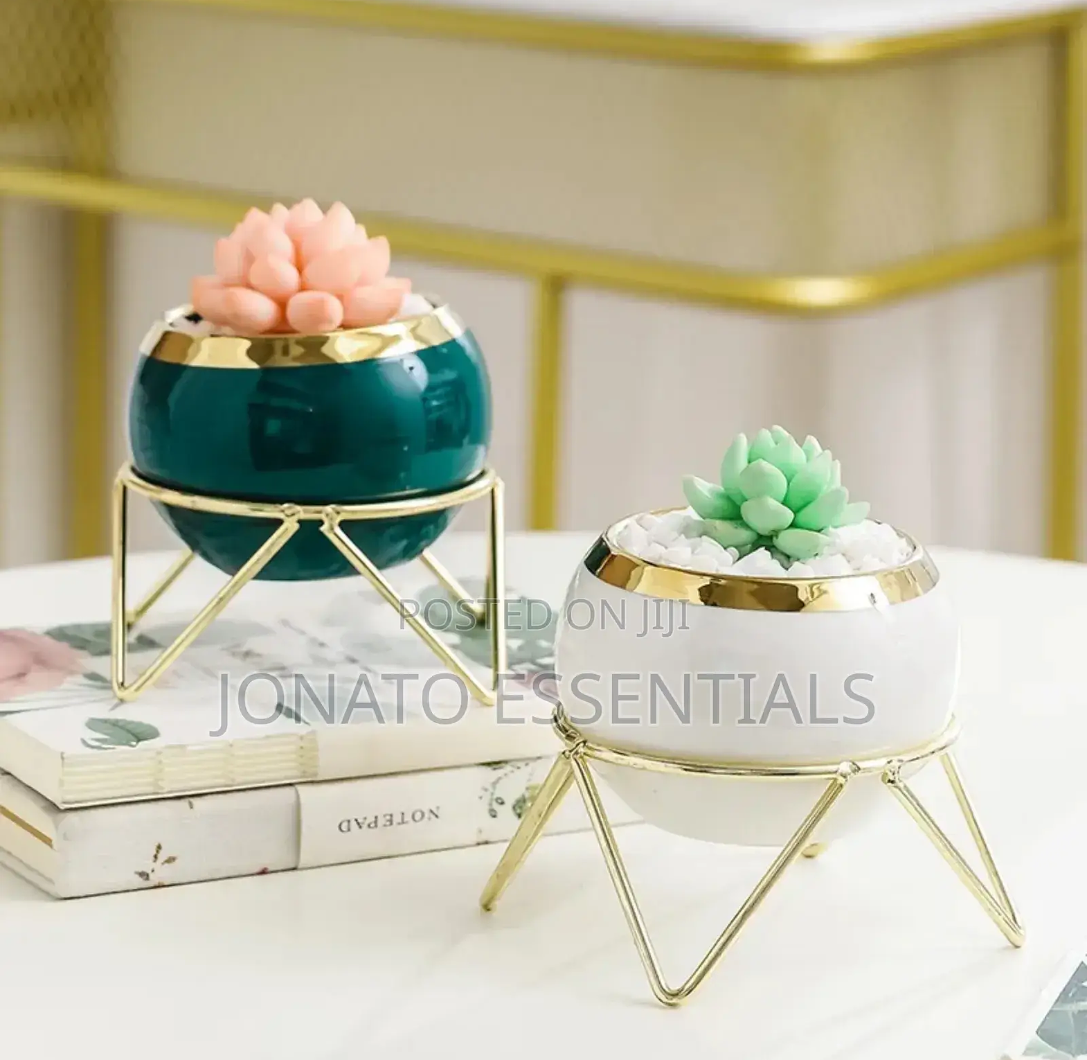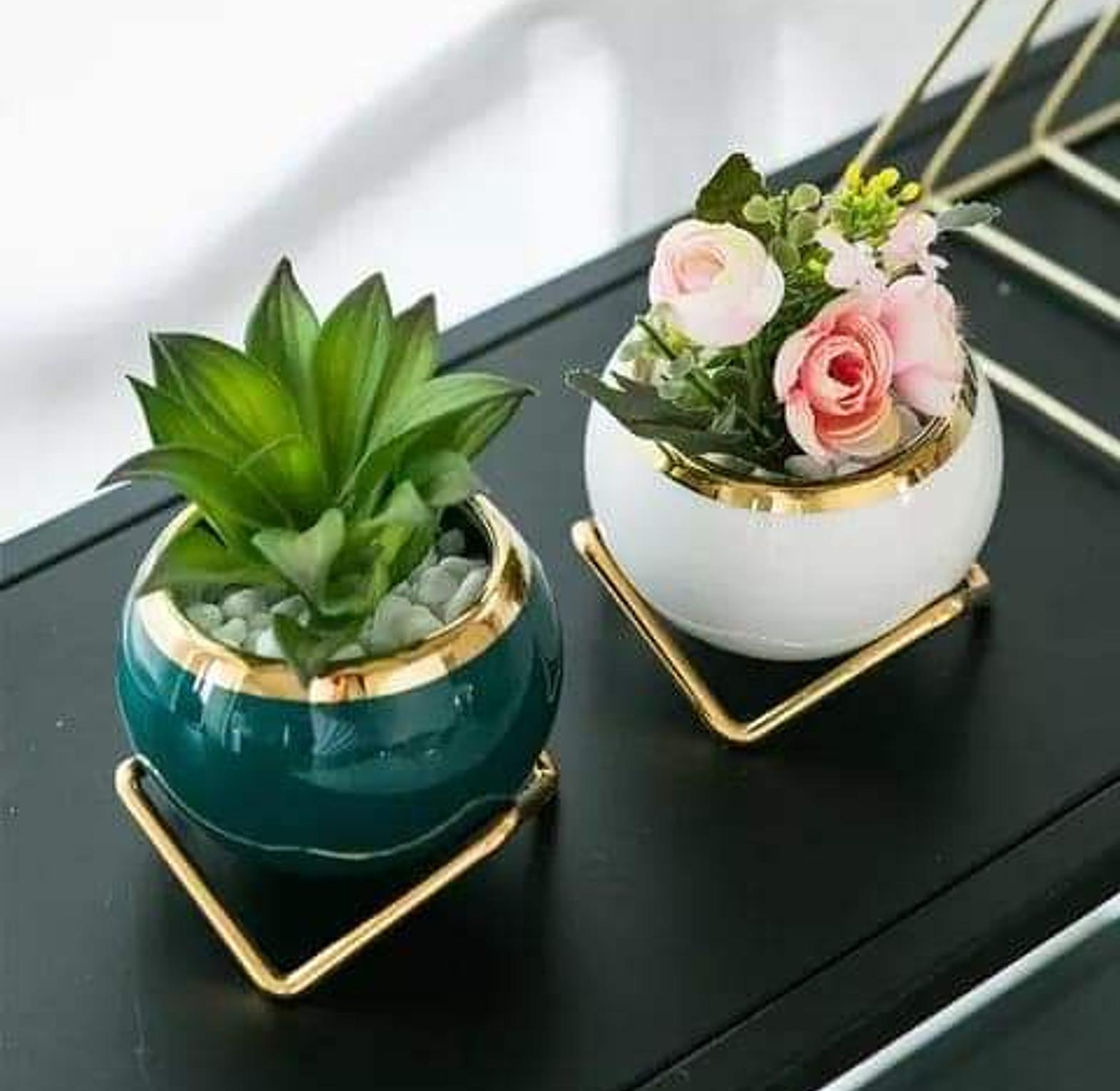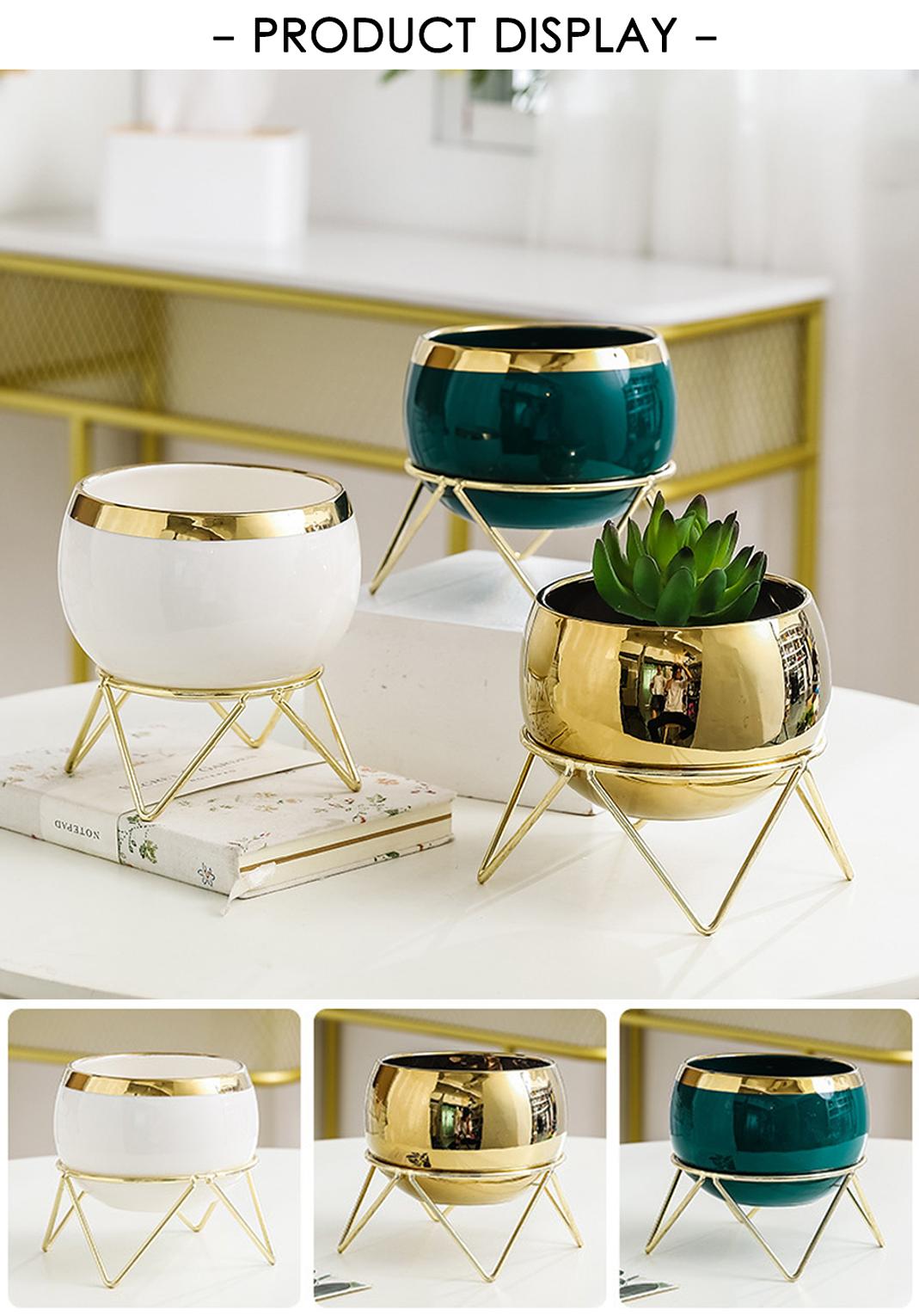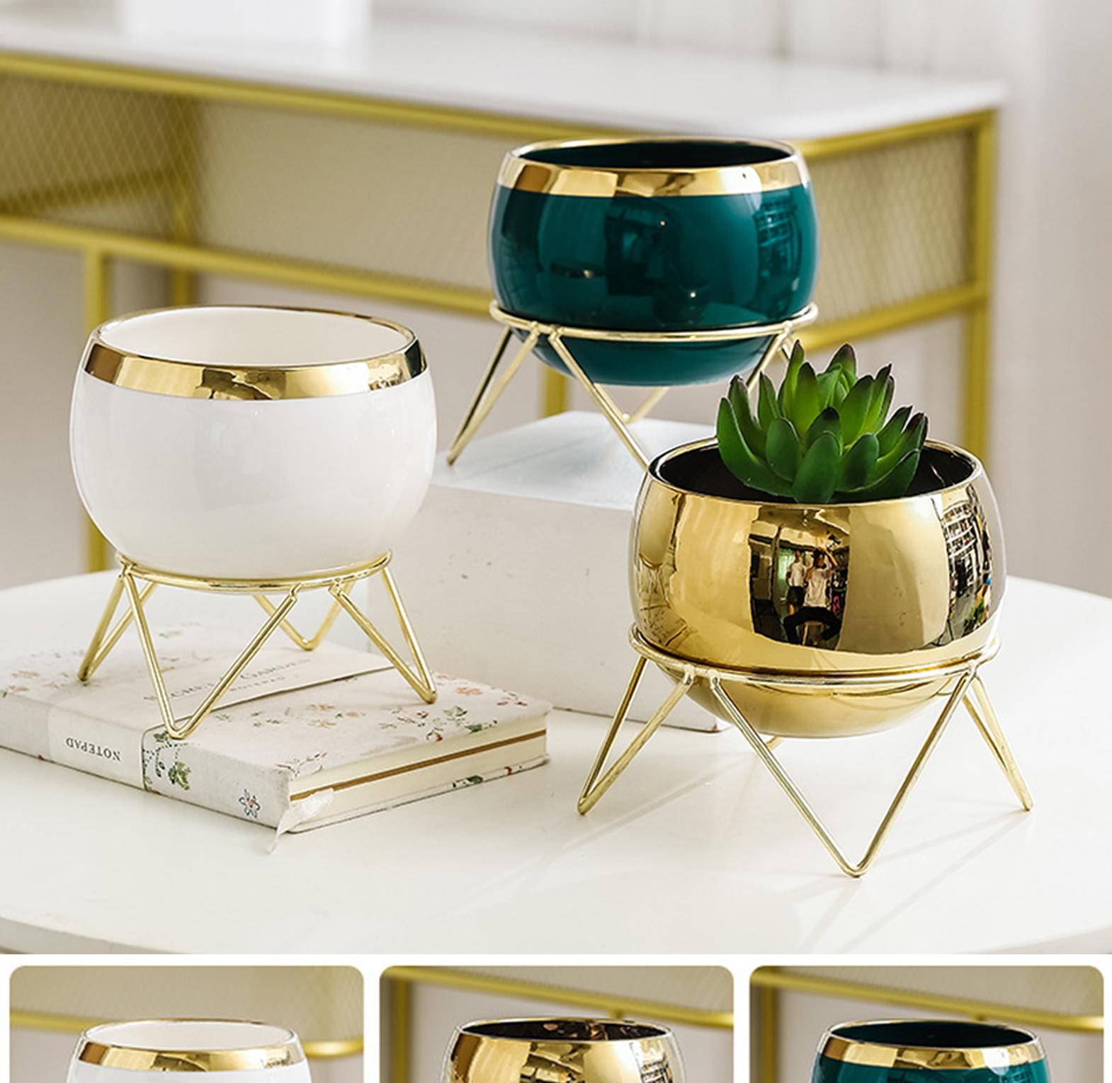 Nordic succulent plant flower pot comes with no flowers comes with gold stand. perfect for home and office decor. nordic succulent plant flower pot /decorative ceramic gold flower pot with no flowers.