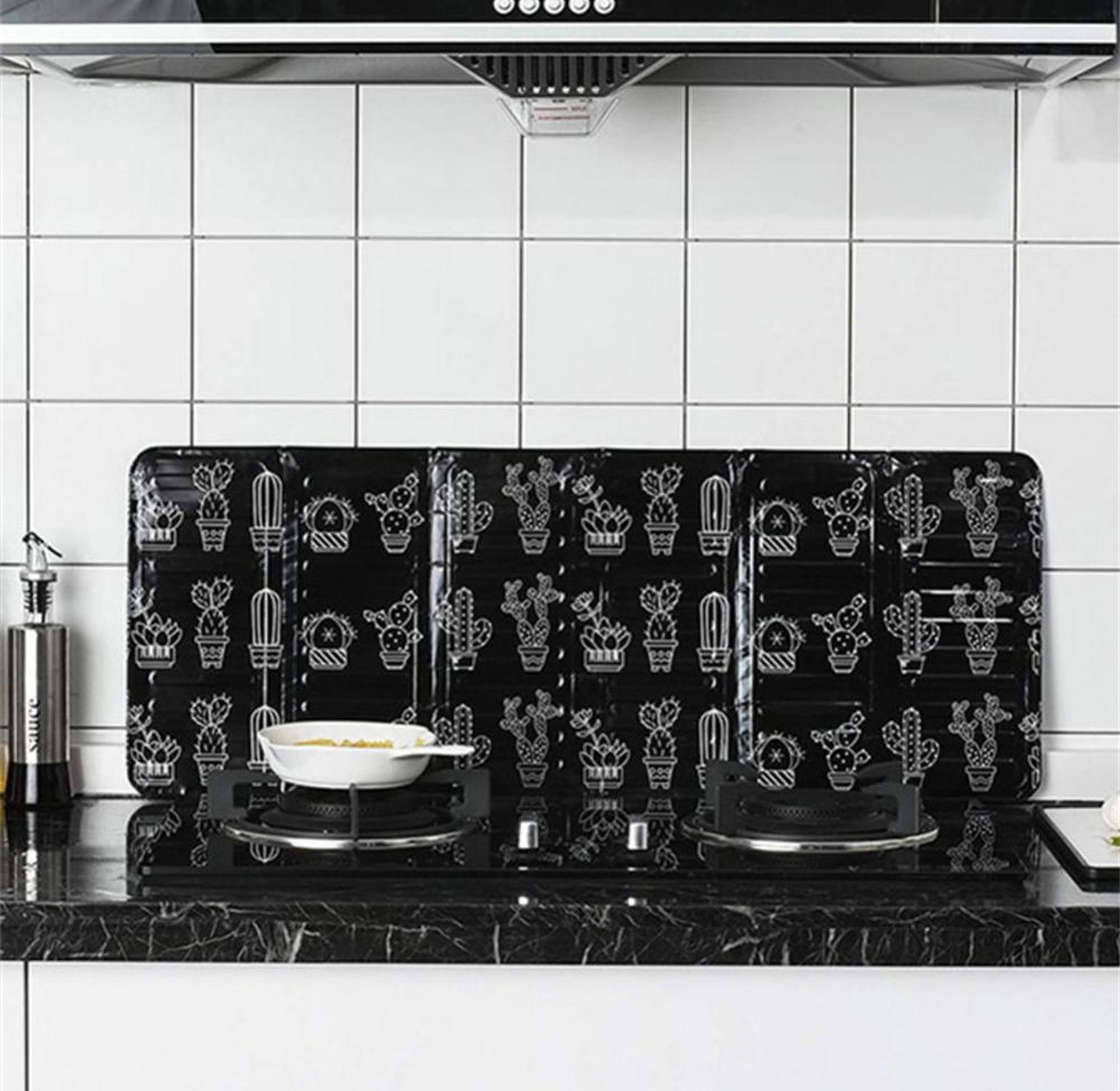Oil splash protector foldable aluminium foil, oil splash protection panel size: 32*84cm prevents oil from splashing on walls and other utensils. kitchen gadgets oil splatter screens plate gas stove splash proof baffle home grease trap cooking tools
