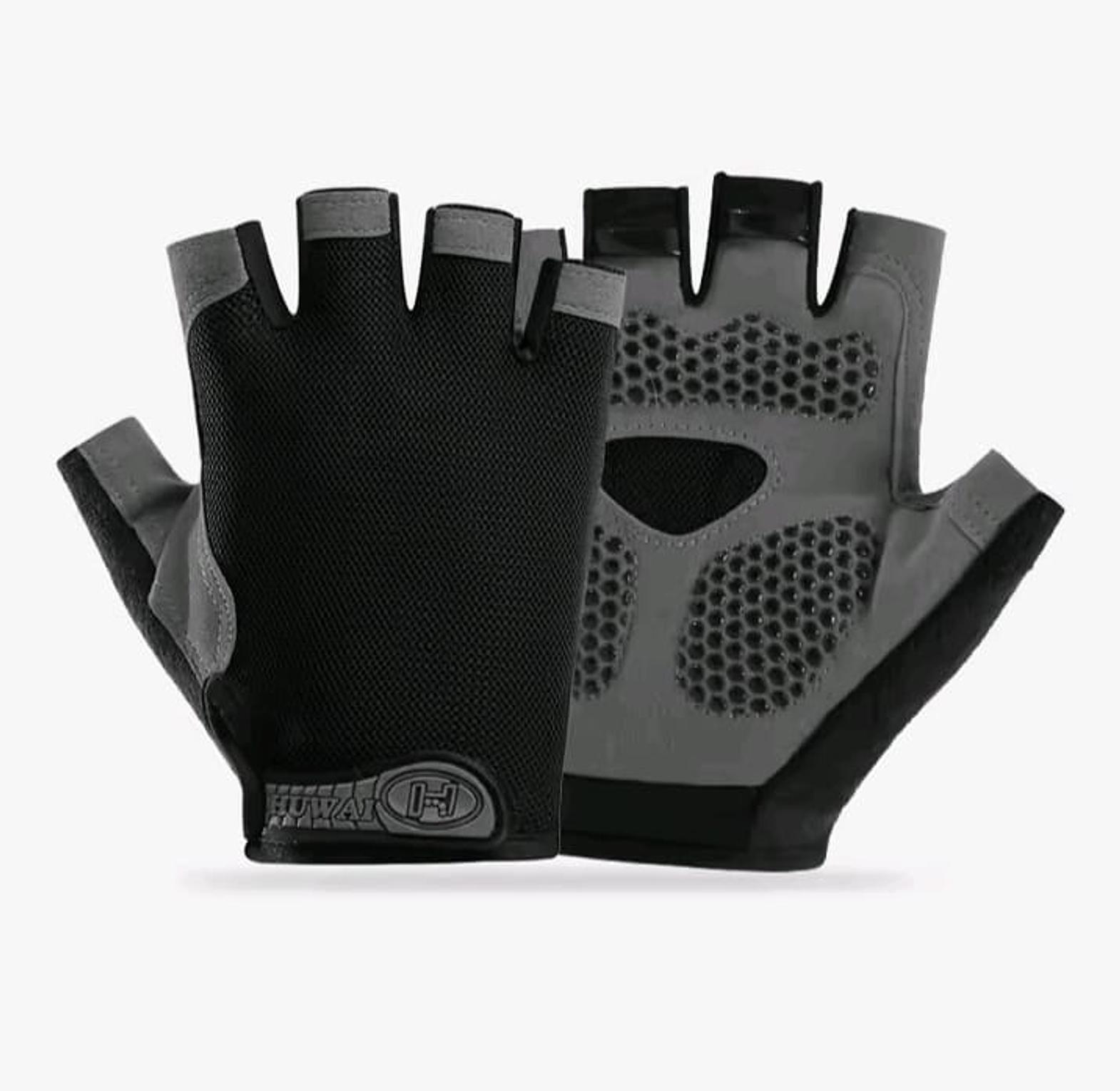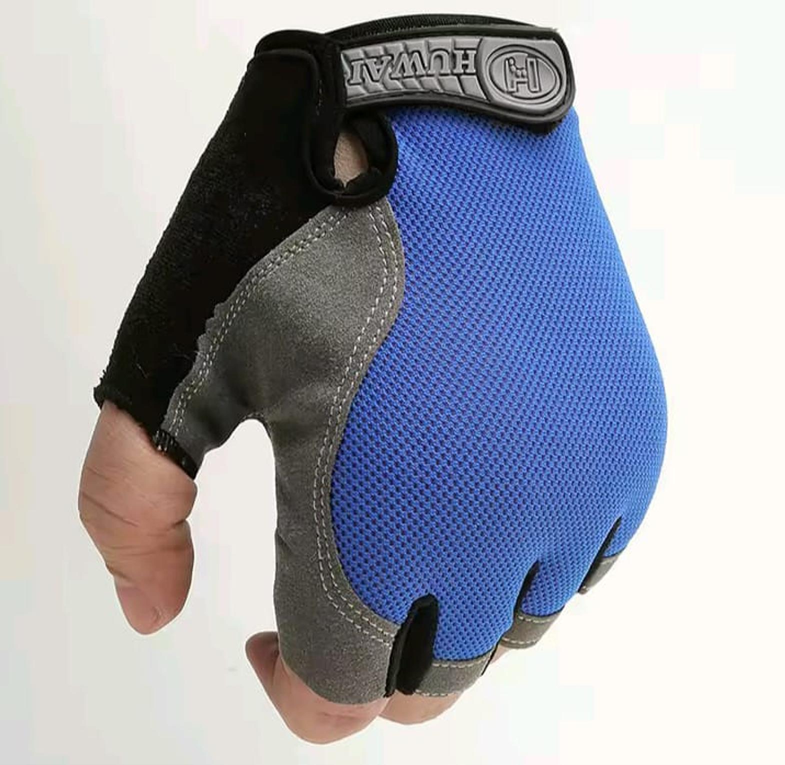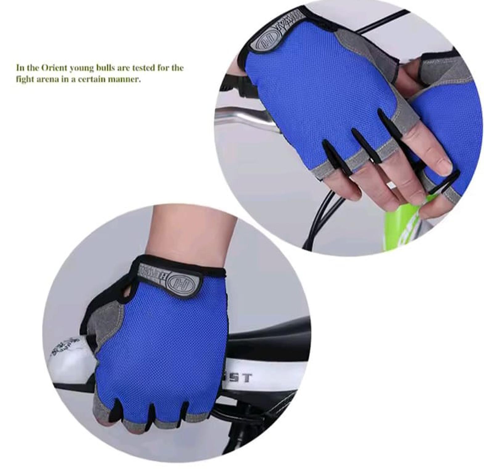 Pair of gym, cycling gloves gym anti slip half finger gloves breathable dumbbells gloves comes as a pair. breathable mesh fabric on top and airflow hole on palms to enhance sweating circulation. foam padding on the palm absorbs vibration and offers improved comfort on long trip. half-finger coverage for freedom movements and safe grip while riding. fastener tape closure to keep gloves in place fit for men and women. men women elastic shock exercise sports gloves for cycling bicycle.
