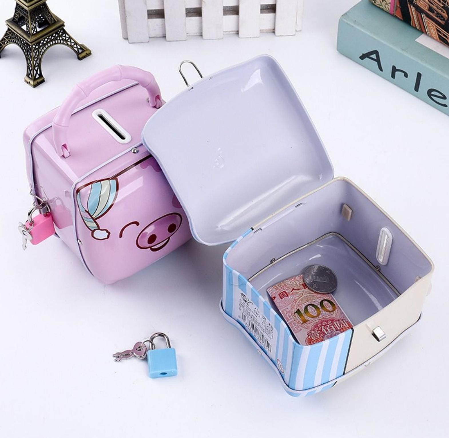 Piggy bank, kids money box with a lock this piggy bank is good for kids to save their money. good as a birthday present it is lockable and made of strong material. fits almost every type of standard coin, encourages child to saving with this coin saving pot. piggy bank animal metal piggy box money saving box child