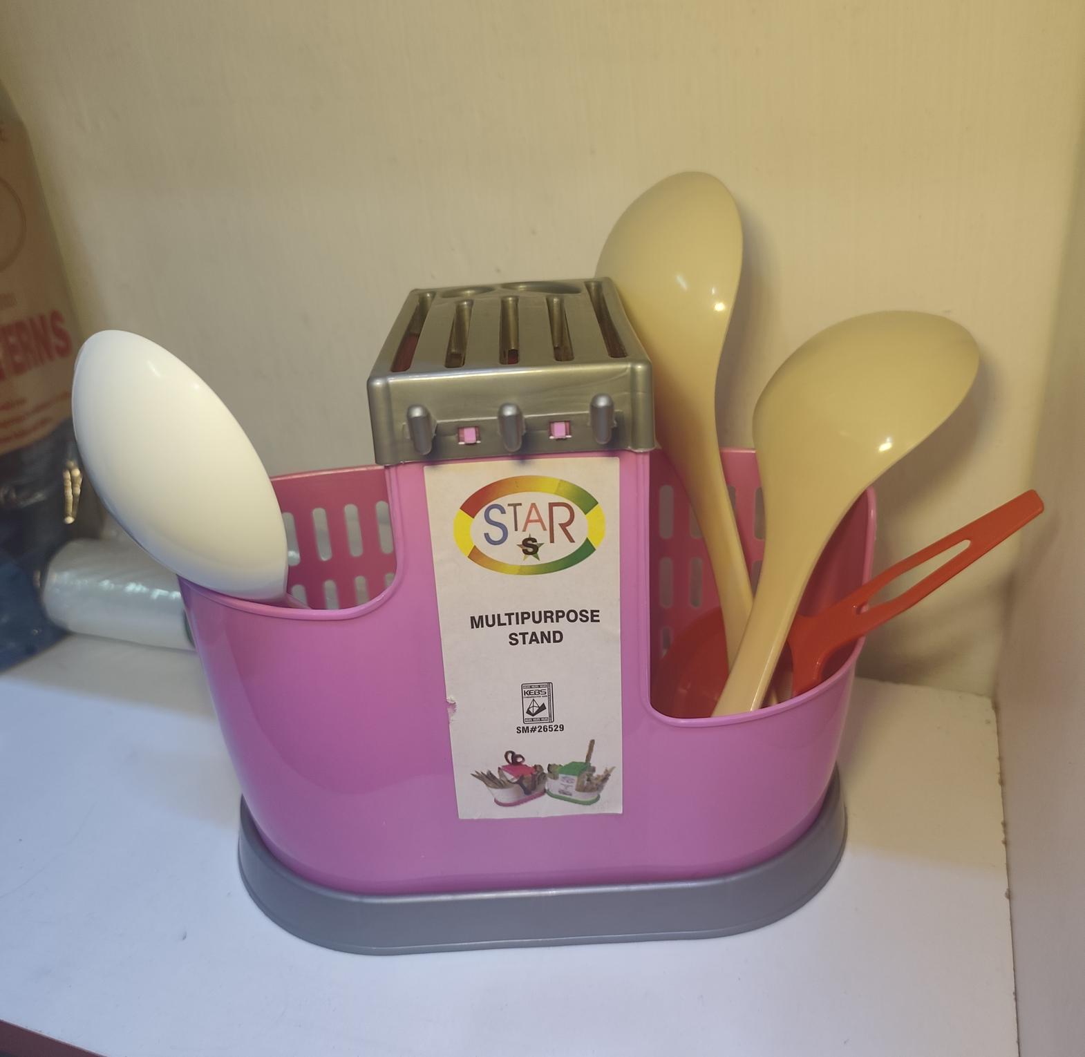Plastic cutlery holder or stand chopsticks, sponge and forks holder, strainer stand. made of high grade plastic,durable and easy to clean. 3 parts design makes it more convenient and practical. help to storge more items in limited kitchen. keep your kitchen clean and neat, easy cleaning. storage draining rack holder organizer drainer drying for spoon chopsticks fork.