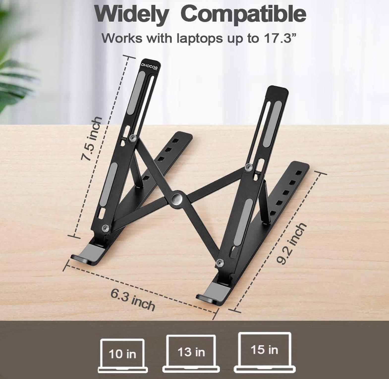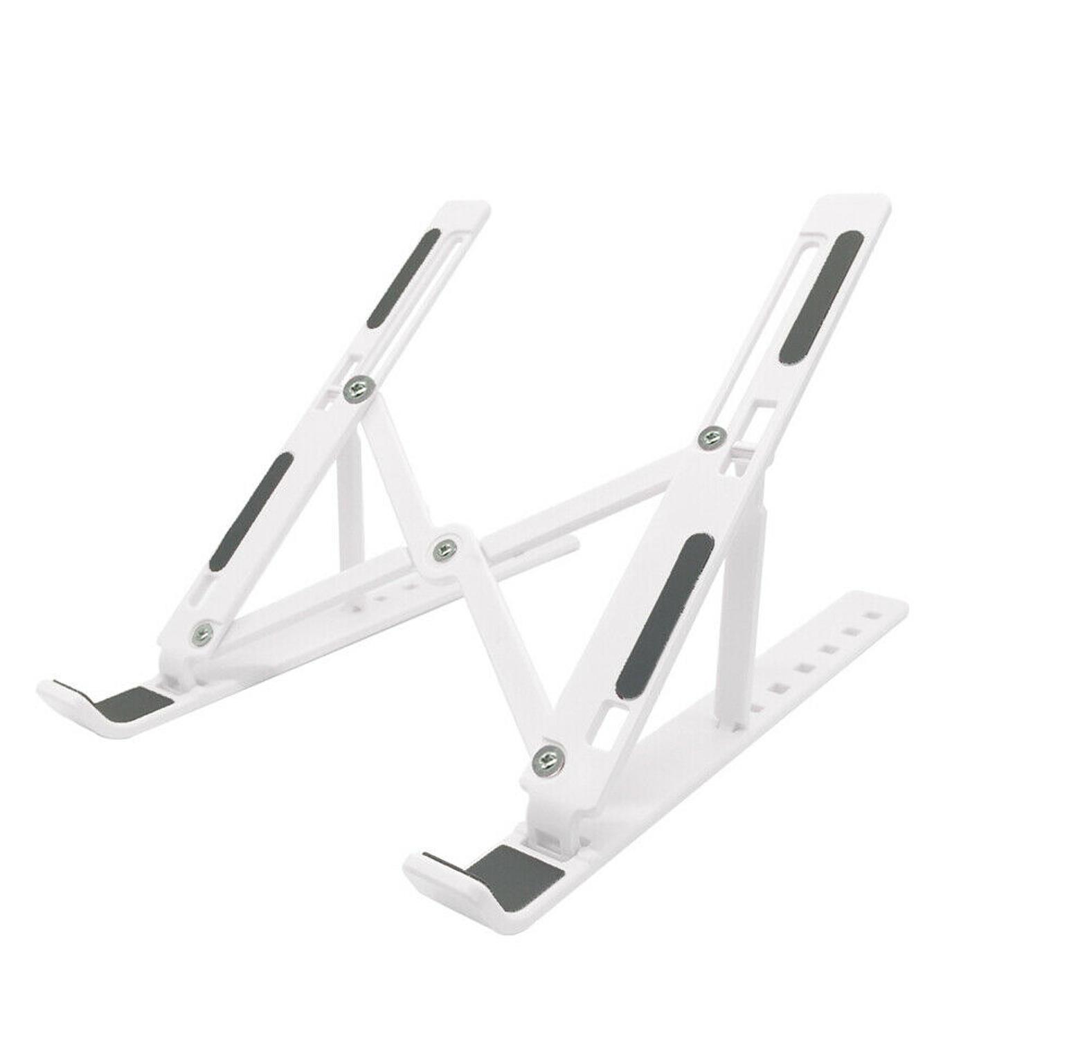 Laptop stand, lifting stand for laptop or computer used to lift and incline your laptop to your desired height. it is convenient and easy to carry due to its foldable condition. made of plastic material. plastic laptop stand multi-angle adjustable design for laptop up to 13", tablets and good for reading books plus can work as phone stand.