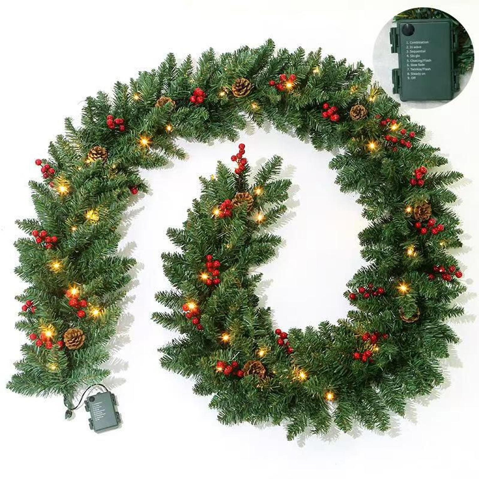 Pre-Lit Christmas Garland, Berries, Pinecones