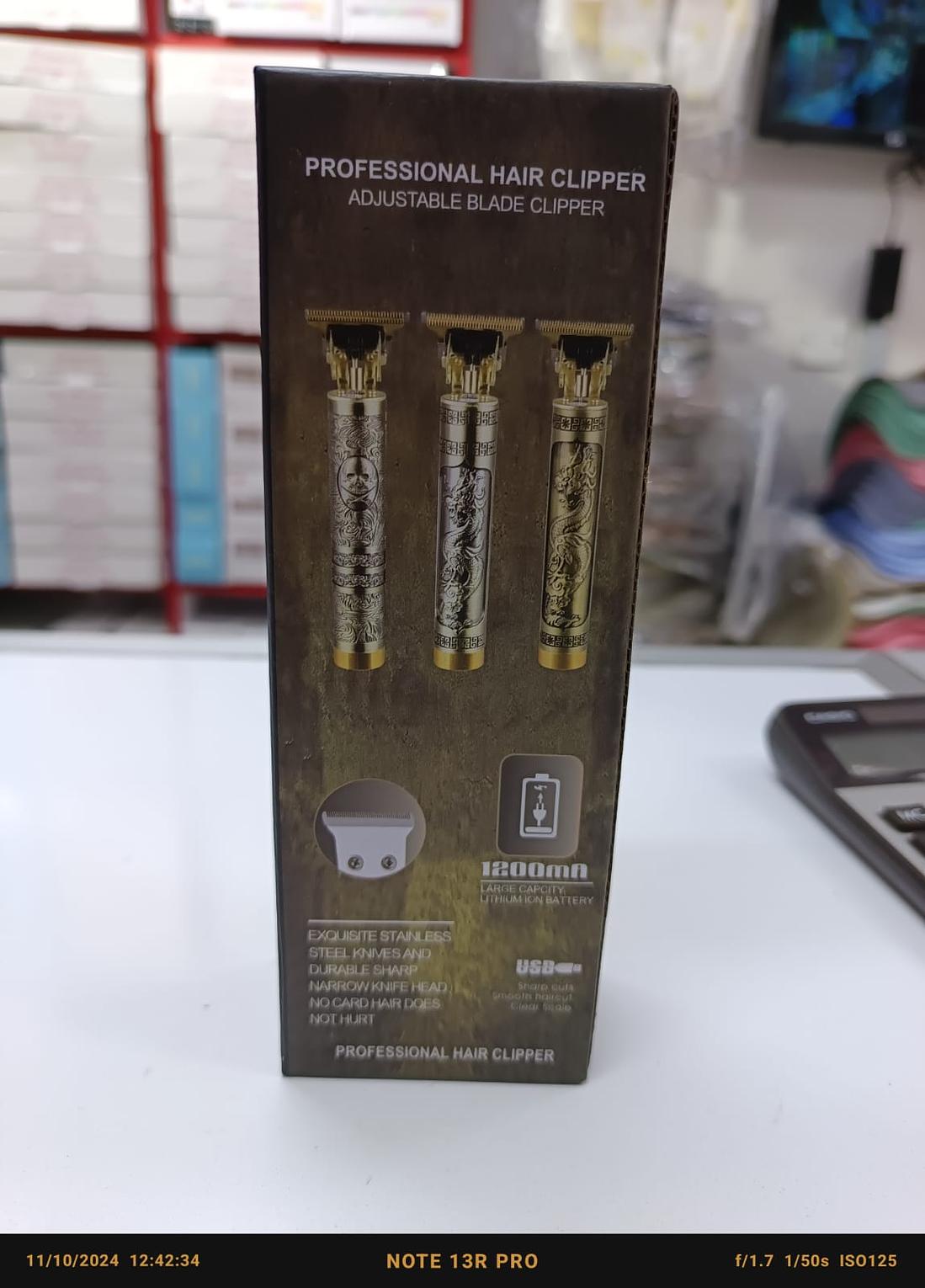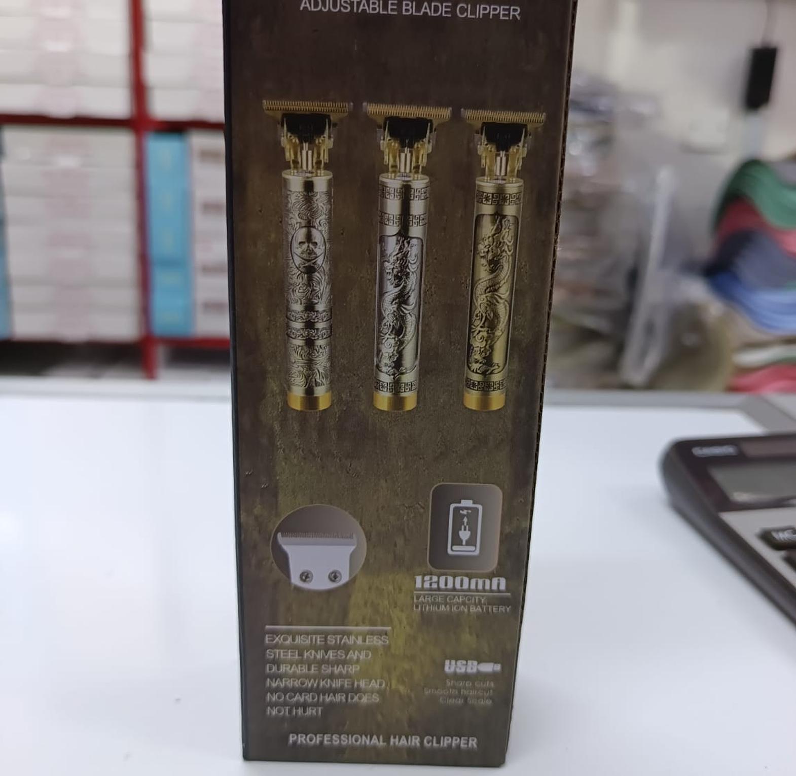 Golden dragon electric hair trimmer - professional cordless beard & hair clipper professional hair clipper input voltage 110-240v rated power 5w charging time 3hrs using time 120 minutes achieve salon-quality grooming at home with the golden dragon hair trimmer, designed for precision and durability. featuring a sleek, engraved dragon design, this trimmer combines style and functionality for all your hair grooming needs. what's included: 1 golden dragon hair trimmer 4 guide combs (1.5mm, 2mm, 3mm, 4mm) 1 usb charging cable 1 cleaning brush hair trimmer, cordless beard clipper, electric hair clipper, professional hair trimmer, barber tools, usb rechargeable trimmer, golden dragon clipper, hair cutting machine, low-noise trimmer, travel-friendly trimmer, precision hair clipper, hair grooming kit.