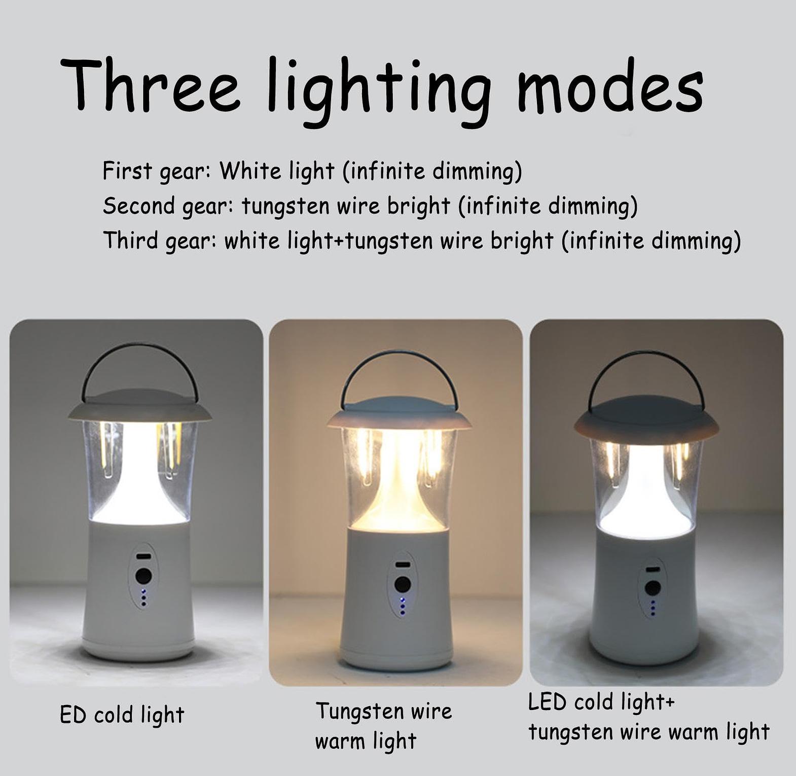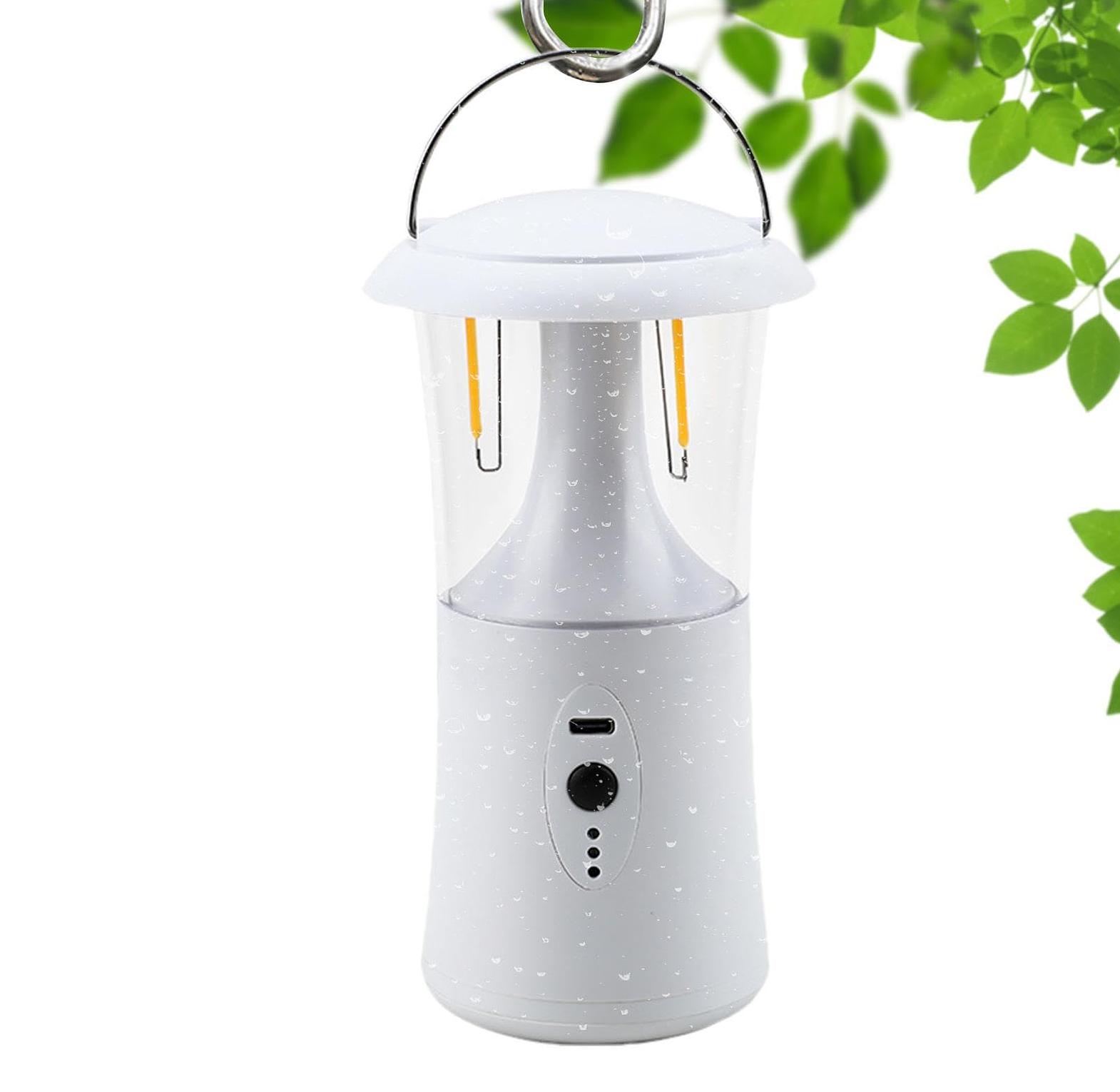 360 degrees rechargeable camping lantern and backup emergency lamp hp2403 3600 rechargeable camping lantern with 3 lighting modes this product is equipped with a carrying ring, which can be hung, hand-held and placed on a flat surface, which can meet the outdoor use scenarios. the bulb of this product is a combination of tungsten and led bulb, lumen 300, high brightness. rechargeable camping lantern outdoor night light portable illumination waterproof lamp for tent lighting or handheld.