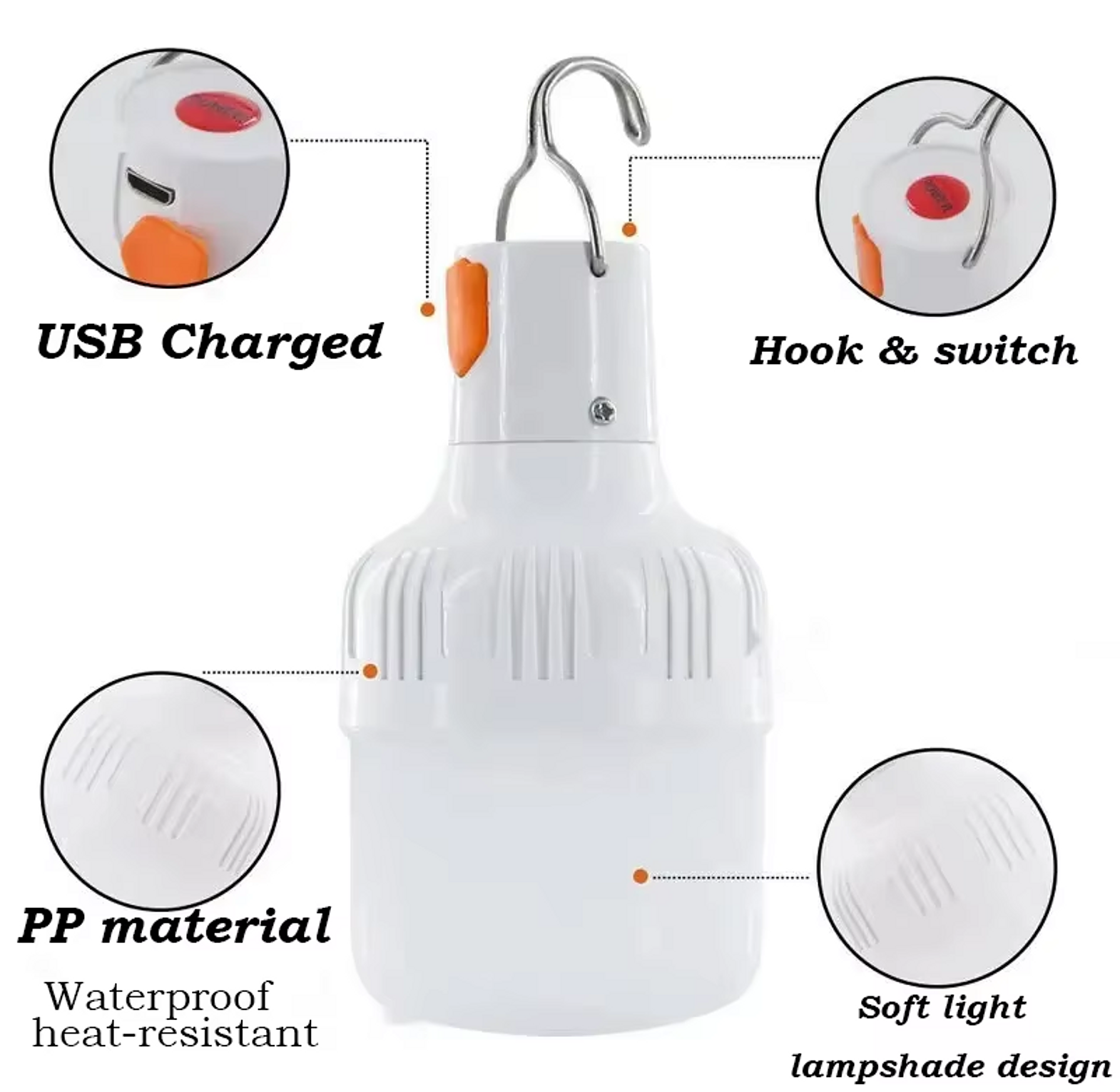 Rechargeable emergency backup lamp, outdoor light brand: dp. 20w also available in: 30w - 700 40w - 800 rechargeable battery :no need to constantly replace batteries. simply recharge the light using a usb cable. led bulbs:energy-efficient and long-lasting. provides bright and clear lighting during emergencies. mobile bulb :can be easily carried around. ideal for outdoor activities or emergency situations. power outage emergency light :provides reliable lighting during power outages. keep your family safe and secure during emergencies. outdoor lighting led bulb usb charging portable hook three-level brightness durable endurance power outage emergency bulb.