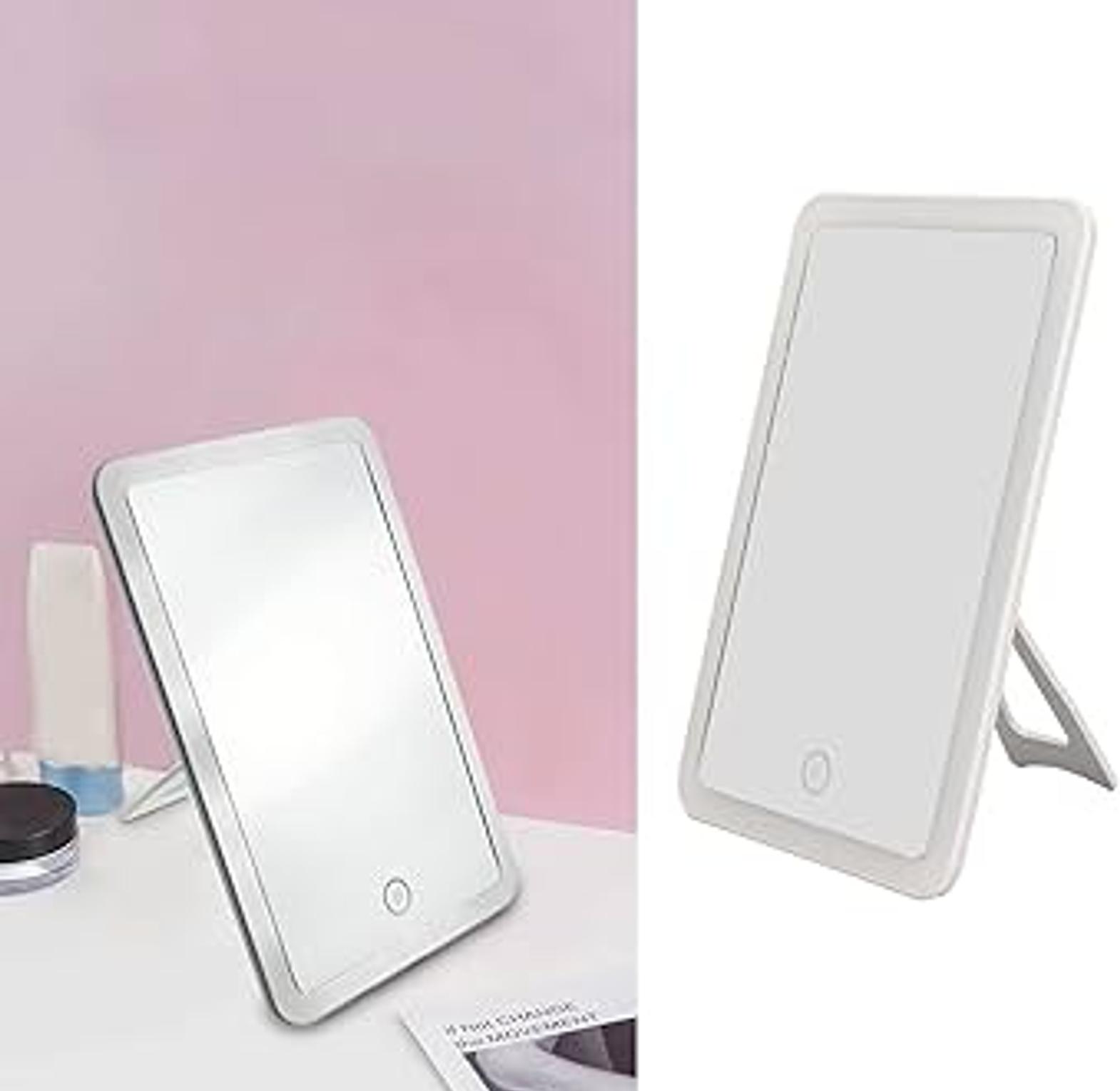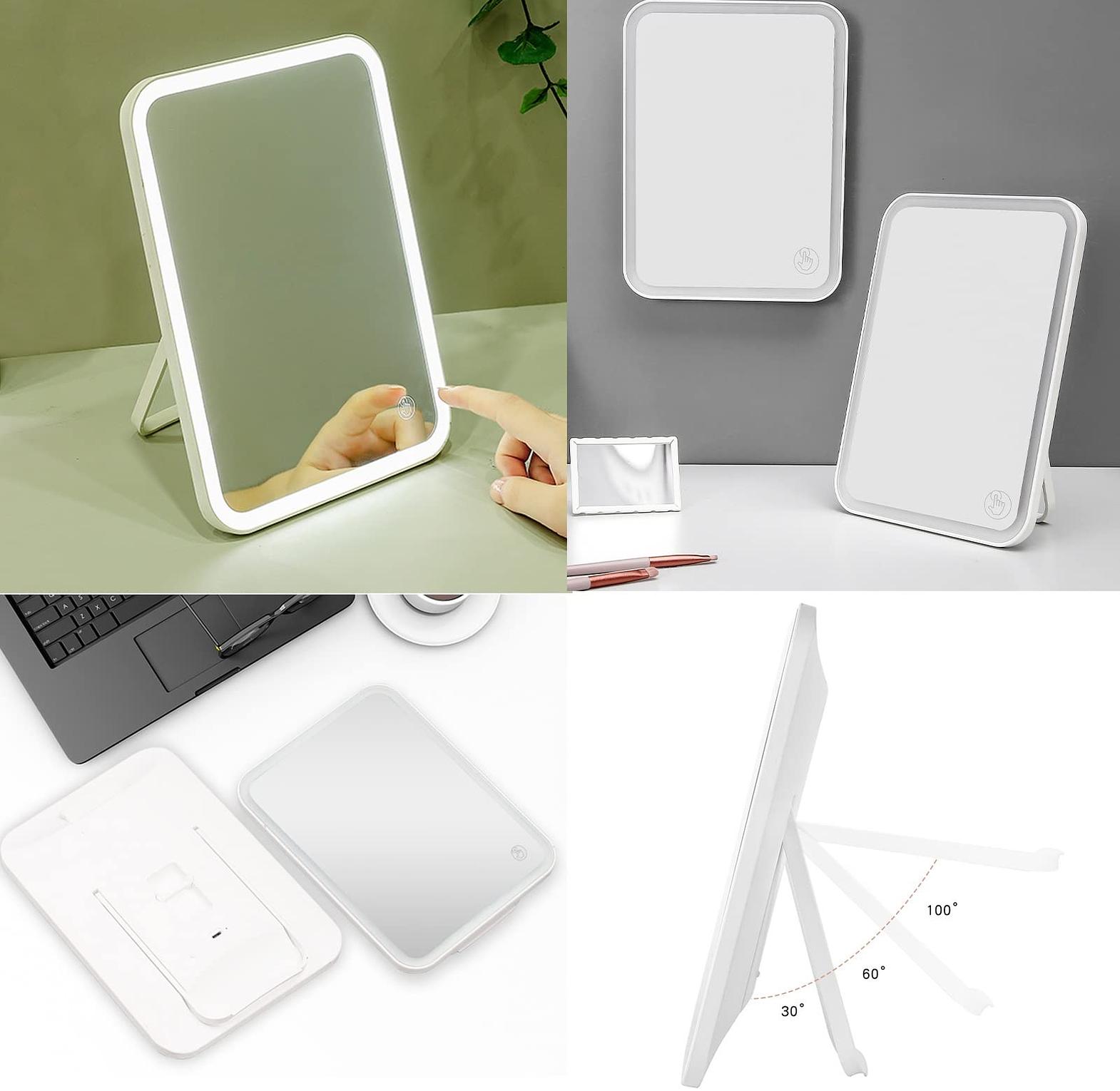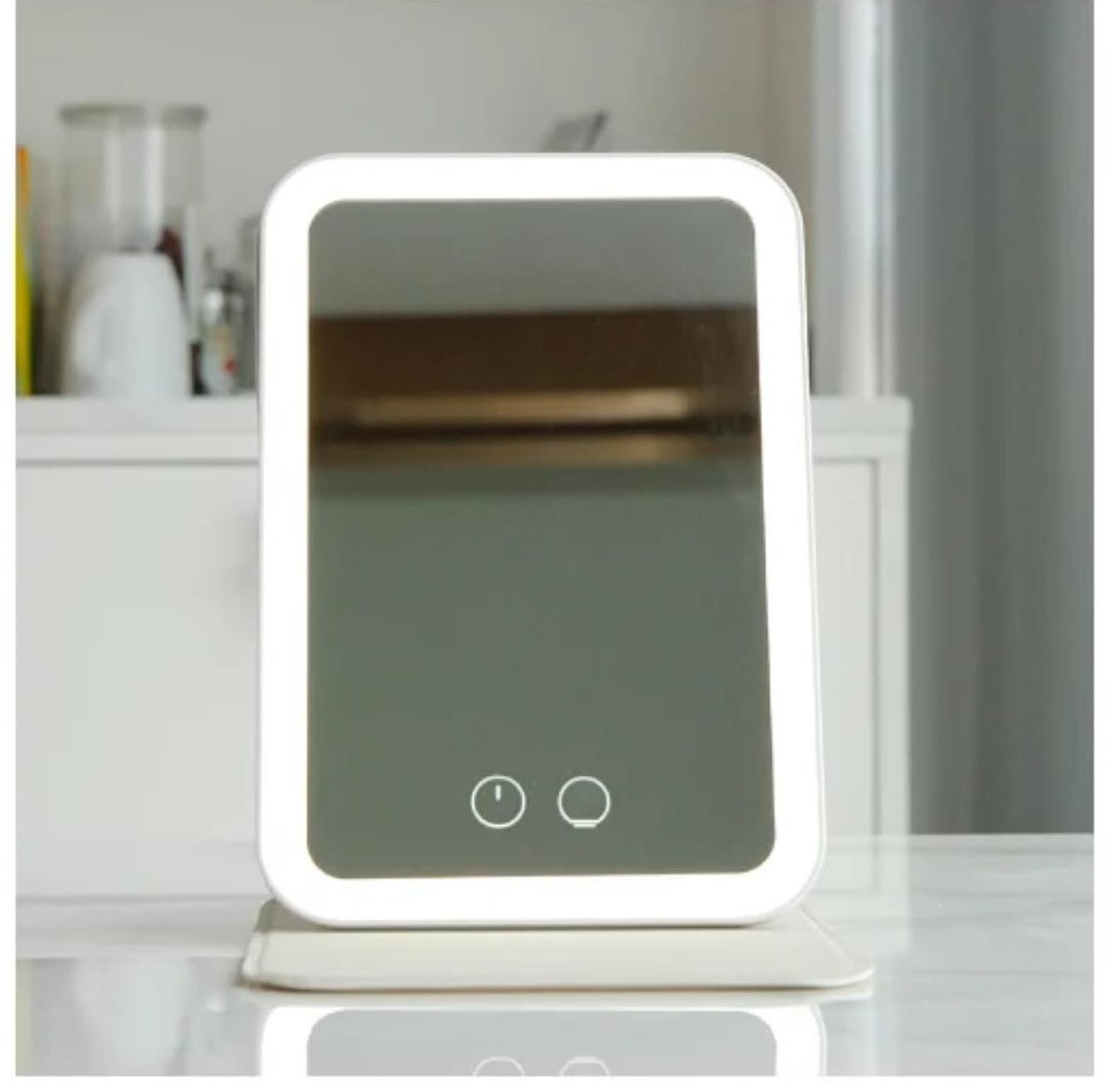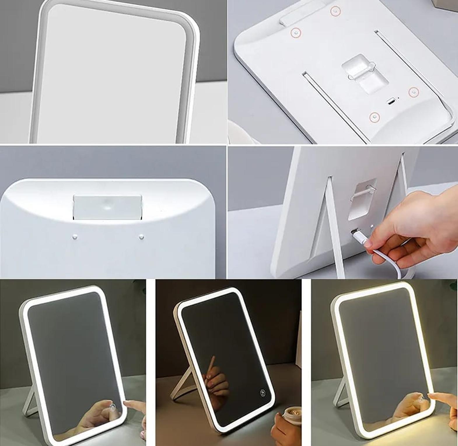 Rechargeable led makeup mirror, dimmable light, portable rechargeable travel make up mirror. no frost three-color stepless dimming, warm light, natural light, cold light. hard anti scratch material 2000mah battery upgrade your beauty routine with this versatile led makeup mirror. featuring a sleek, minimalist design, it provides perfect, natural lighting with three adjustable settings to suit any environment, day or night. the rechargeable, cordless design and 90-degree rotation make it perfect for use at home, for travel, or on your study desk. its compact size and convenient storage base make it a must-have accessory for every modern kenyan woman. makeup mirror with light, rechargeable makeup mirror, led vanity mirror, portable makeup mirror, lighted cosmetic mirror, touch screen mirror, beauty mirror kenya.
