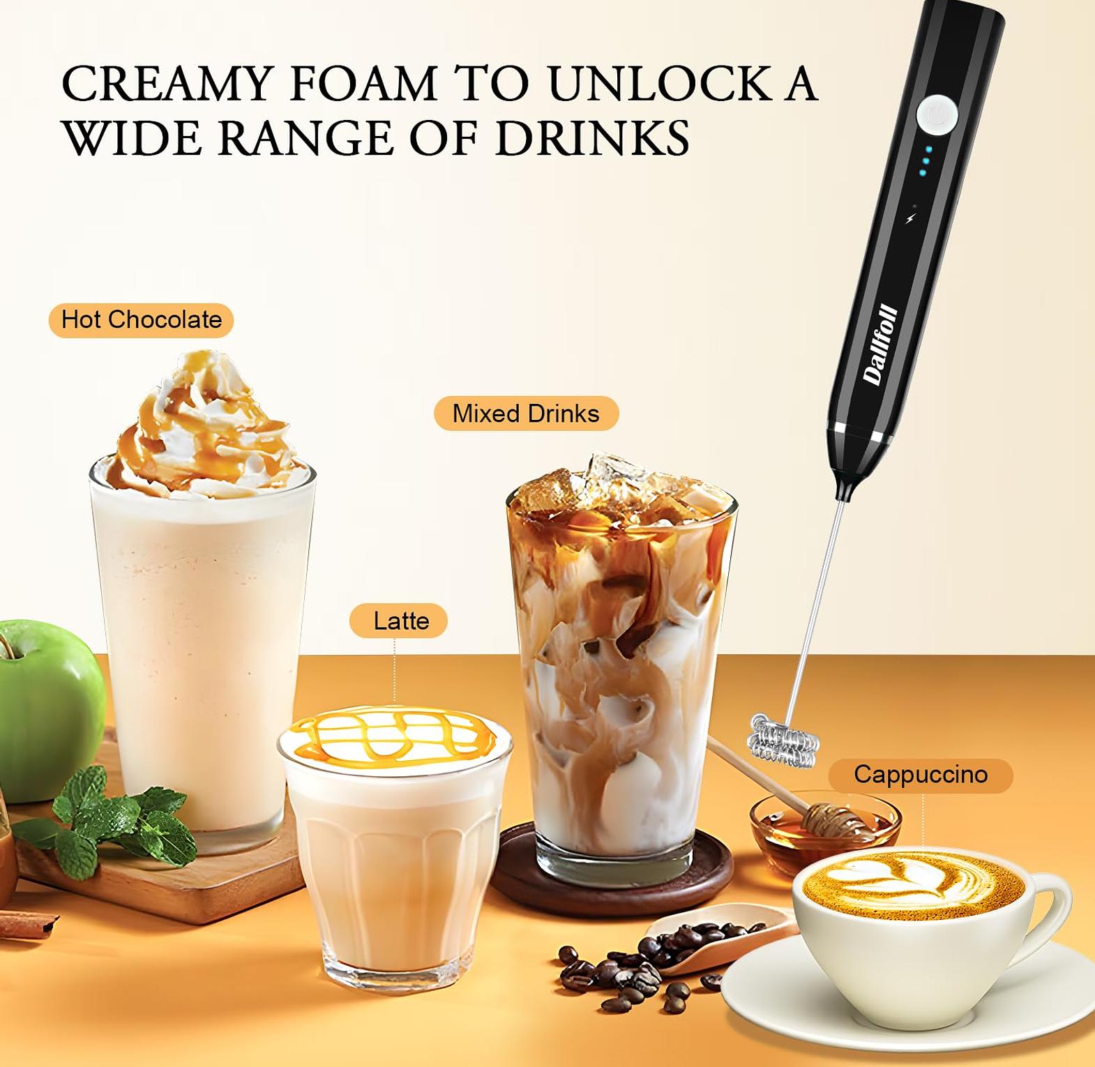 Rechargeable milk frother and mixer, egg beater, whisk multifunctional- small body with big energy, no extra tools needed, this electric mixer helps you better mix nutritious protein powders, fruit and vegetable powders to replenish nutrition for the day. also meet various life's mixing needs: whisking eggs to make delicious omelets, stirring whipped cream, and making mixing drinks. milk frother handheld for use at home, kitchen, pantry, and outdoor camping. also a nice household necessity gift. rechargeable high speed coffee milk foamer wireless whisk handheld egg beater cappuccino ground foam blender.