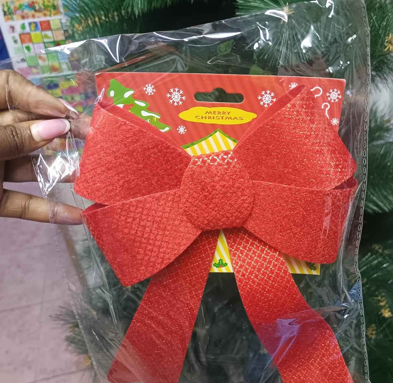 Christmas bow Kenya, red Christmas decoration, large felt bow for tree, holiday gift wrap bow, affordable Christmas decor Nairobi, festive bow Mombasa, reusable Christmas ribbon bow, merry Christmas tree topper Kenya