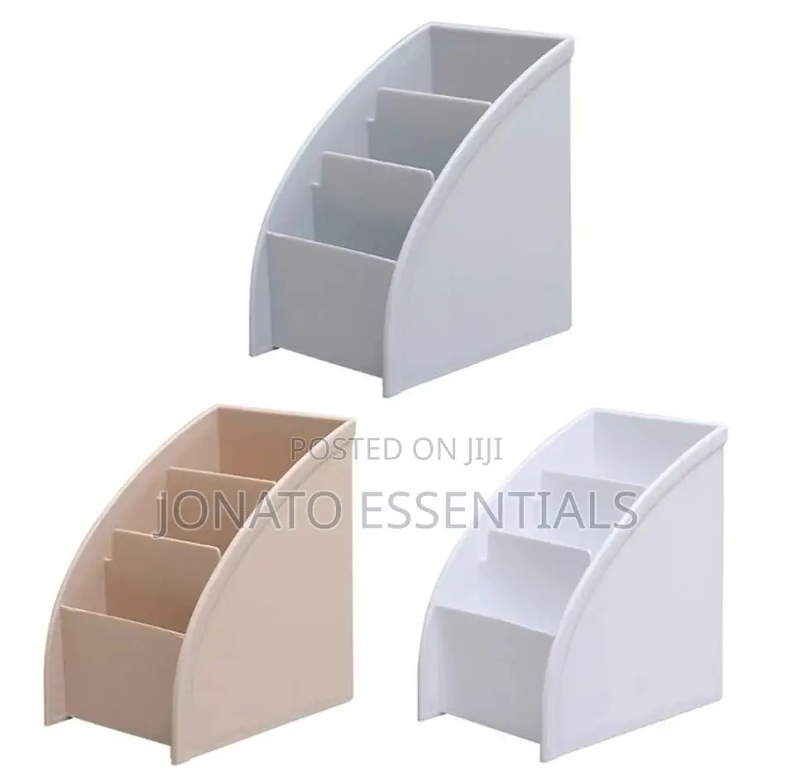 Remote control holder and organizer plastic tv remote control storage holder this storage box helps you organize your lifestyle items neatly and easily, making your home look cleaner. 3 grid design, perfect storage remote control, table debris, non-slip stability. the storage box is stepped on and you can easily insert or remove various remote controls or other items. the remote control organizer is simple yet elegant, blending well with your other home accessories. multifunctional 3 grid remote control box cosmetics desktop storage case stand holder office stationery phone organizer.