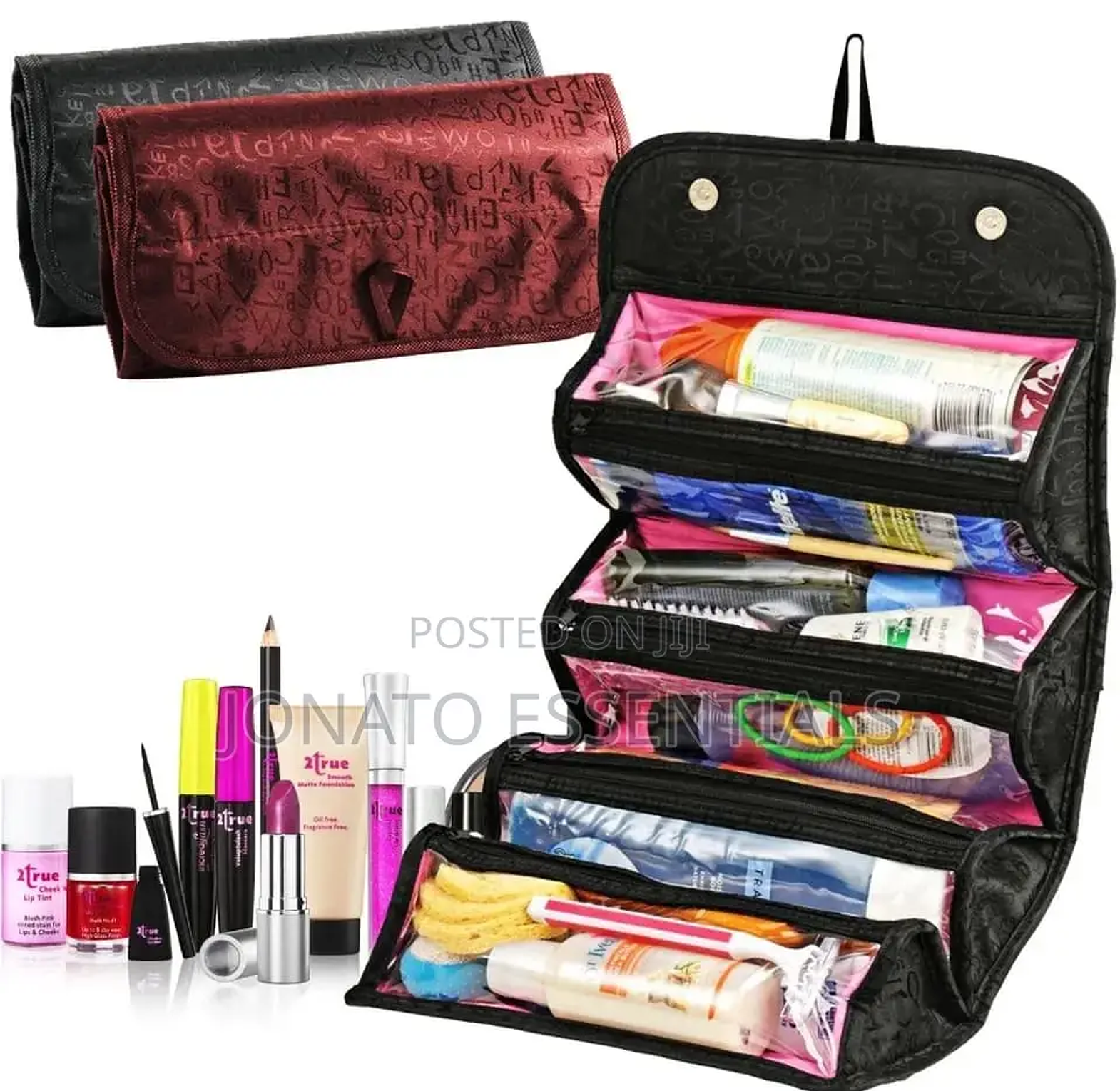 roll-n-go cosmetics organiser makeup bag hanging toiletries pockets compartment travel kit roll-n-go jewelry bags.