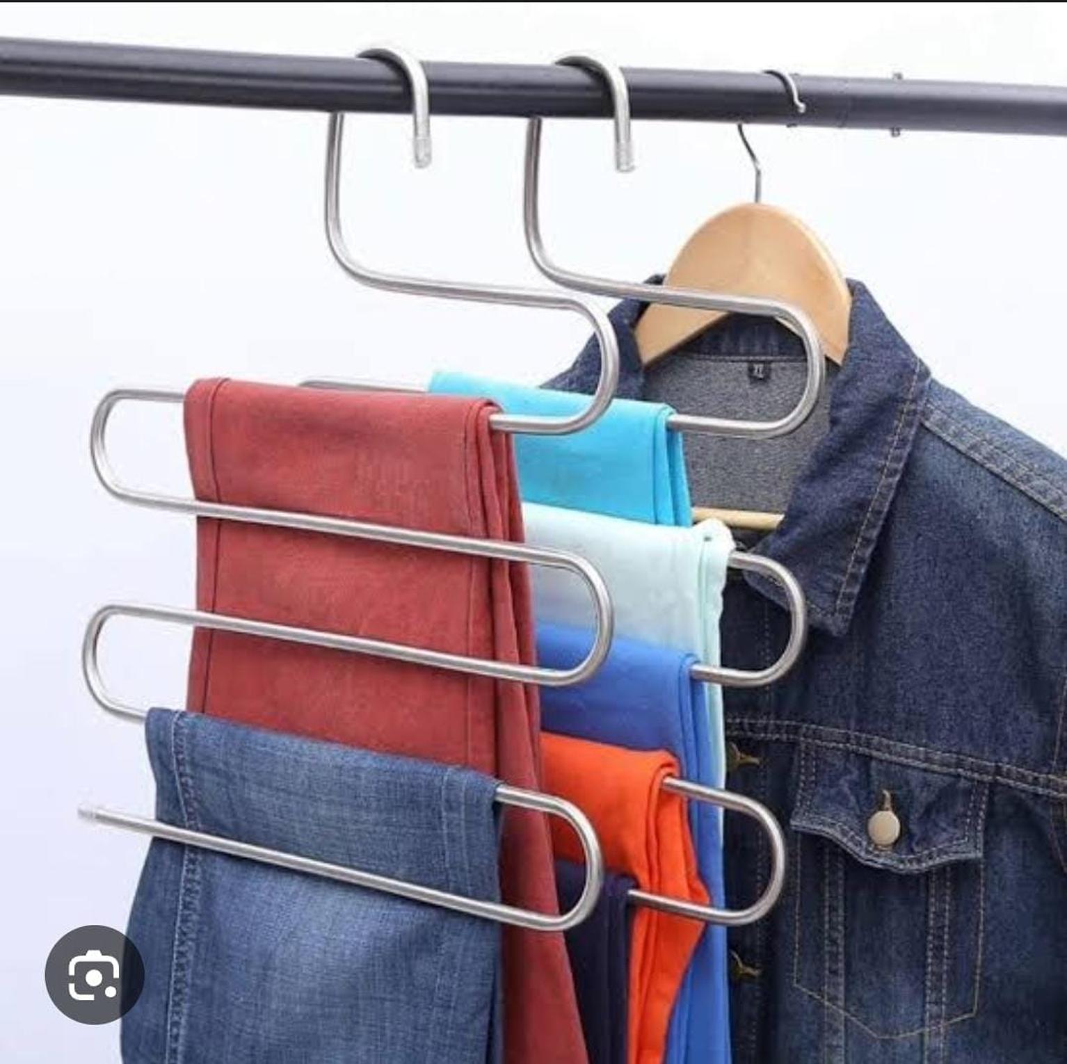 S shaped 5 layer trouser hanger, cloth rack there are more and more clothes, especially in winter. scarves and leggings are piled up all over the kitchen, making it difficult to put them down? the clothes and pants look wrinkled when taken out, so they can't be worn? 5 layers stainless steel clothes hangers s shape pants storage hangers clothes storage rack multilayer storage cloth hanger.