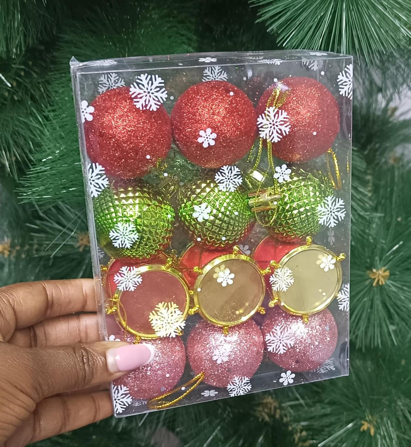 Brighten your Kenyan Christmas with this stunning set of 12 glittery tree ornaments in festive red, green, gold, and pink hues, perfect for creating a sparkling holiday vibe at home. Each ball features shimmering snowflake accents and easy-hook tops for effortless hanging on your Christmas tree or mantel. Ideal for Nairobi families seeking affordable yet elegant decorations to make December gatherings merry and memorable. Shop now for fast delivery across Kenya and add magic to your festive season with these durable, vibrant ornaments.