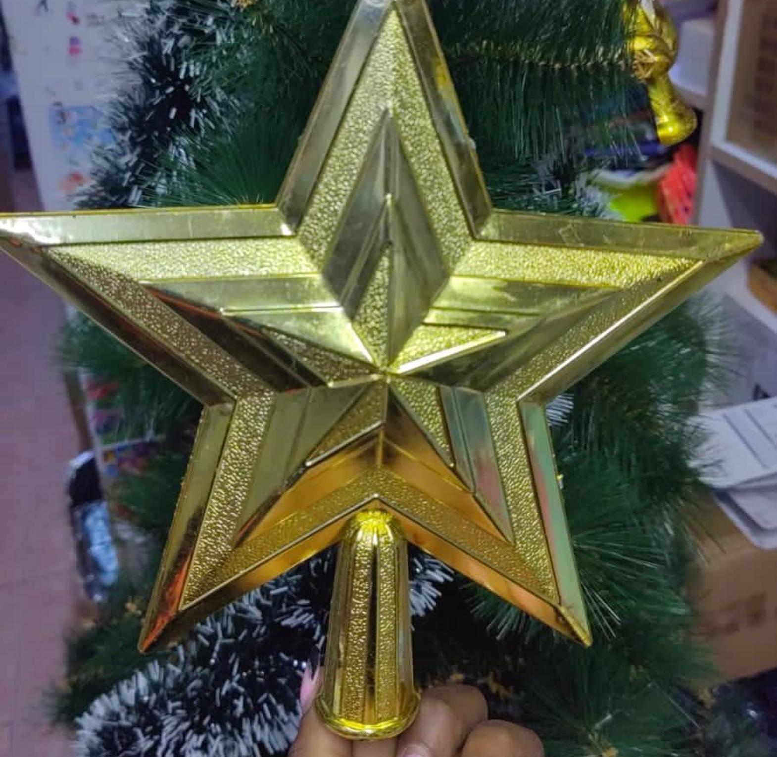 Christmas tree topper Kenya, gold star tree topper, shiny Christmas decor Nairobi, affordable holiday tree topper, festive gold star ornament, Kenyan Christmas decorations, easy install tree topper, sparkling gold Christmas star.