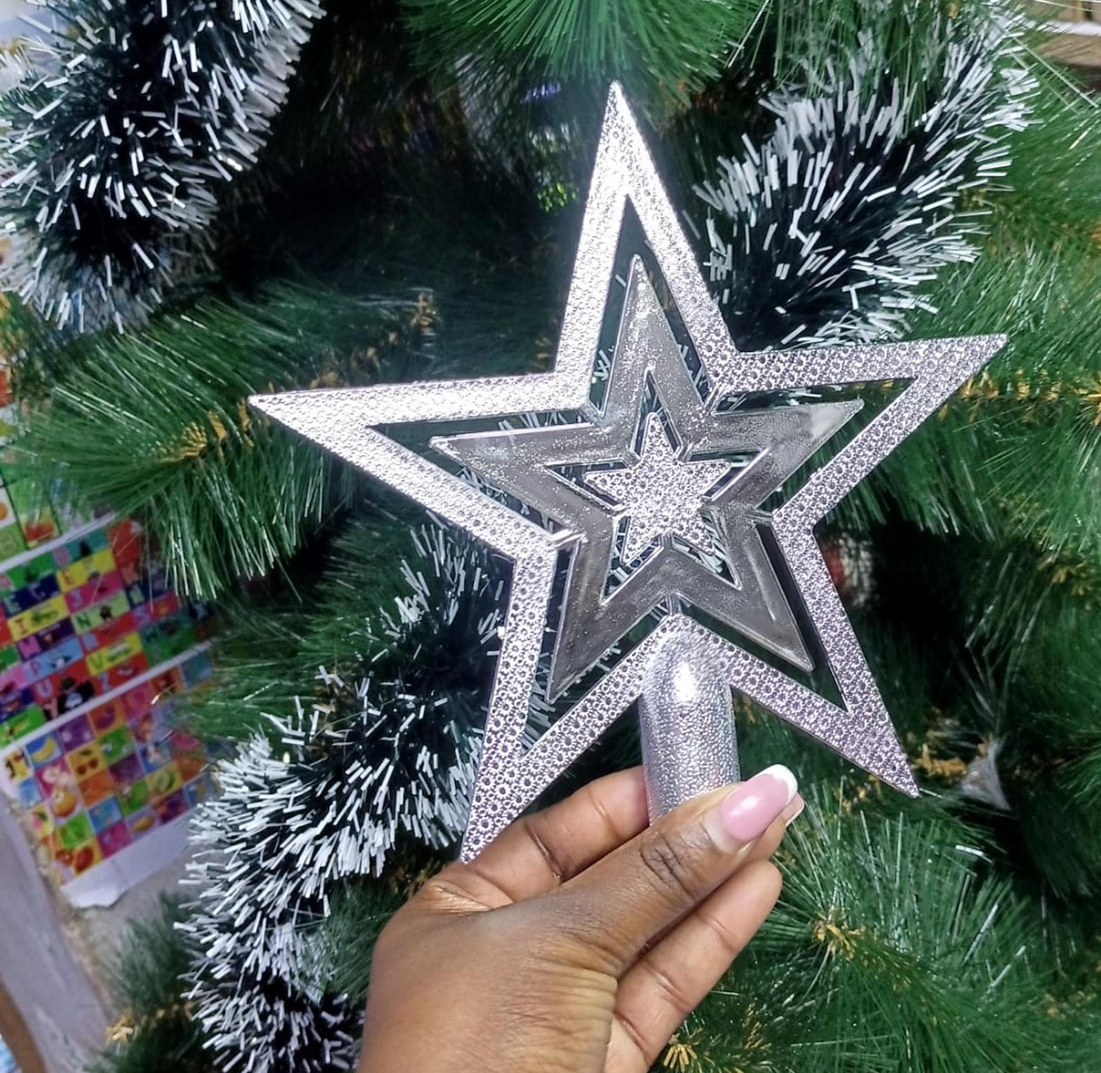 Christmas tree topper Kenya, silver star ornament buy, festive tree decor Nairobi, holiday star topper Mombasa, affordable Christmas decor Jumia, shiny metallic tree star, easy attach Christmas topper, Kenyan holiday ornaments, sparkling tree finial, Christmas decor online Kenya