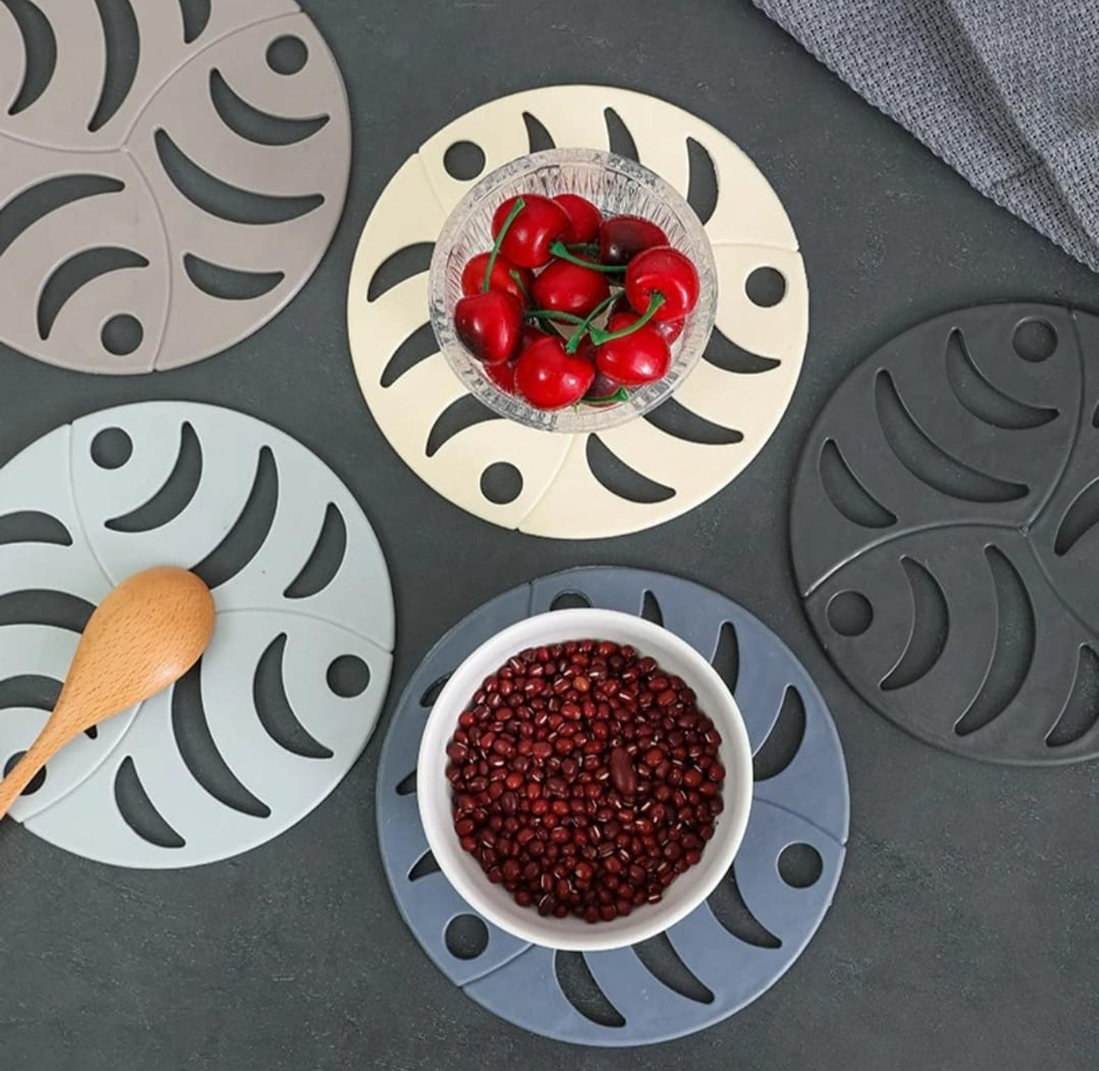 Silicone coaster or placemat chic nordic silicone coaster mats heat insulated bowl placemats for home decor application: the round hot pad is suitable for restaurant, home, hotel and more design: this rubber trivet mat has a hollow and fish design, which is very cute and creative. it can be used not only as a placemat, but also as a coaster hanging hole: this trivet mat with hanging hole design is easy to hang, very practical 16cm round pot pad heat resistant hollow holder non-slip rubber soup bowl mat tableware placemat drink coaster kitchen supplies.