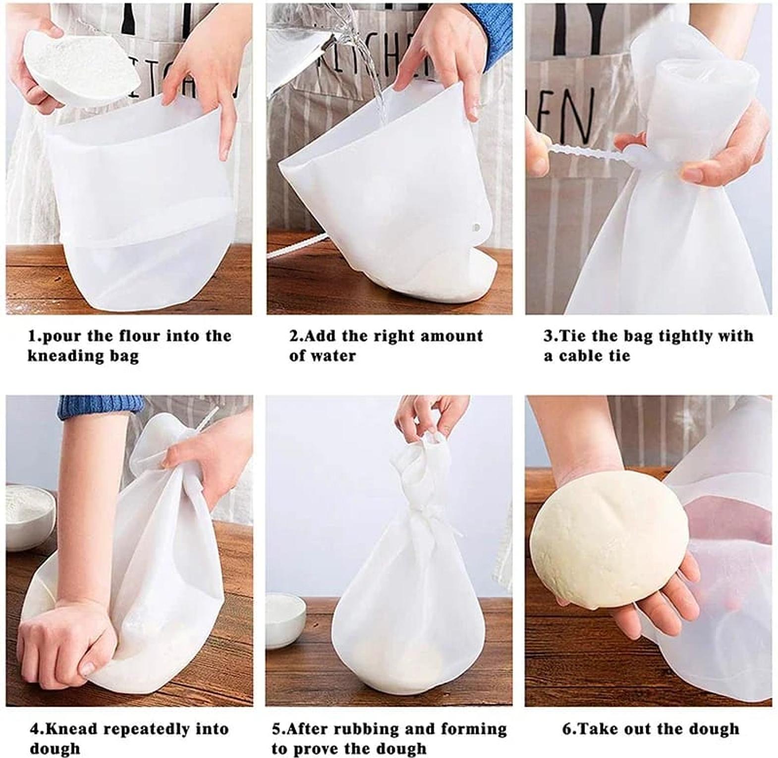 Silicone dough kneading bag silicone nonstick dough kneading bag. food-grade silicone. can be reused. 1.more fast and convenient to knead the dough for diy delicious foods. 2.made of high quality food grade silicone, in accordance with fda. 3.good non-stick effect, not easy to stick on the food. 4.also can be used to marinate meat, vegetables and sealed fresh-keeping bag to storage food and meat. 5.it is so easy to clean.stonego application : kneading flour, fermenting flour, preservation. food grade silicone dough kneading bag silicone kneading dough bag flour mixer bag versatile dough for bread pastry pizza.