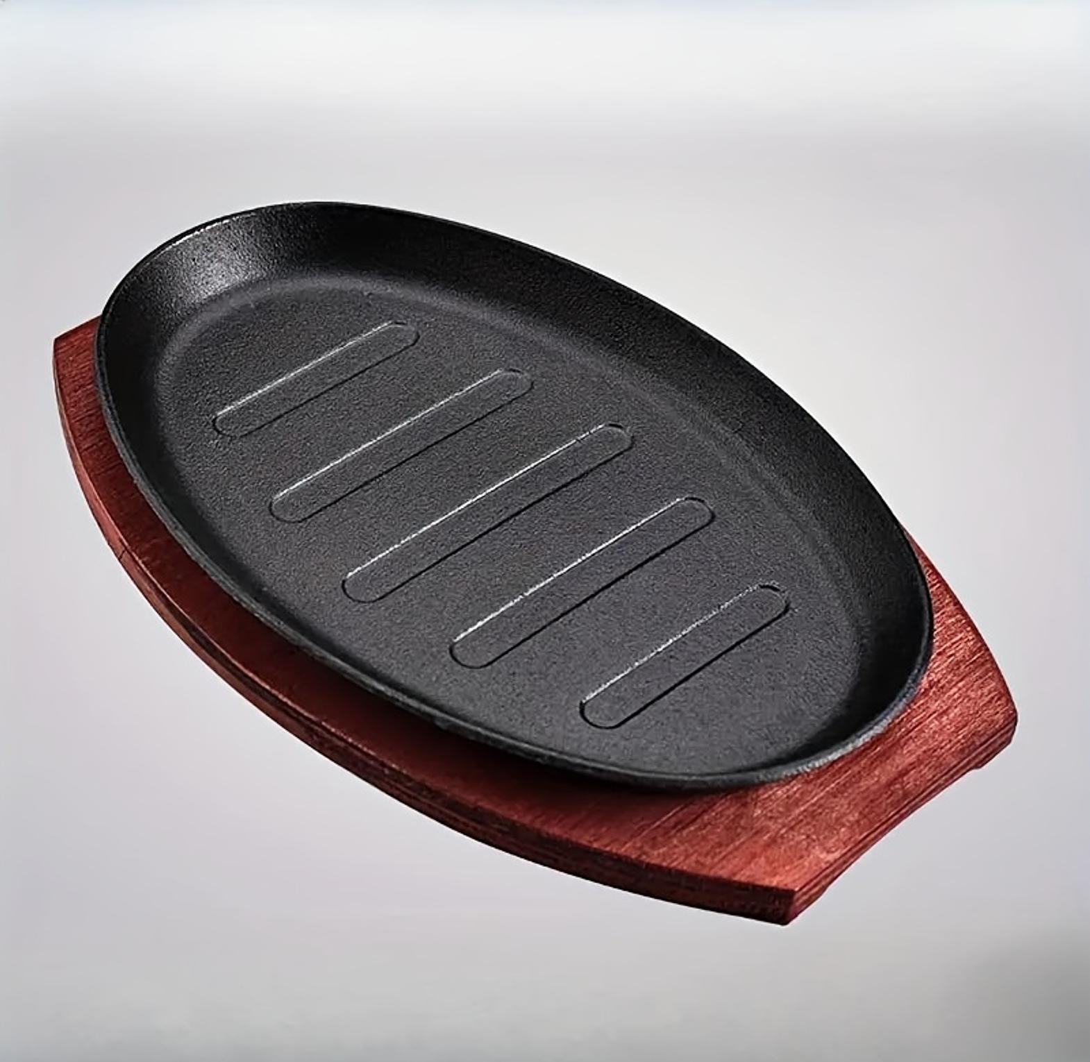 Sizzling plate size 25*16cm used to serve food whether meat or other foods sizzling hot. bbq grilled plate round household baking raosting pan wooden tray kitchen pan korean cast iron barbecue pot fried striped steak