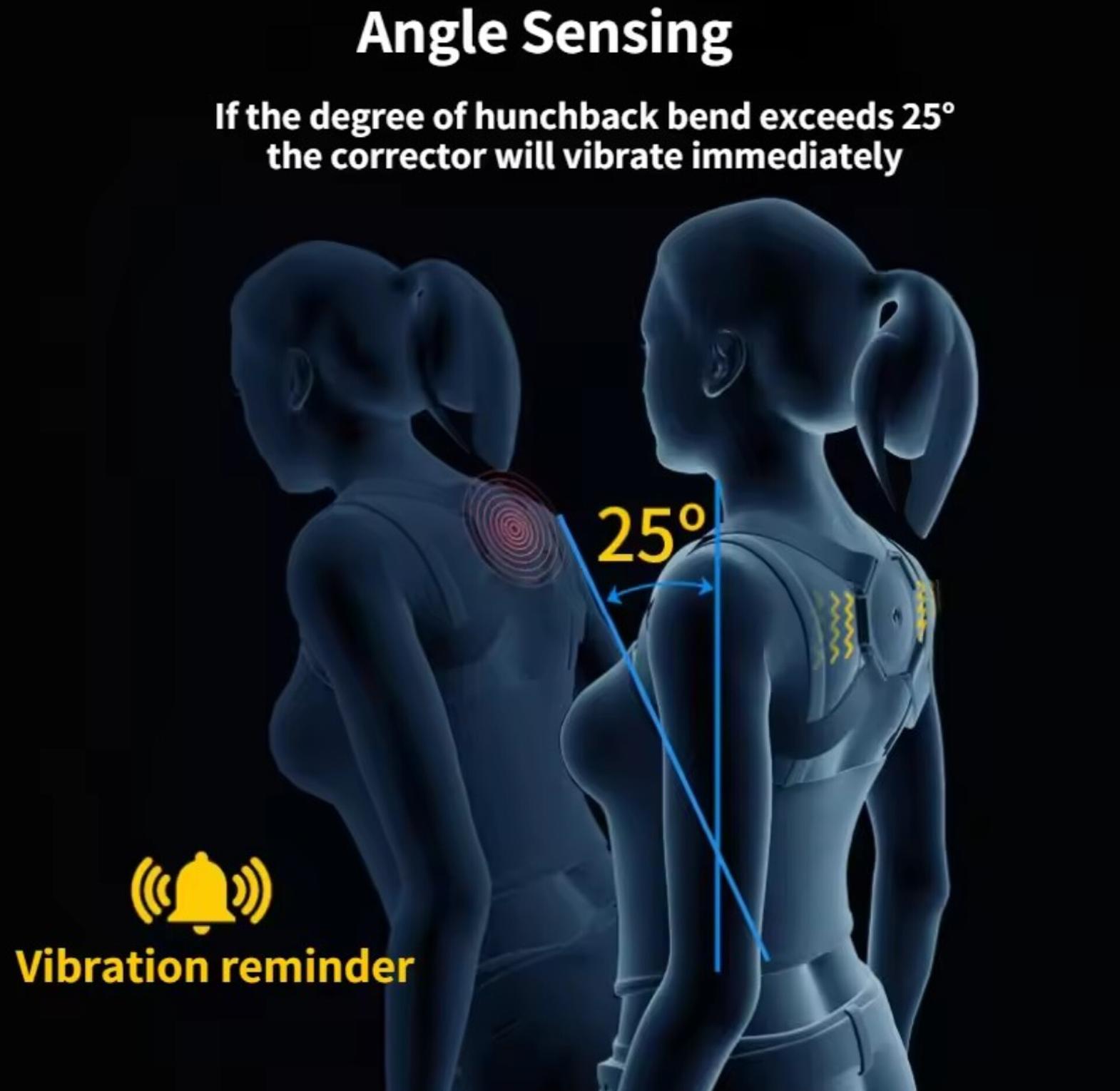 Smart back posture corrector with vibration sensor. easily get perfect confident posture - start standing, sitting much straighter align your shoulders, spine and upper back improve posture & reduce slouching immediately with easily adjustable dual strap design. lightweight high elasticity nylon corrector can be worn comfortably under or over clothing. eliminates neck and back discomfort from sitting with rounded shoulders in front of the computer. wear all day to retrain your posture- it's nearly invisible when wear under a shirt. electric posture corrector back brace spine stretcher lumbar vibration massager spine deck backbelt support usb rechargeable.