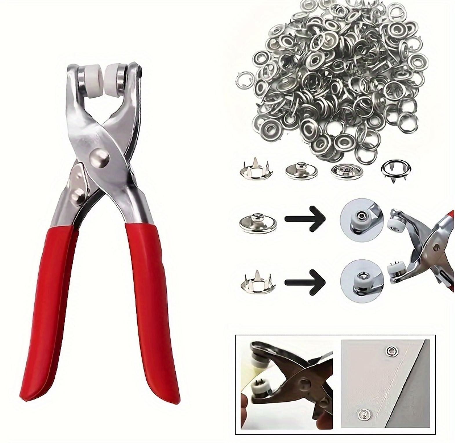 Snap button or buckle installation tool or pliers set set has 50 button sets + 1 pliers this is used to install add snap buttons on your clothes or bags. metallic snup button pliers set, snap button fastener, sewing accessories.