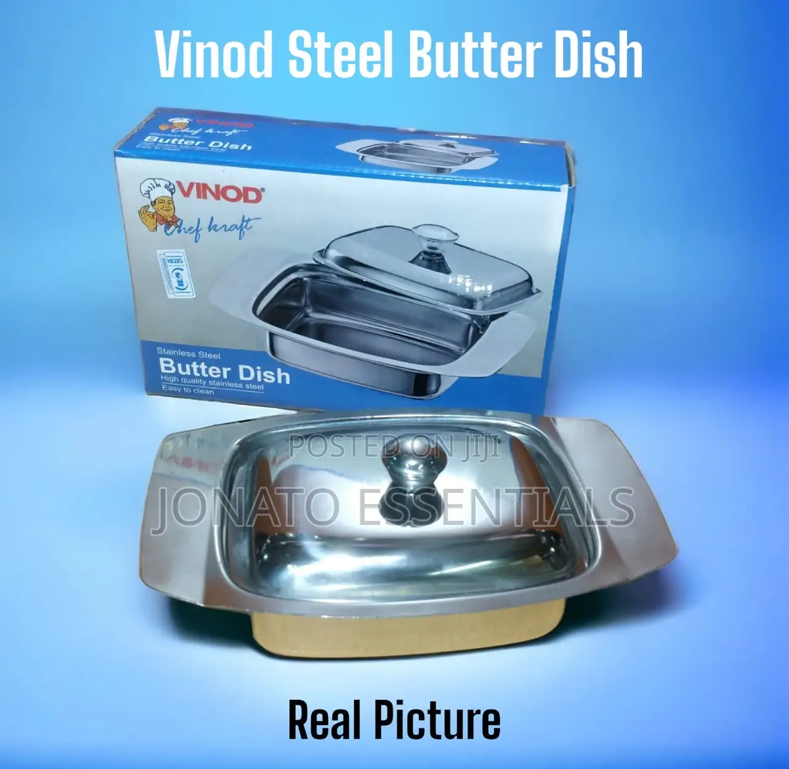 Vinod stainless steel butter dish keeps butter fresher for longer and at the right consistency for spreading. unbreakable and can be kept in the fridge or freezer. multi-purpose usage: can be used for cake, dessert, bread and small fruits storage as well, suitable for hotel, restaurant, buffet, bar, etc. stainless steel butter dish cake dessert bread serving tray buffet food container furit salad steak storage box.